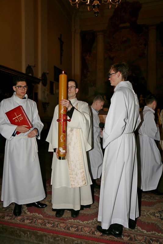 Po całodziennym czuwaniu przy Grobie Pańskim, w Wielką Sobotę, o godz. 19.00 rozpoczęliśmy obchody Świąt Wielkanocnych. Niezwykle bogata w symbolikę, liturgia Wigilii Paschalnej obwieściła nam radosne Alleluja! – Pan Zmartwychwstał!!!