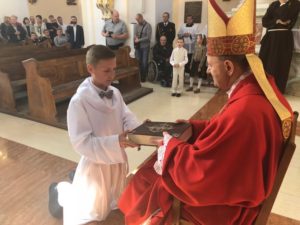 „Jesteście posłani aby głosić Chrystusa zmartwychwstałego” – Między innymi takie słowa skierował ks. bp Tadeusz Pikus do nowo ustanowionych lektorów w Diecezji Drohiczyńskiej. Jest nam niezmiernie miło poinformować, że w grupie 87 osobowej, znalazło się sześciu naszych parafian, którzy pod kierunkiem ks. Wojciecha Wysockiego – naszego wikariusza, od kilku już lat pełnią służbę ministrancką przy ołtarzu.