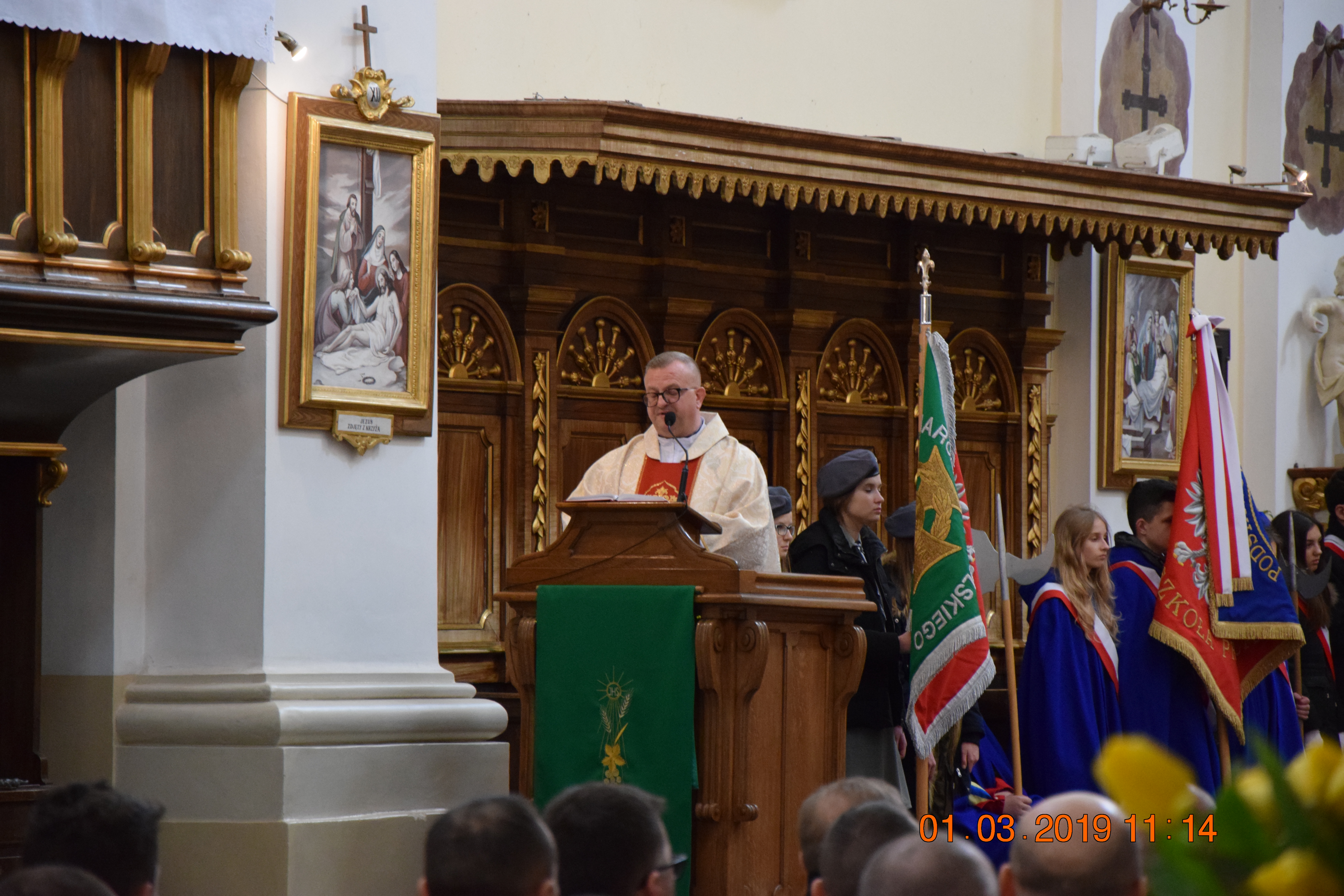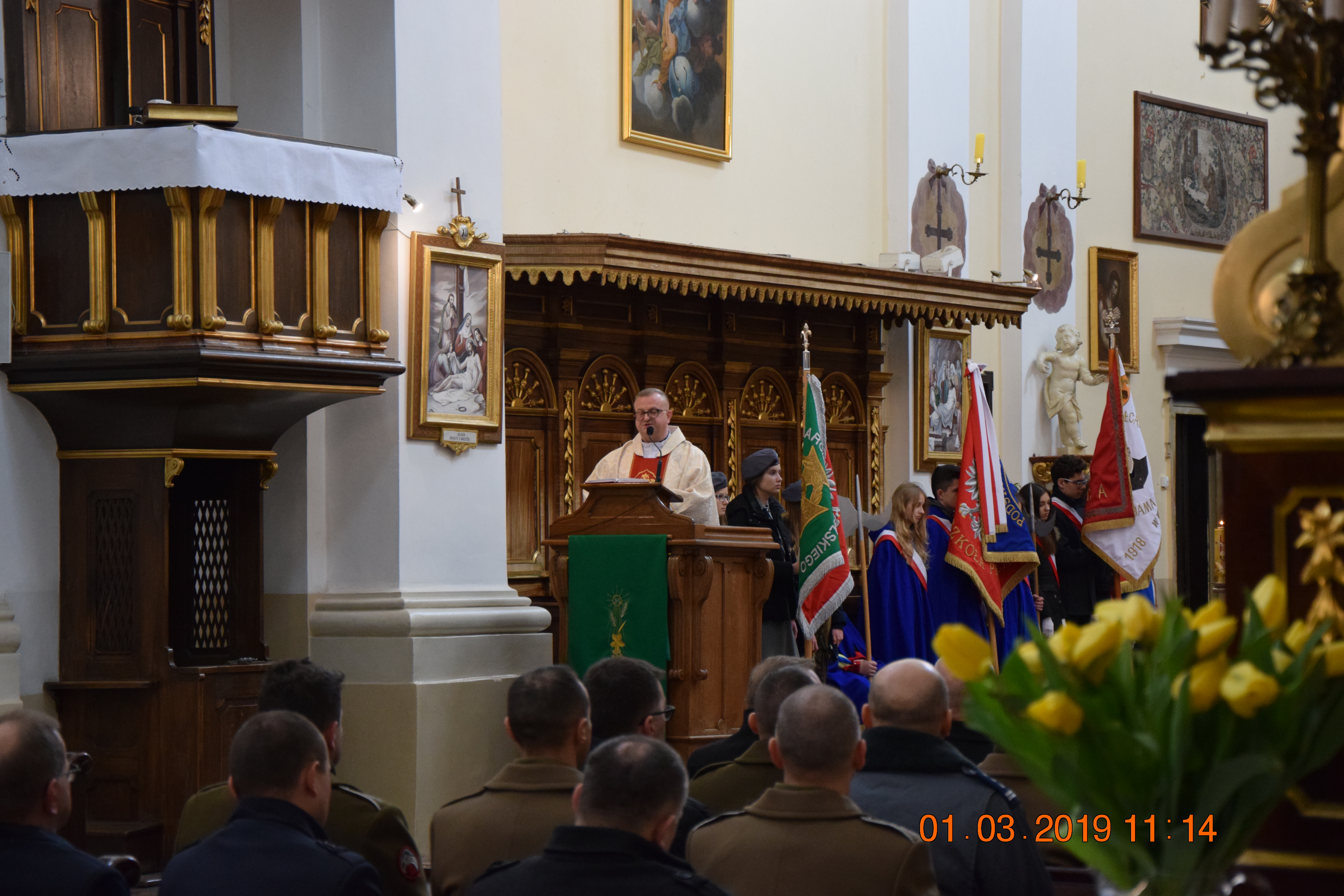 W homilii ks. dziekan przedstawił zarys historyczny polskiego ruchu partyzanckiego, który stawiał opór sowietyzacji Polski i podporządkowywaniu jej ZSRR.W dalszej części kaznodzieja przytoczył kilka ciekawych cytatów, zaczerpniętych z pamiętników i dokumentów historycznych, opisujących działania polskiego powojennego podziemia niepodległościowego.
