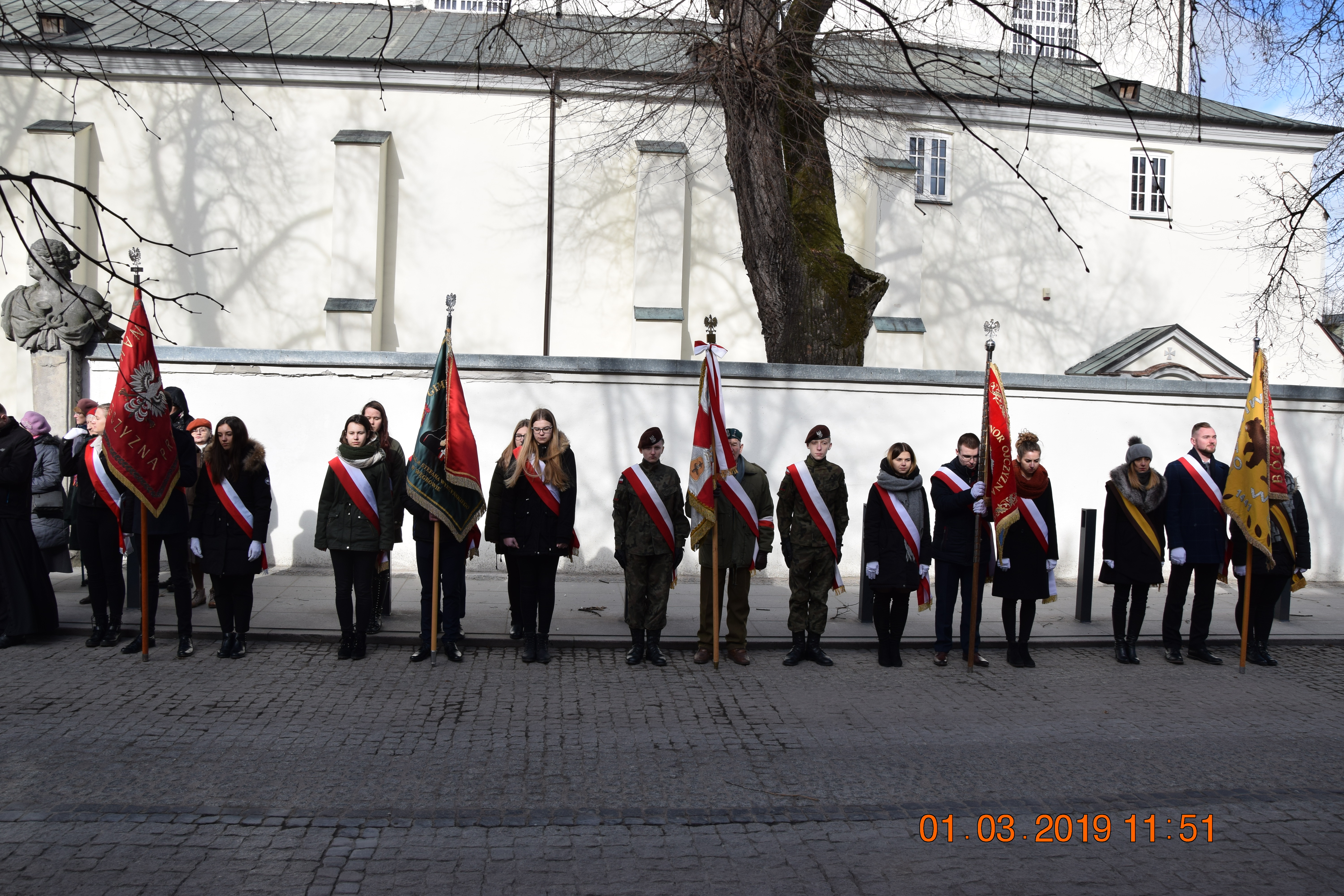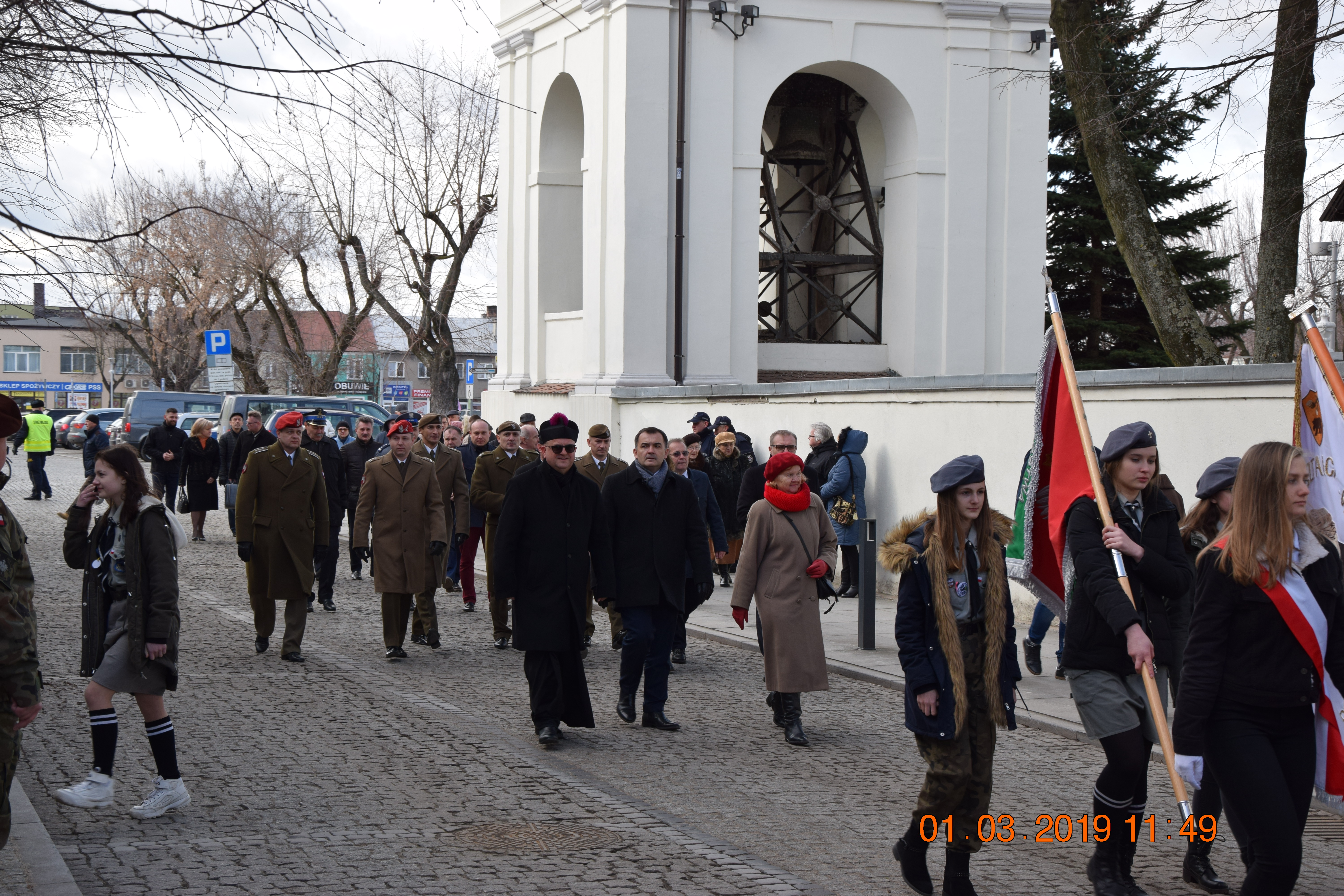 Po skończonej Mszy św. nastąpił uroczysty przemarsz wszystkich zgromadzonych w Bazylice węgrowskiej na ul. Kościelną, ażeby wziąć udział w dalszej części miejskich obchodów Dnia Pamięci Żołnierzy Wyklętych. Po wspólnym odśpiewaniu hymnu państwowego, przedstawiciele władz samorządowych, żołnierze, a także urzędnicy wielu instytucji publicznych złożyli kwiaty pod tablicą poświęconą rotmistrzowi Witoldowi Pileckiemu, a także wysłuchali okolicznościowego apelu pamięci, przygotowanego przez Jednostkę Strzelecką „Niezłomni Węgrów”.