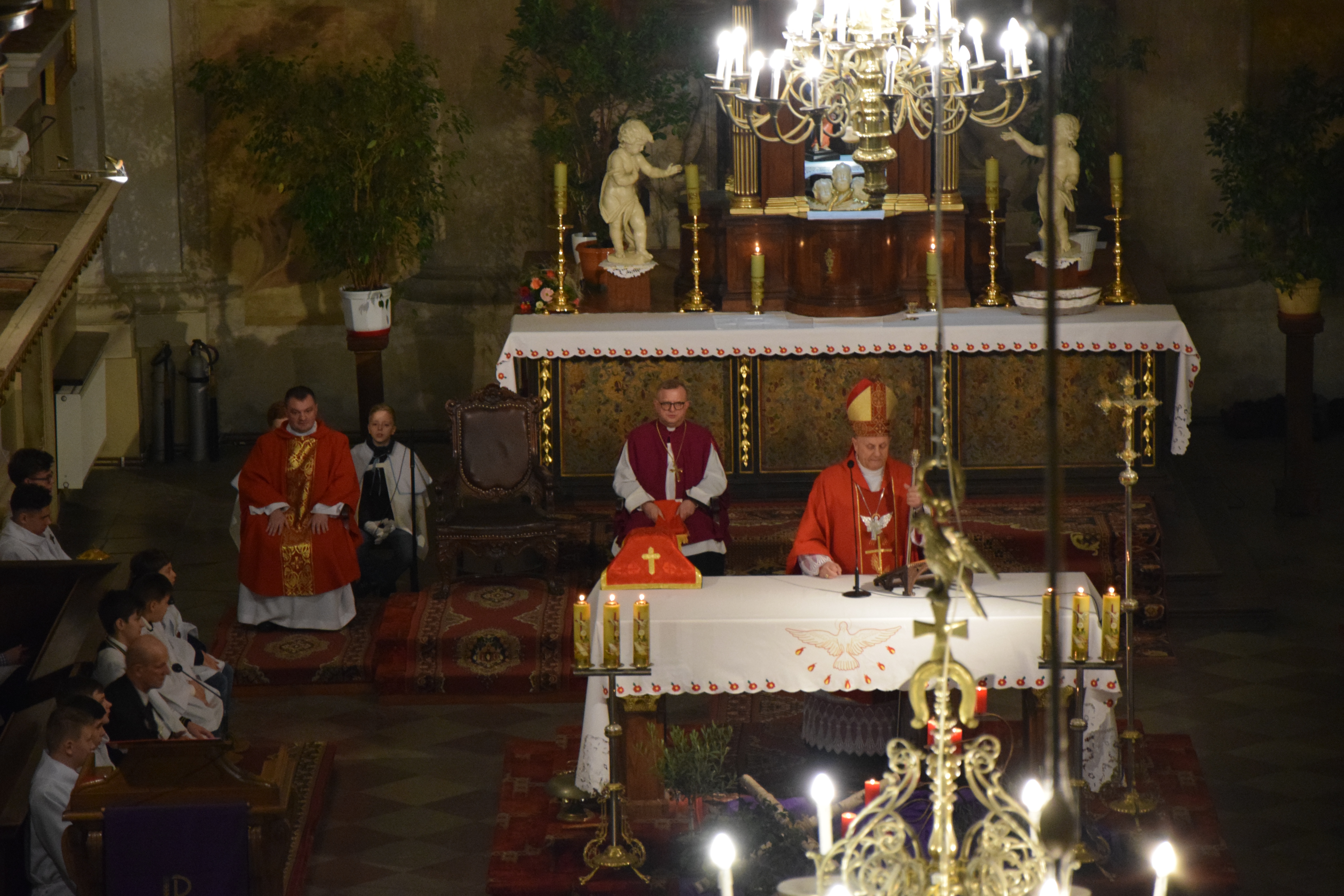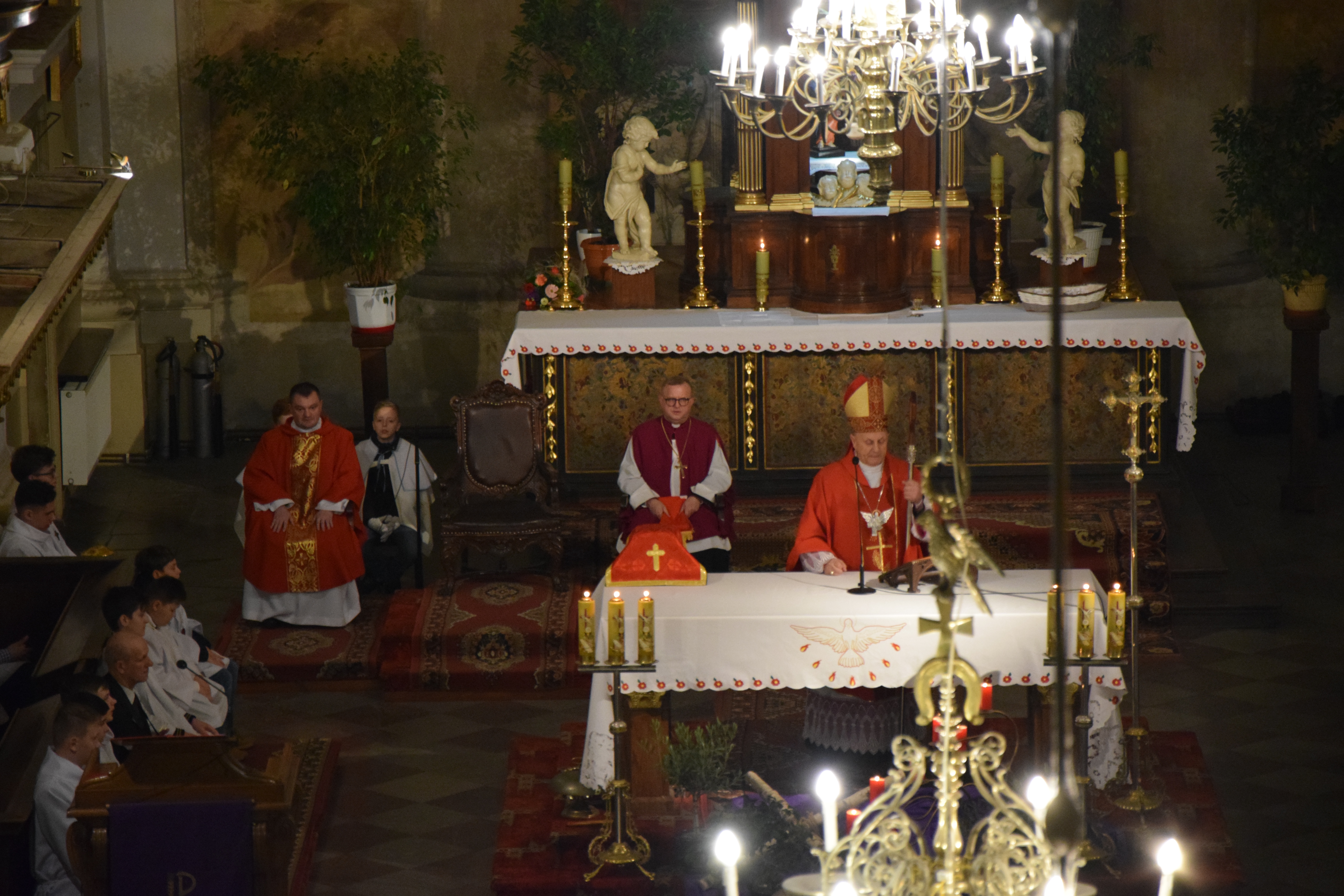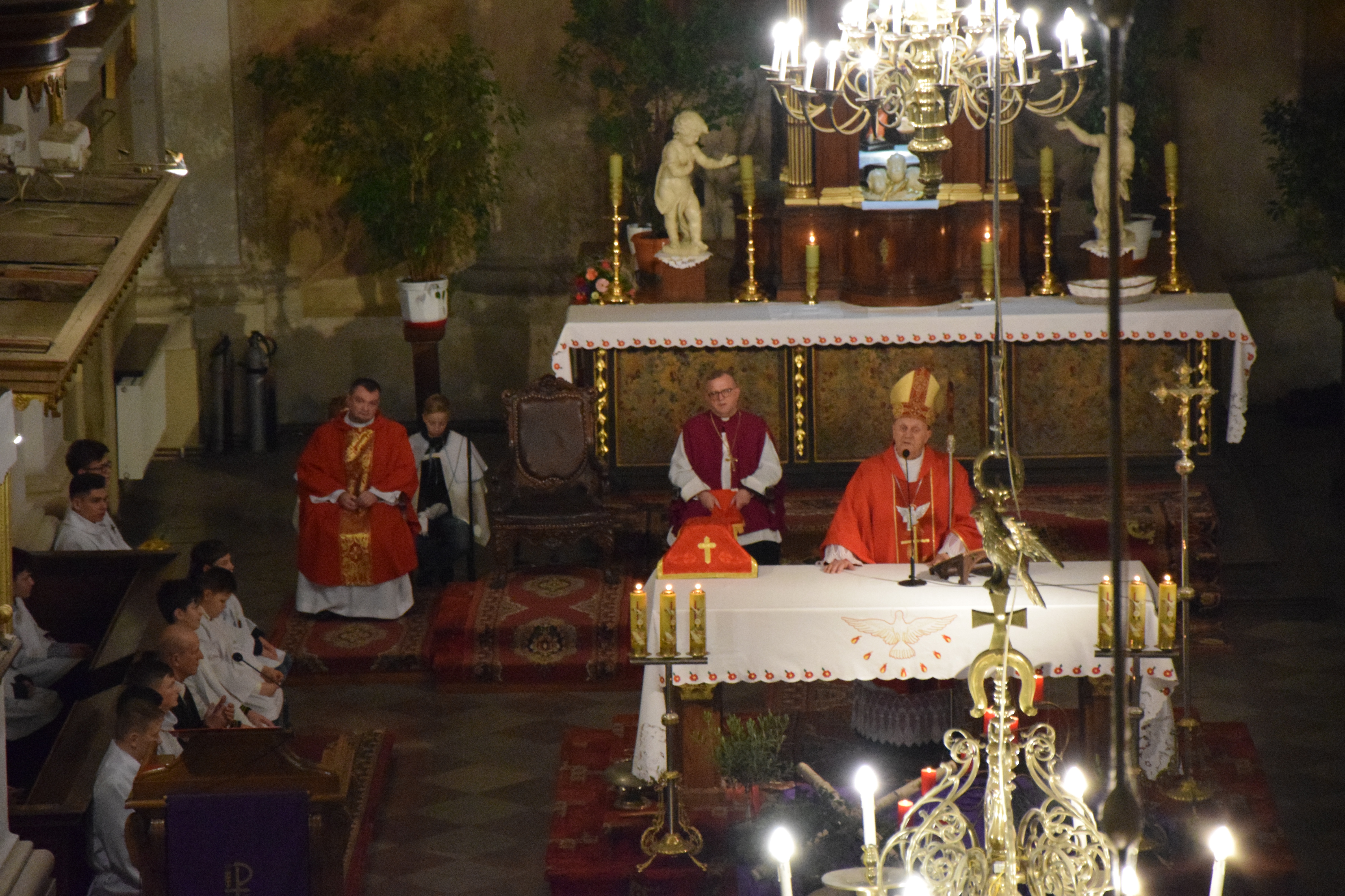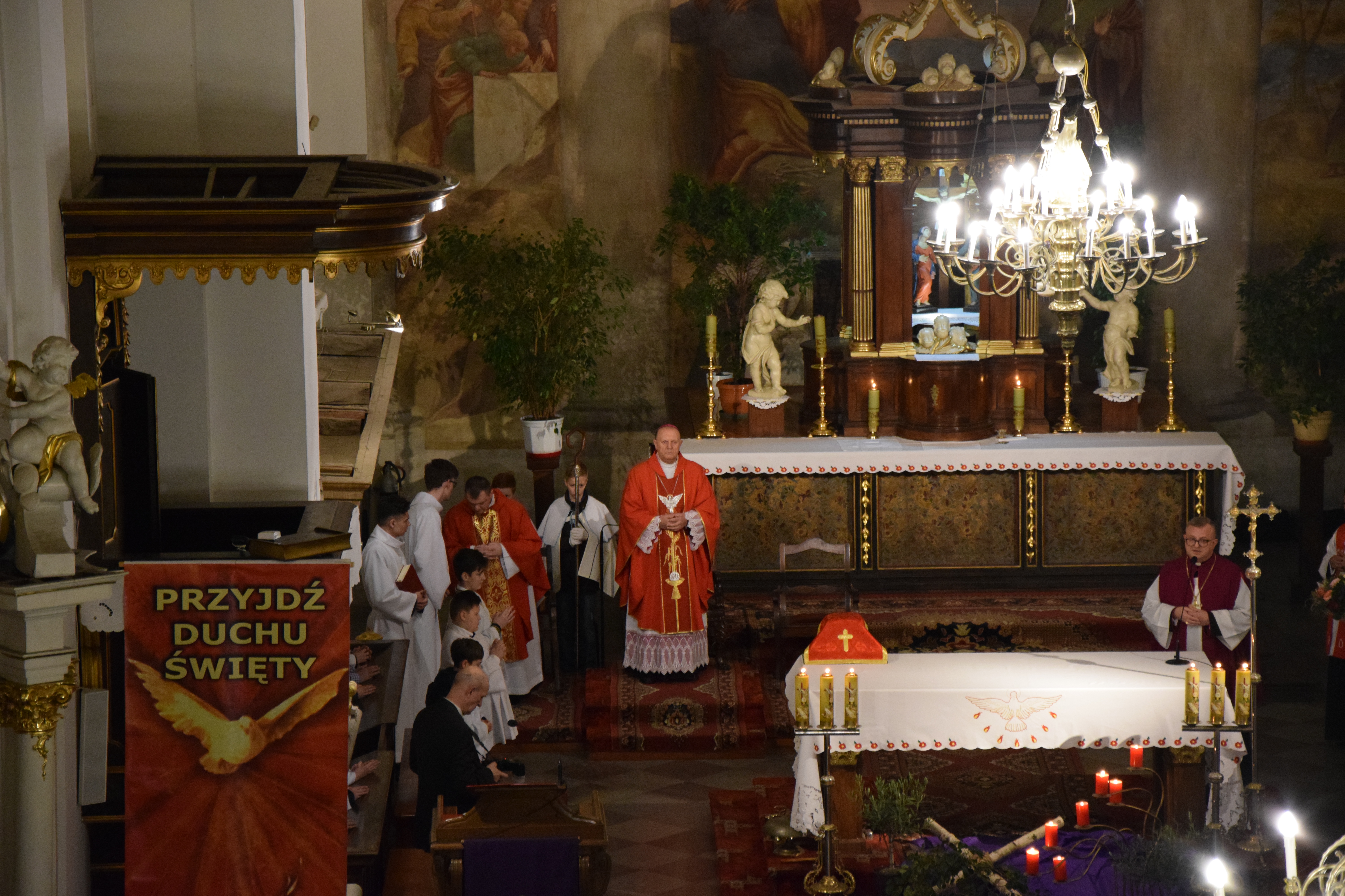 Ks. prał. Leszek Gardziński, Proboszcz i Dziekan Węgrowski, witając Pasterza Diecezji, księży z parafii ościennych oraz wszystkich przybyłych gości wskazał, że w tym uroczystym dniu Bazylika Węgrowska staje się Wieczernikiem, gdzie na Apostołów zstąpił Duch Święty.