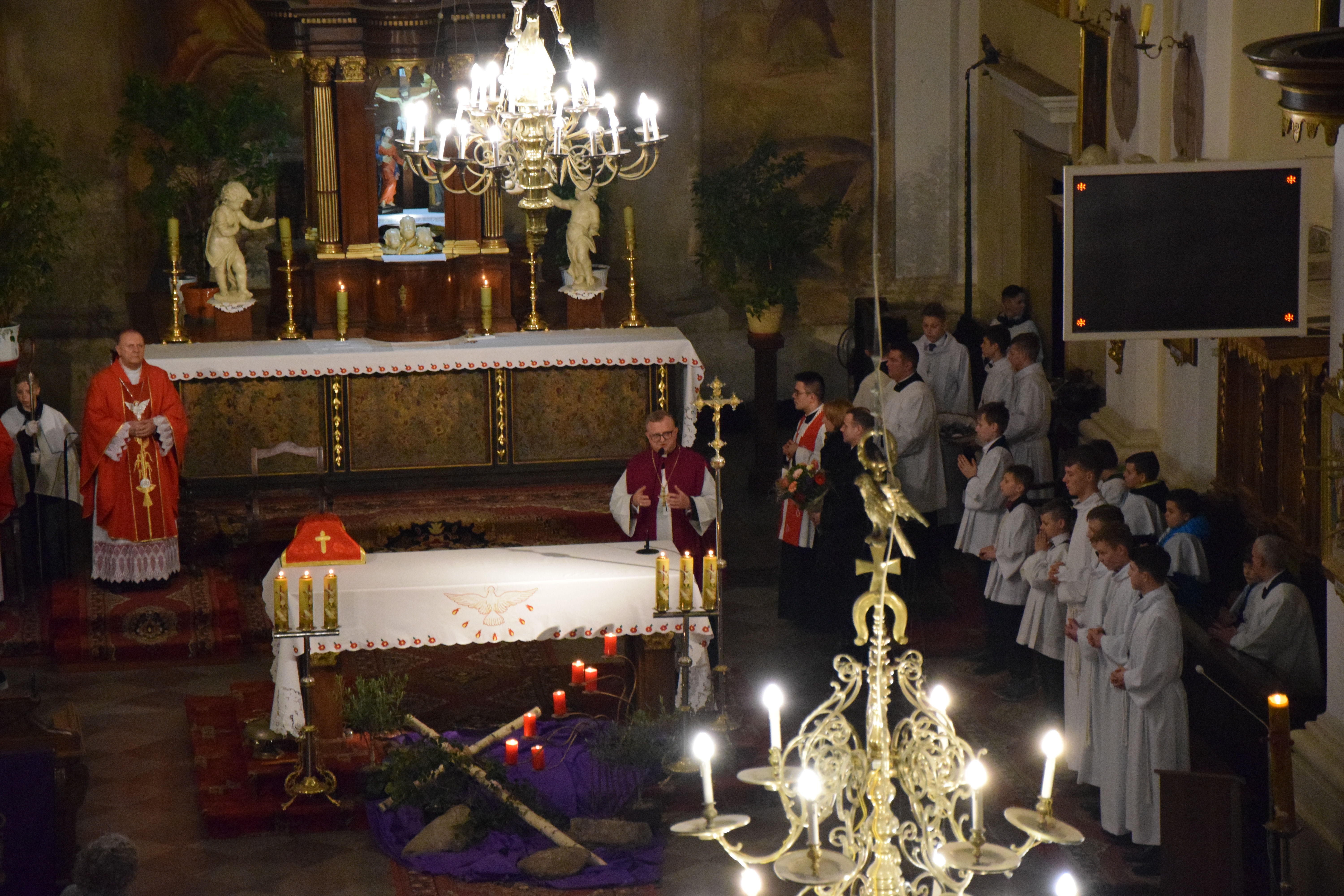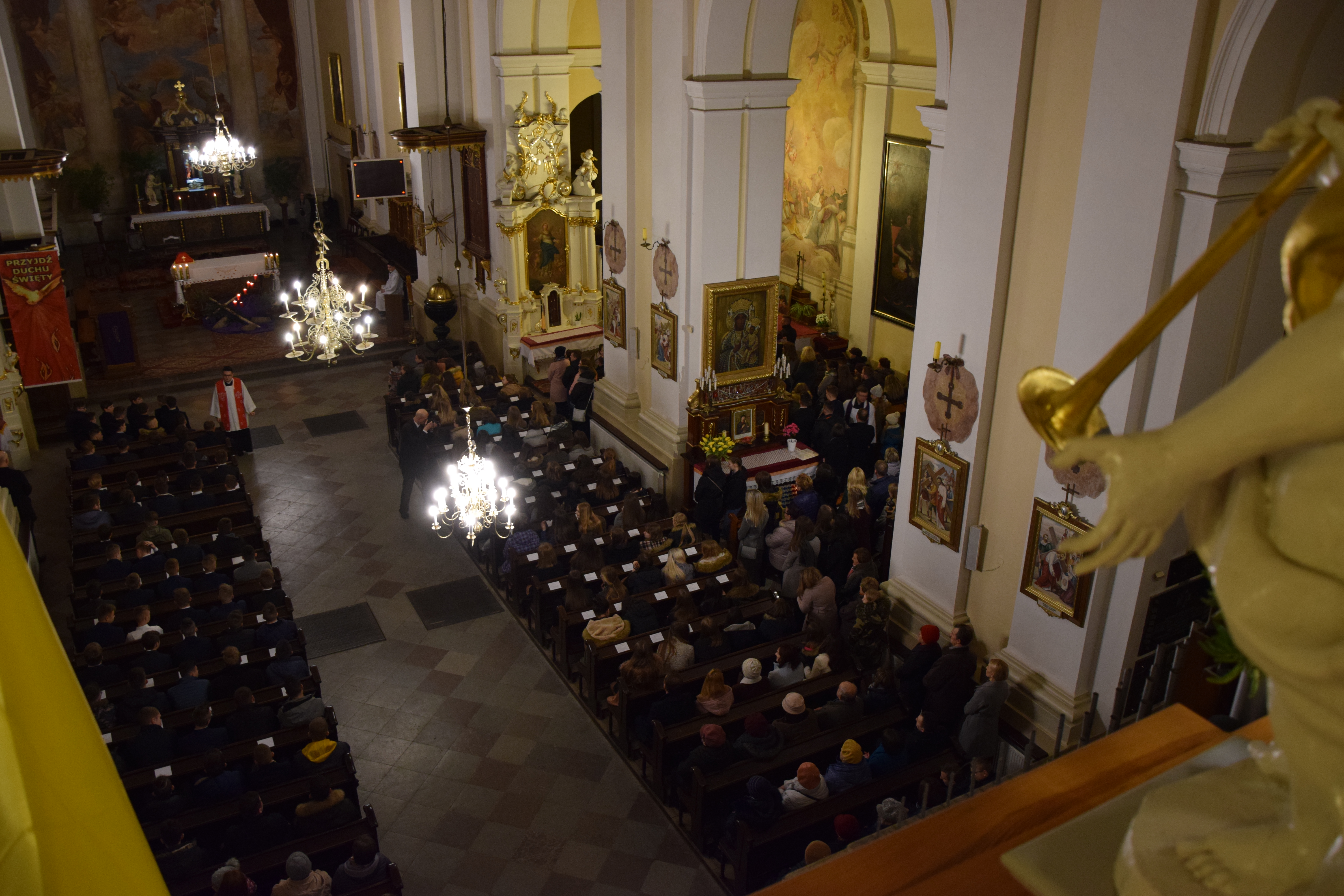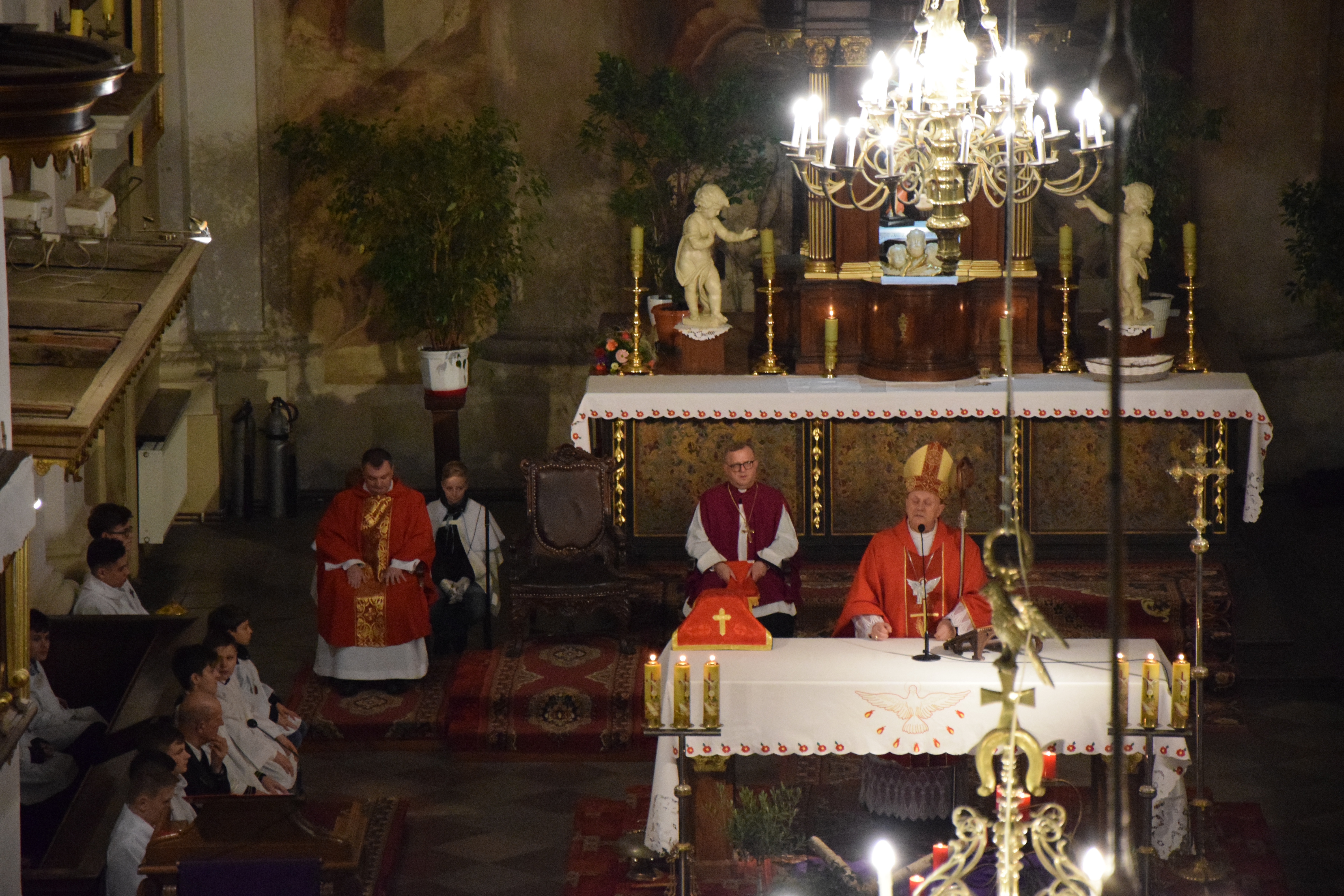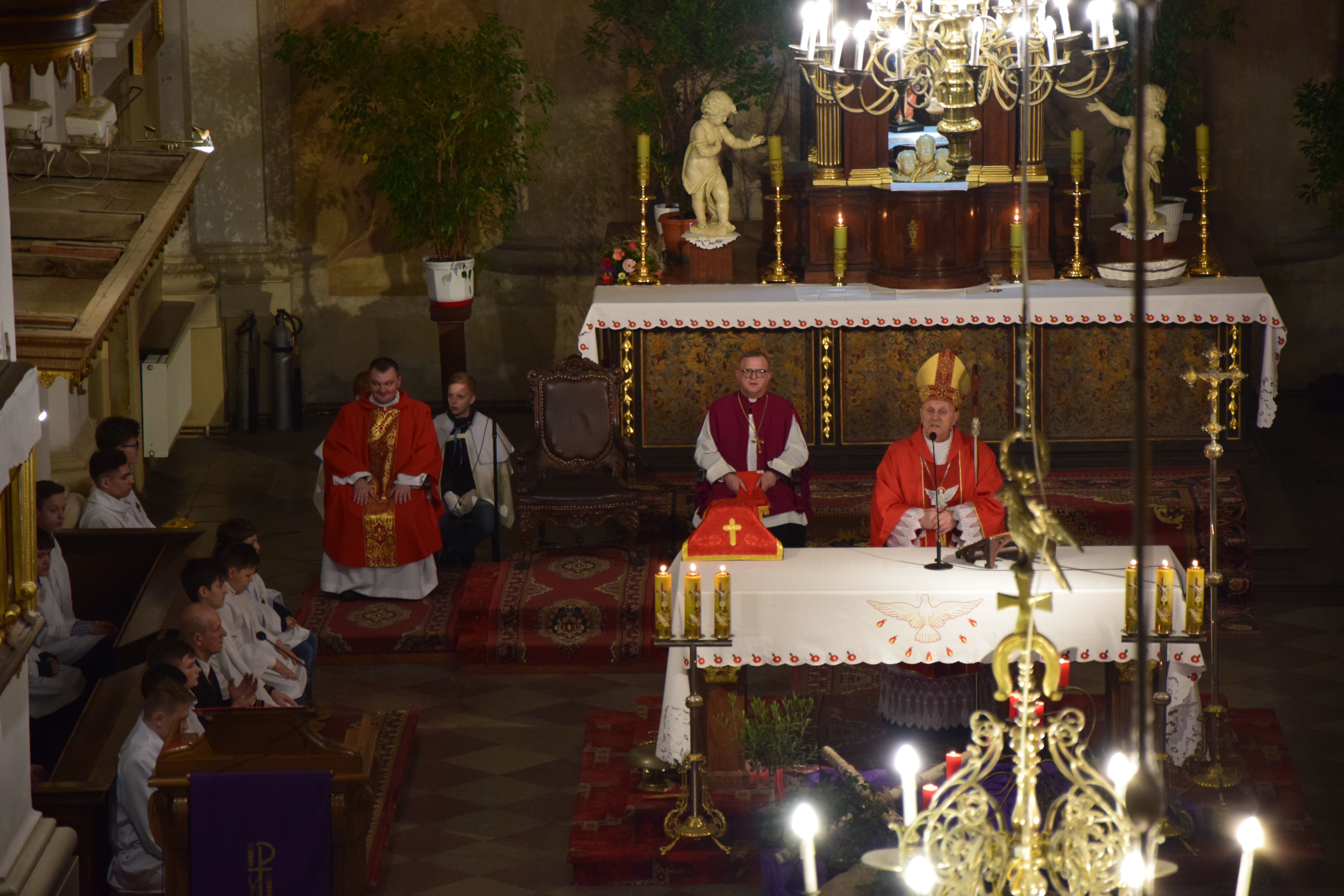 Ks. prał. Leszek Gardziński, Proboszcz i Dziekan Węgrowski, witając Pasterza Diecezji, księży z parafii ościennych oraz wszystkich przybyłych gości wskazał, że w tym uroczystym dniu Bazylika Węgrowska staje się Wieczernikiem, gdzie na Apostołów zstąpił Duch Święty.