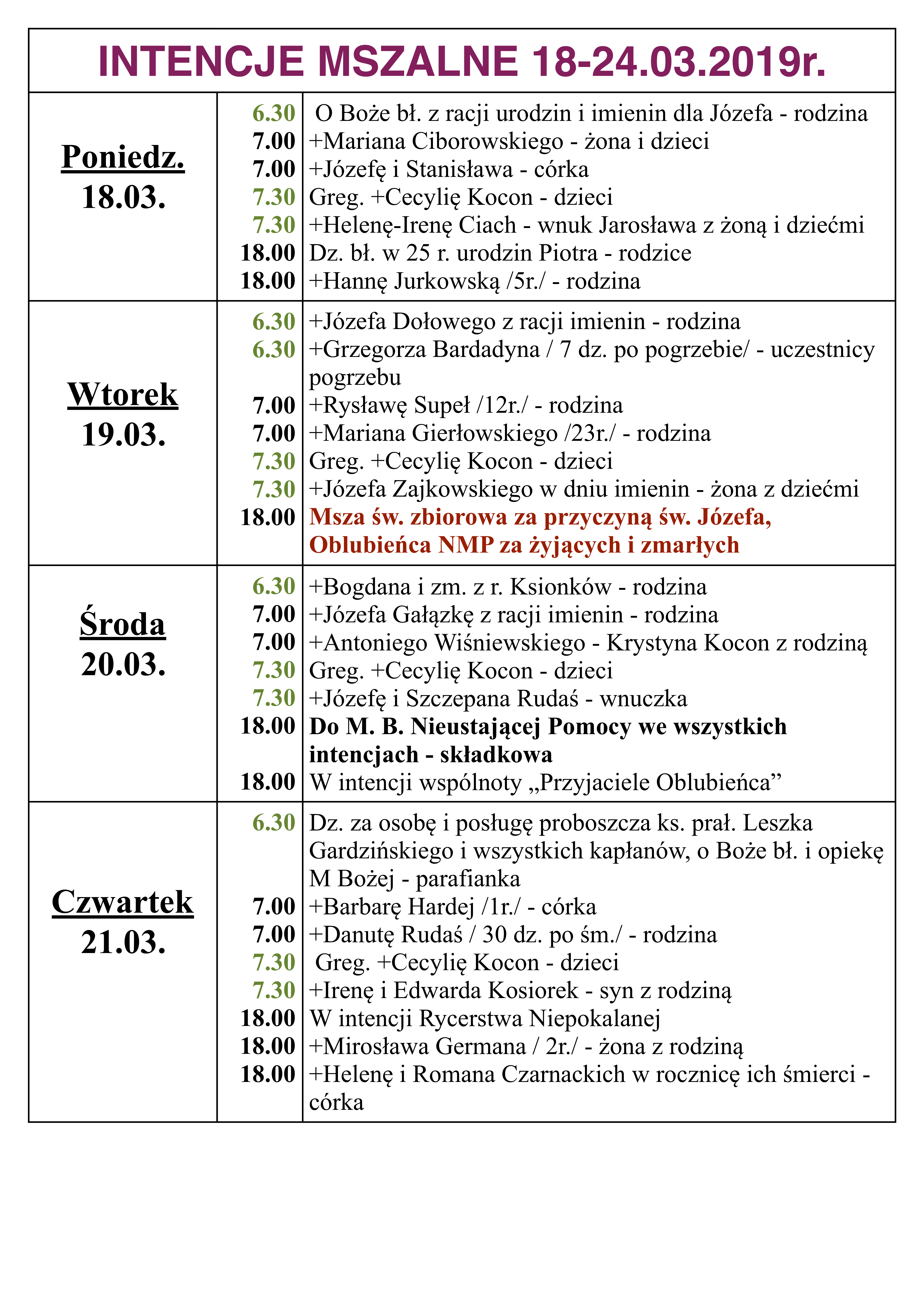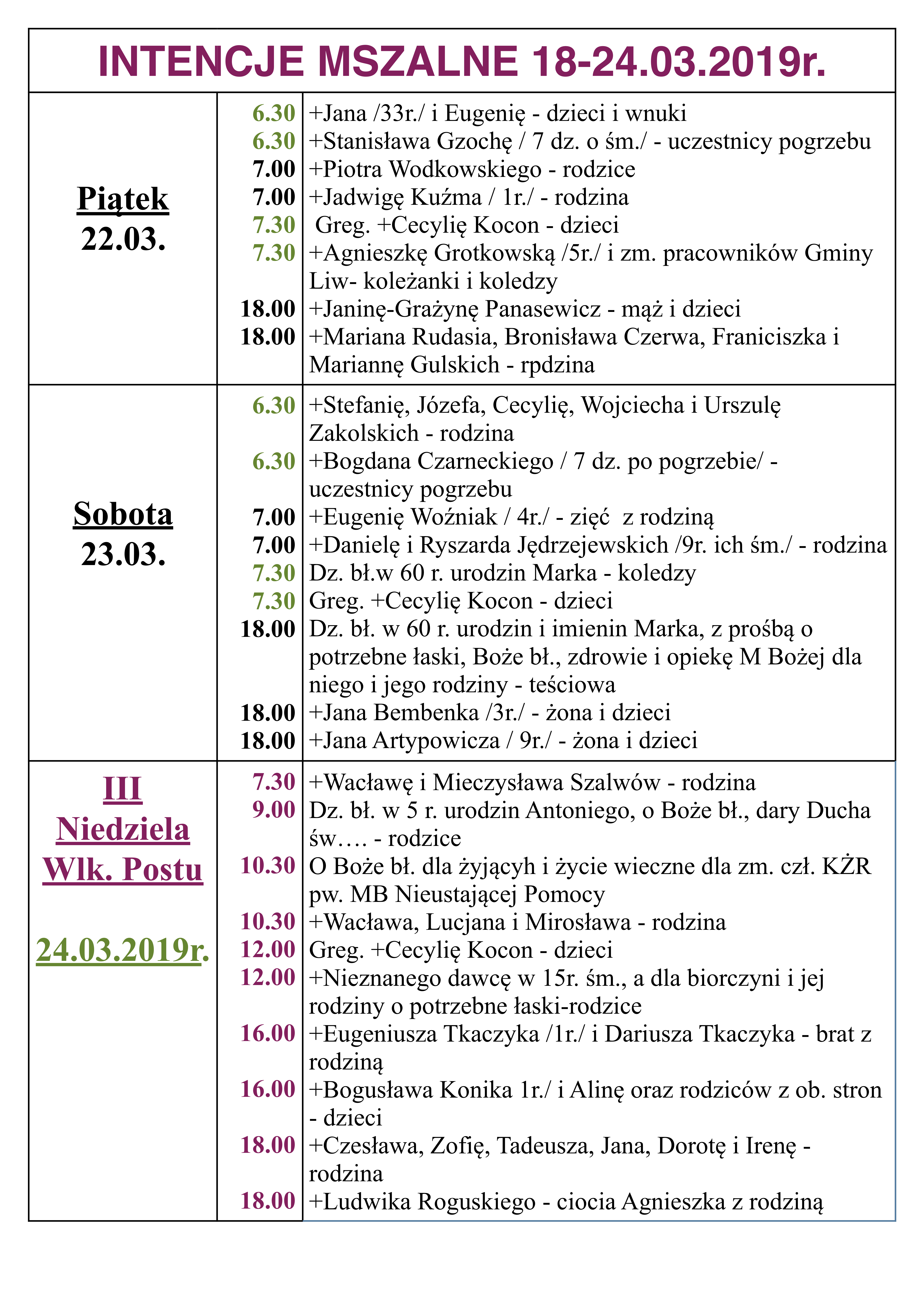 OGŁOSZENIA DUSZPASTERSKIE II Niedziela Wielkiego Postu 17 marca 2019 r.