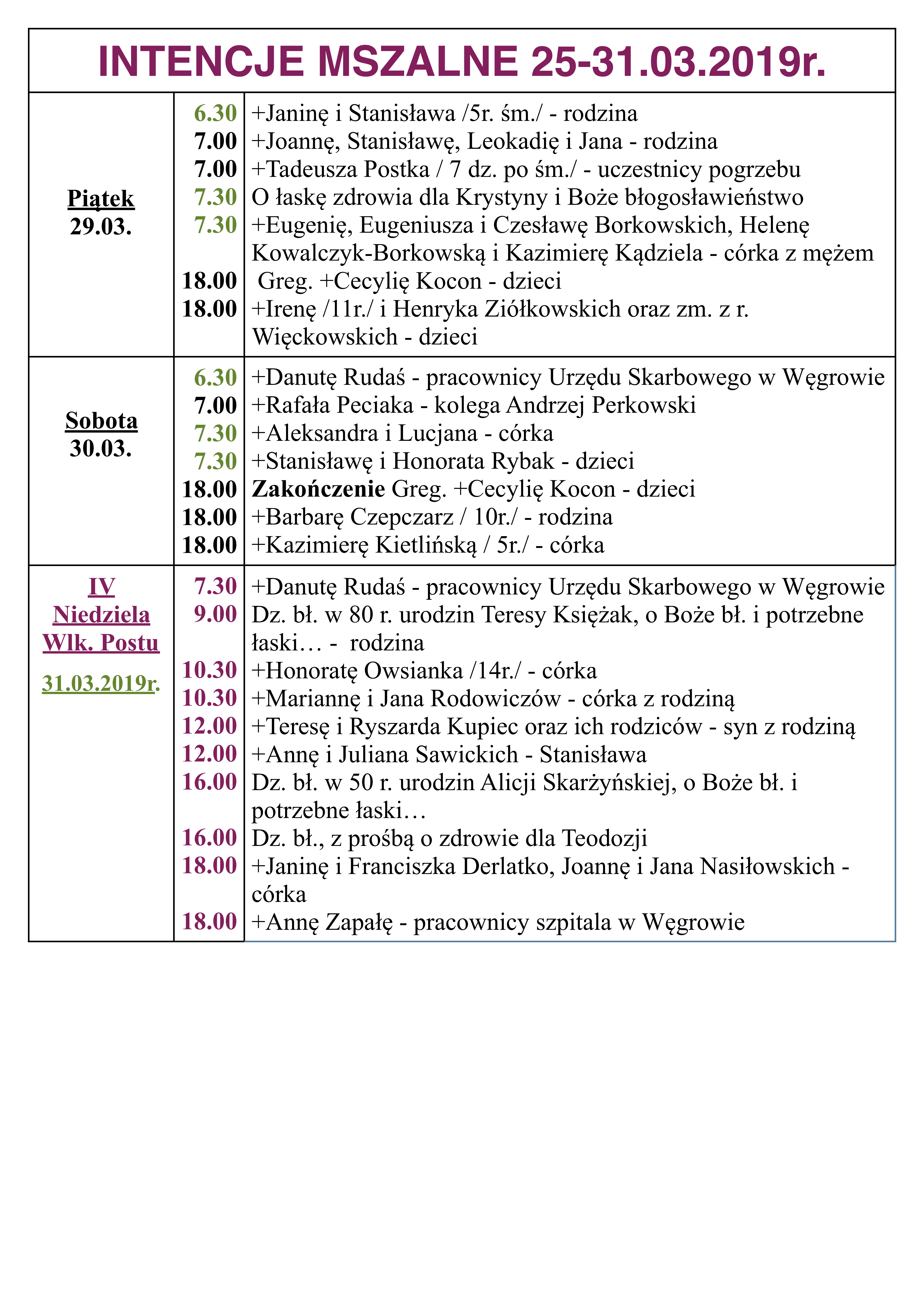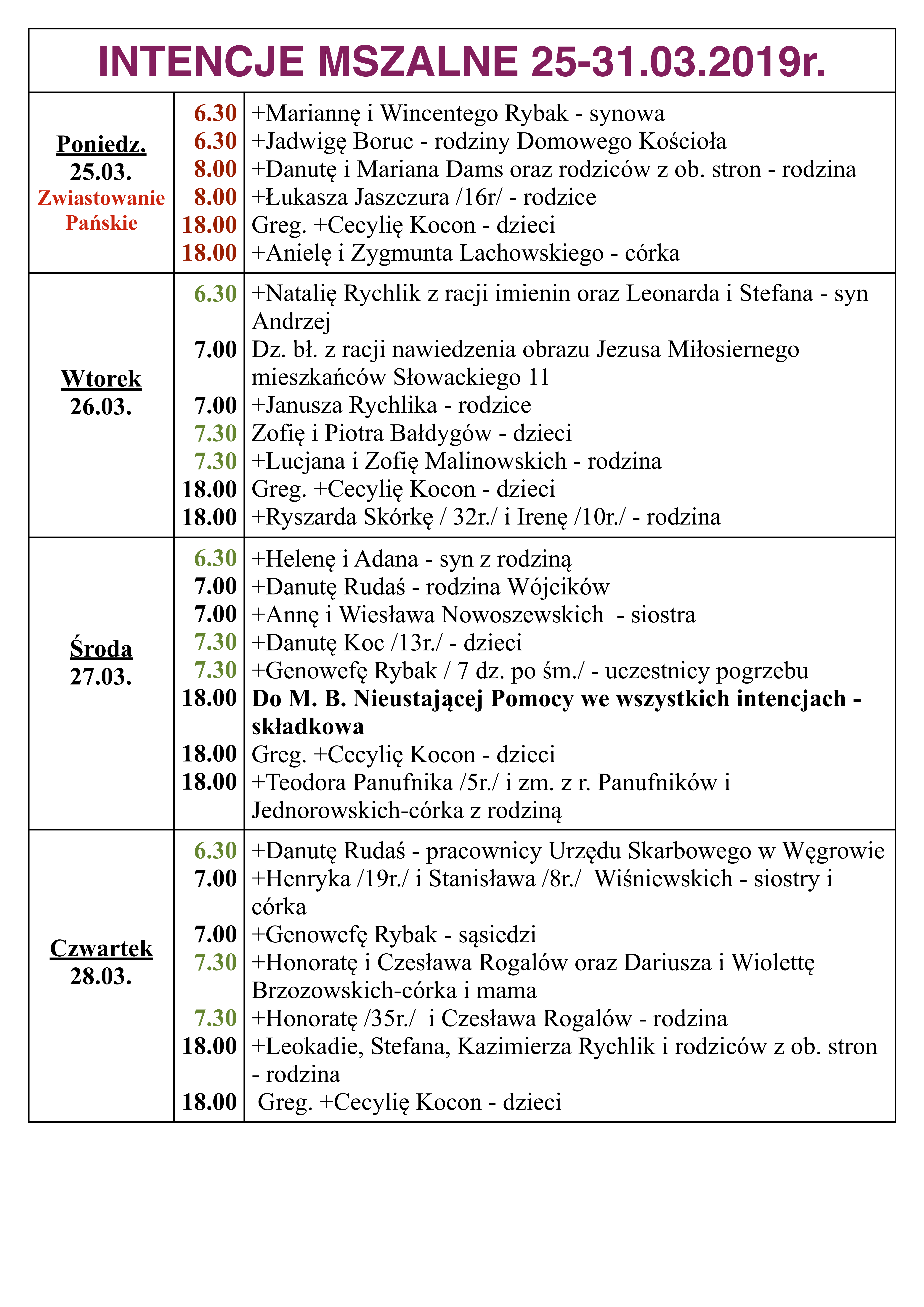 OGŁOSZENIA DUSZPASTERSKIE III Niedziela Wielkiego Postu – 24 marca 2019r.