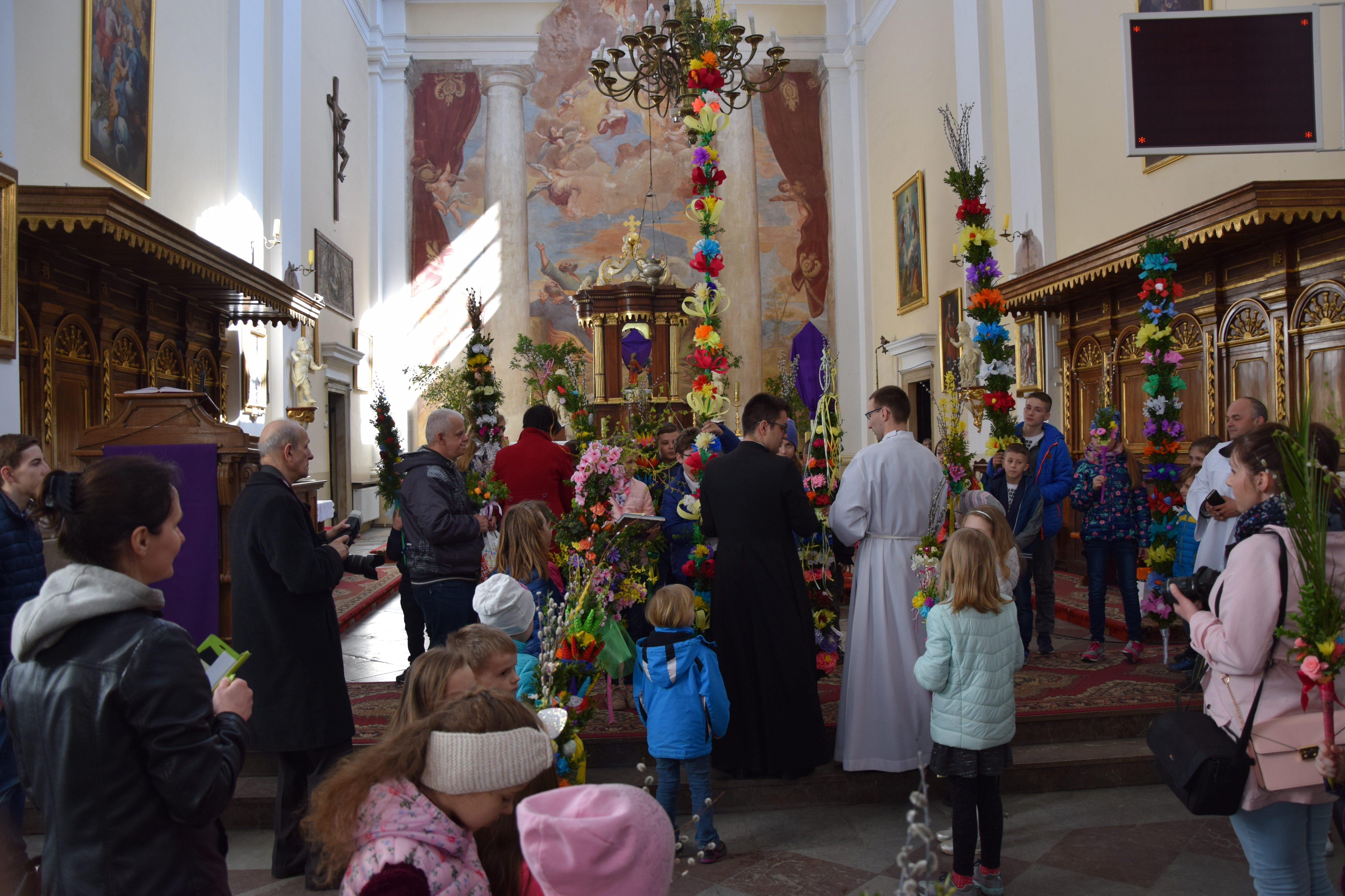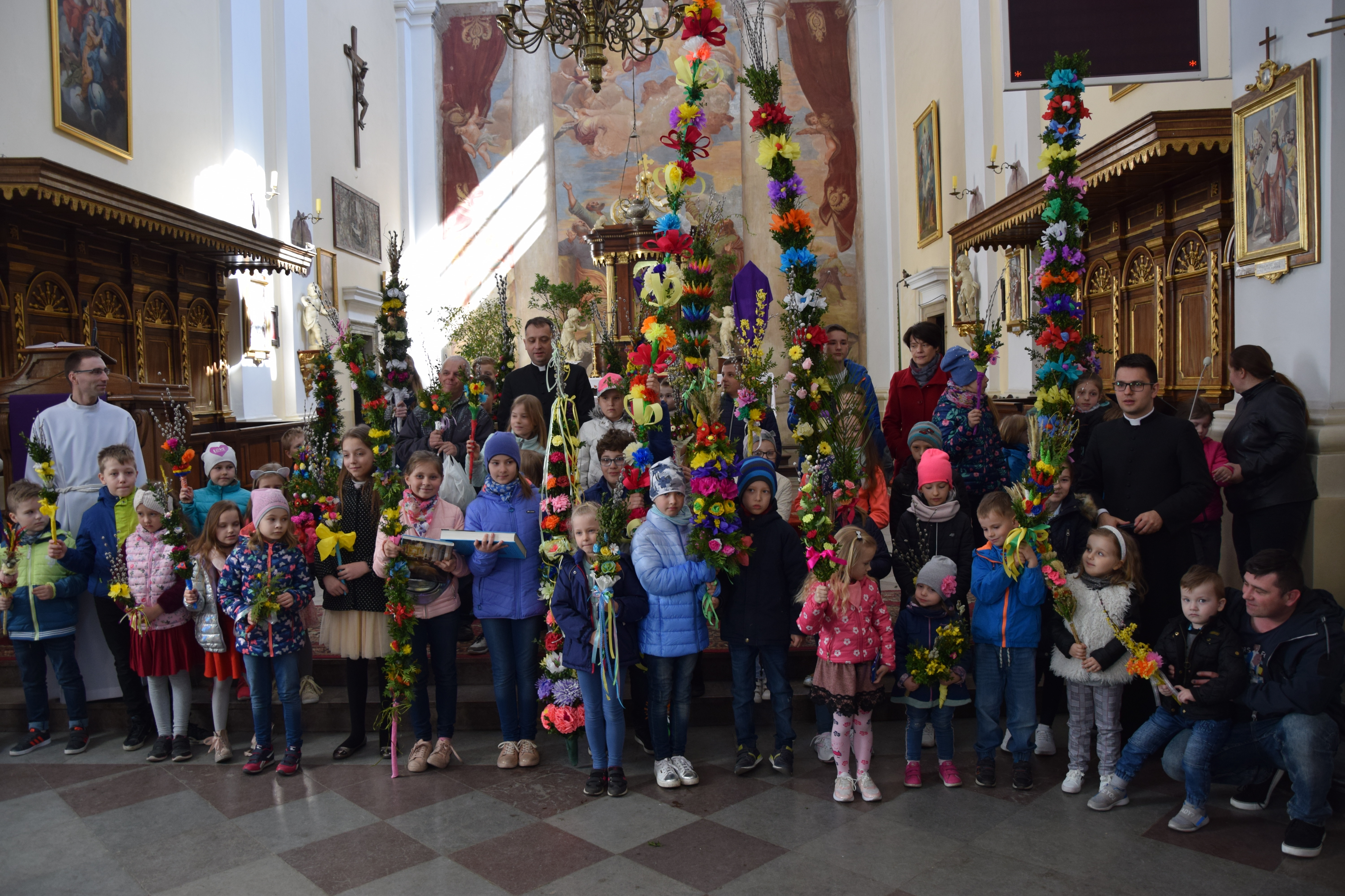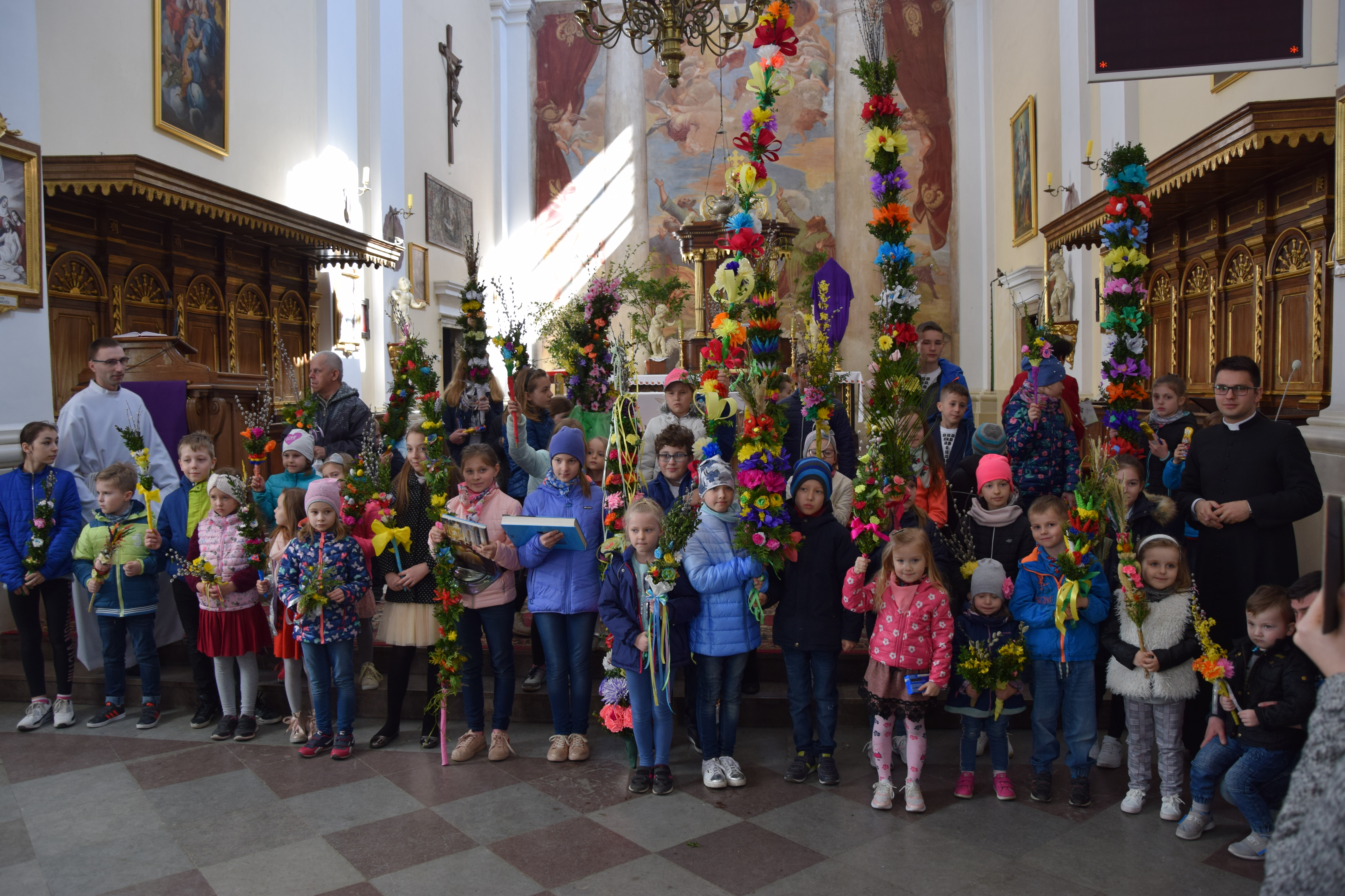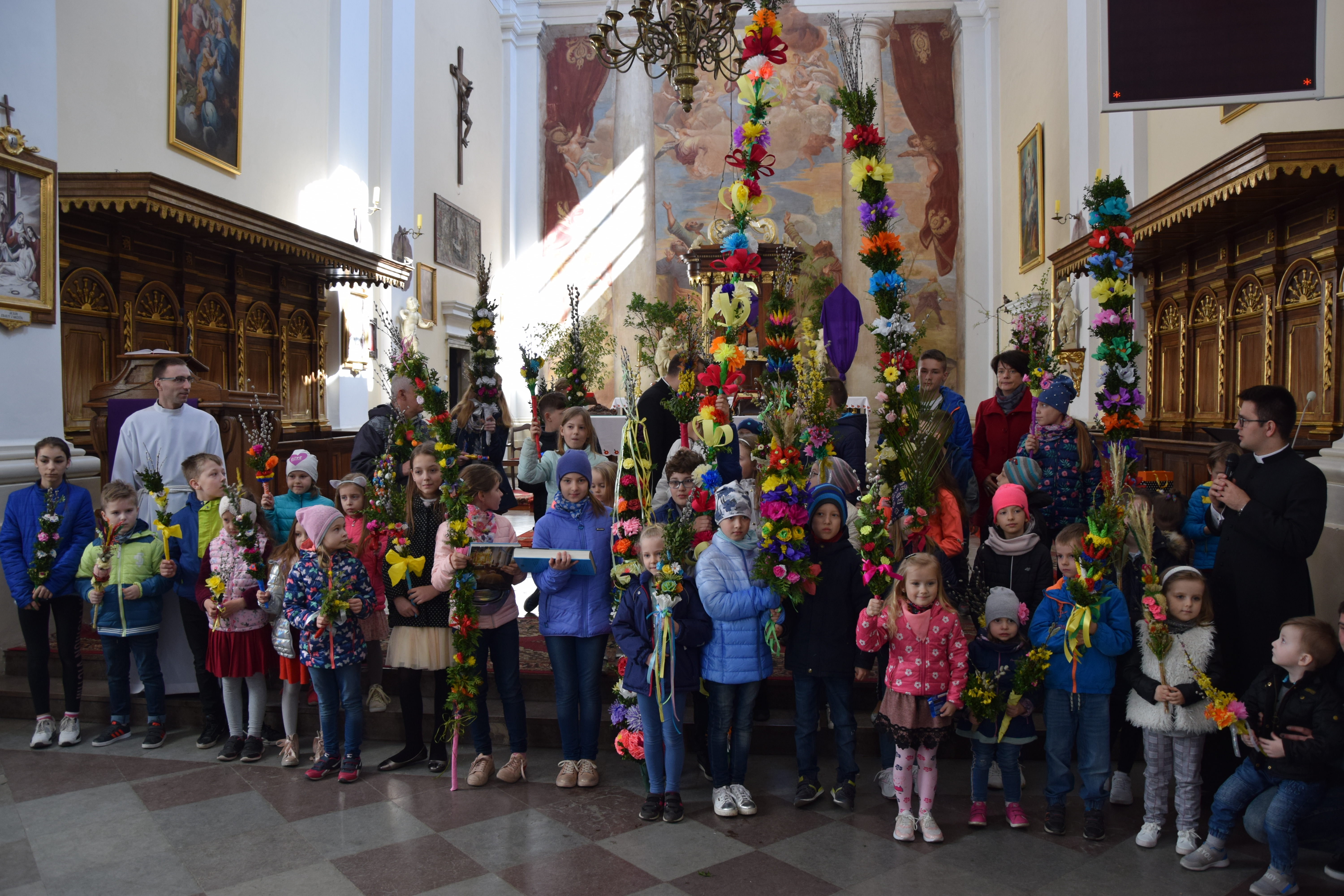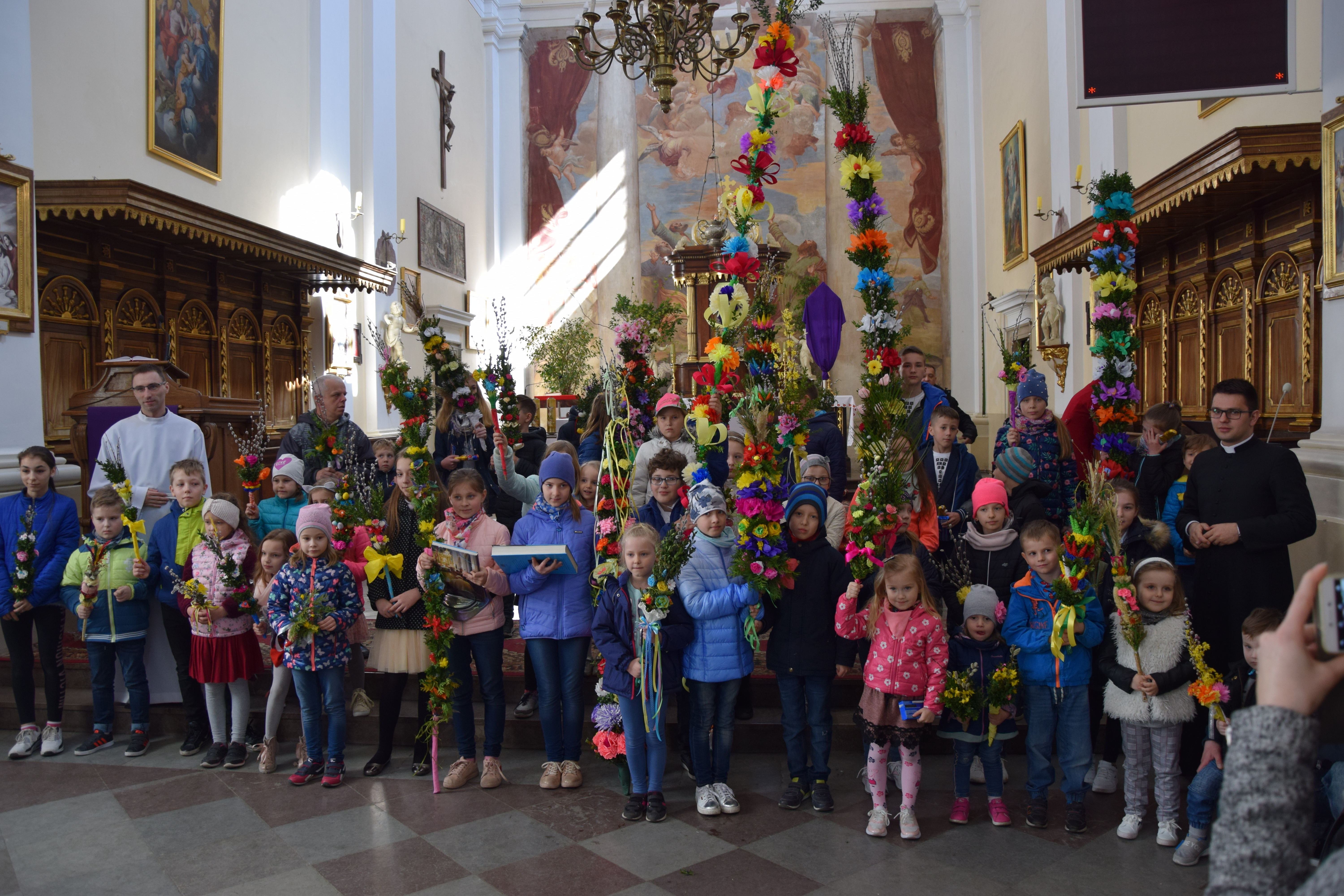 Wcześniej, po Mszy świętej głównej o godz. 12:00 miało miejsce rozstrzygnięcie parafialnego konkursu na najpiękniejszą palmę wielkanocną. Przyniesione do kościoła przez dzieci prace były niezwykle piękne, okazałe i bogate w różnego rodzaju własnoręcznie wykonane zdobienia. Jury konkursowe w składzie: ks. prał. Leszek Gardziński, proboszcz i dziekan węgrowski, ks.. Grzegorz Konopacki, wikariusz miejscowy, dk. Bartosz Ojdana i s. Katarzyna Chmielnicka, wyłoniło laureatów I, II i III miejsca. członkowie jury jednogłośnie uznali, że wszyscy uczestnicy konkursu zasłużyli na nagrody, dlatego też pozostałe dzieci również otrzymały drobne upominki związane ze świętami wielkanocnymi.