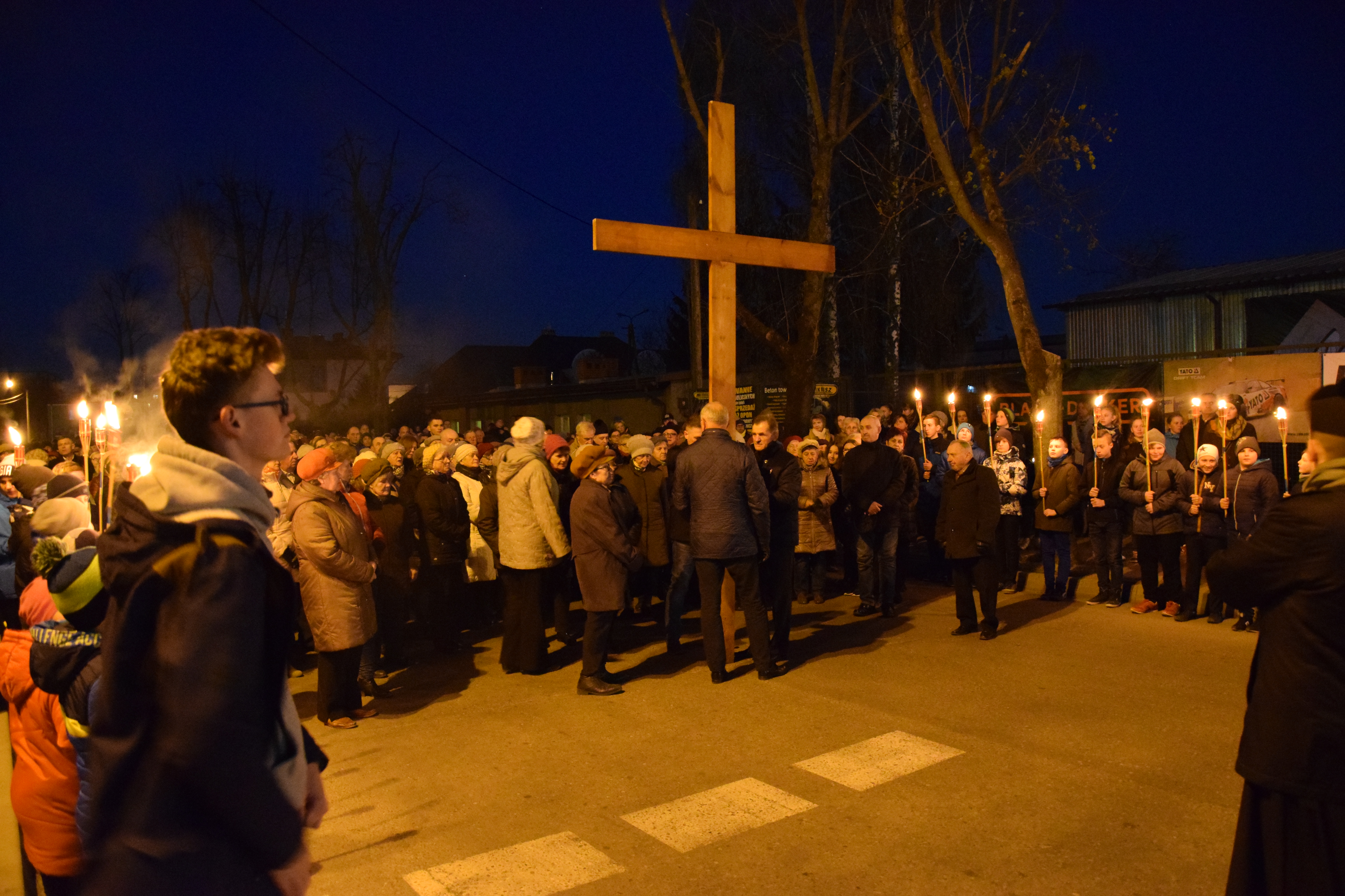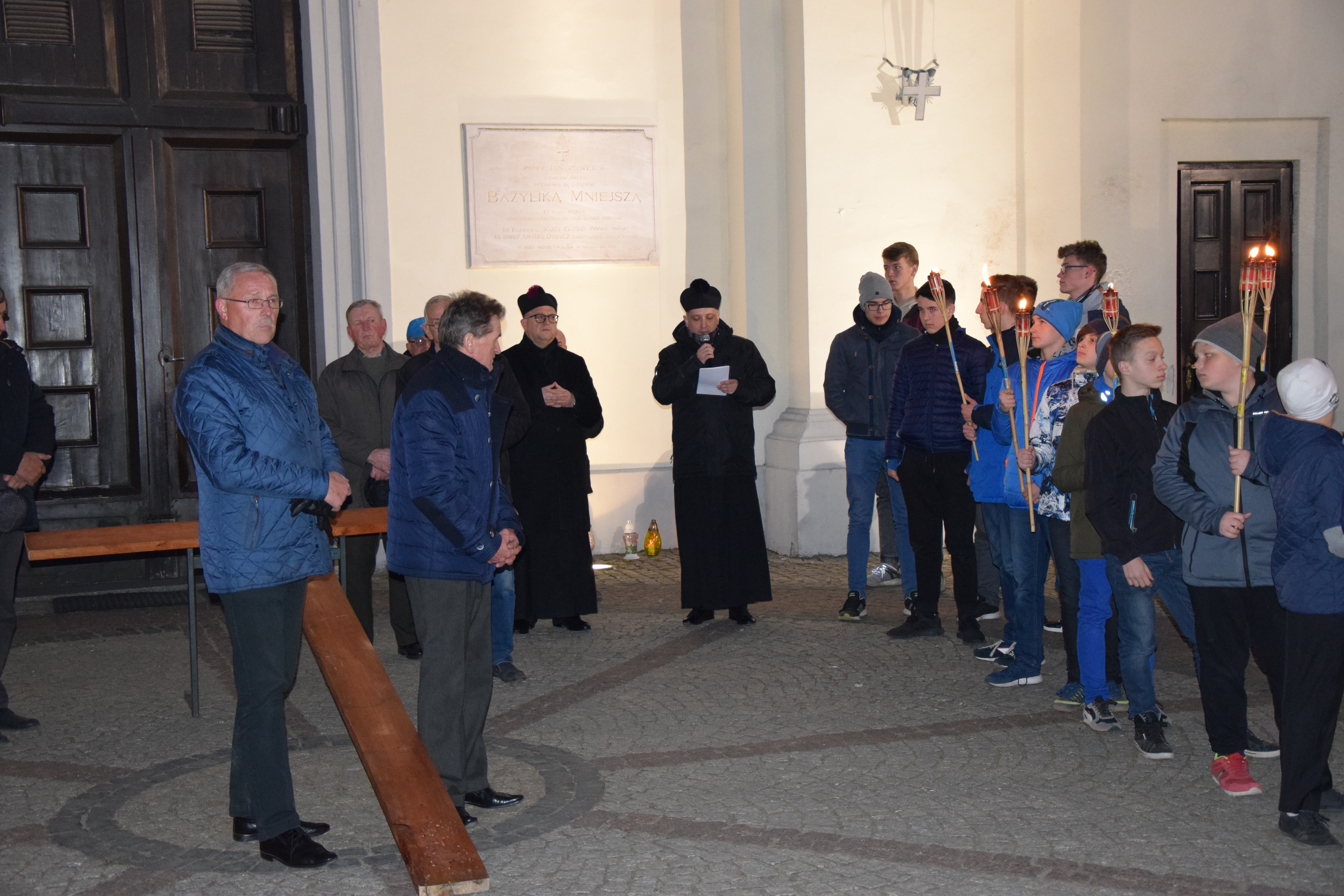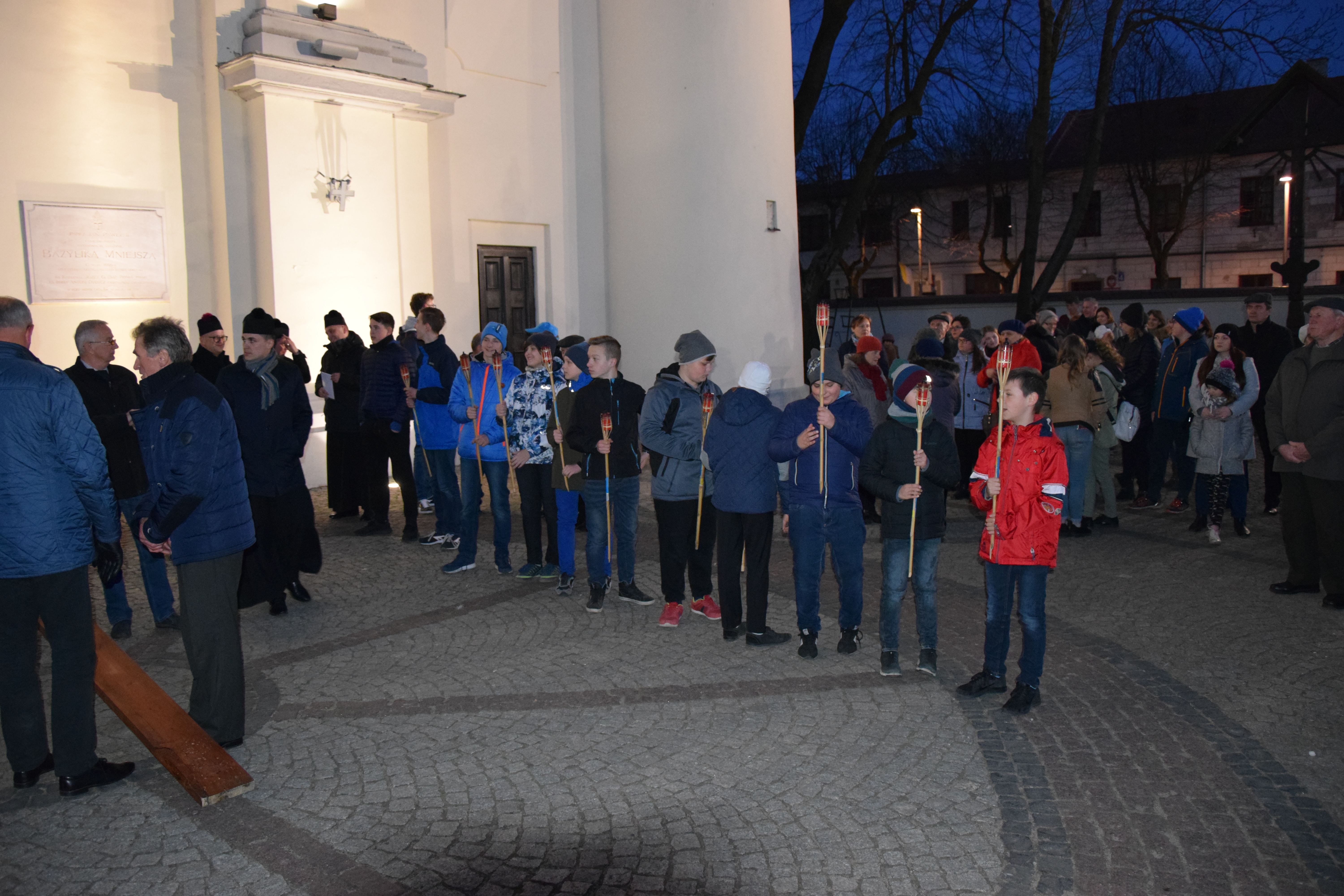14 kwietnia 2019 r., o godz. 20:00 tłumy wiernych ruszyły śladami czternastu stacji, aby wsłuchując się w kolejne rozważania, przygotowane przez rekolekcjonistę, ks. Krzysztofa Mielnickiego, podsumować czterodniowe ćwiczenia wielkopostne w parafii. Trasa Drogi Krzyżowej rozpoczęła się na Rynku Mariackim przez Bazyliką, a następnie biegła ulicami: Strażacką, Zwycięstwa, Przemysłową, Podlaską, Polną, Wieniawskiego, Gdańską, Piwną, Spacerową, Przechodnią, Staszica i zakończyła się na rynku w centrum miasta.
