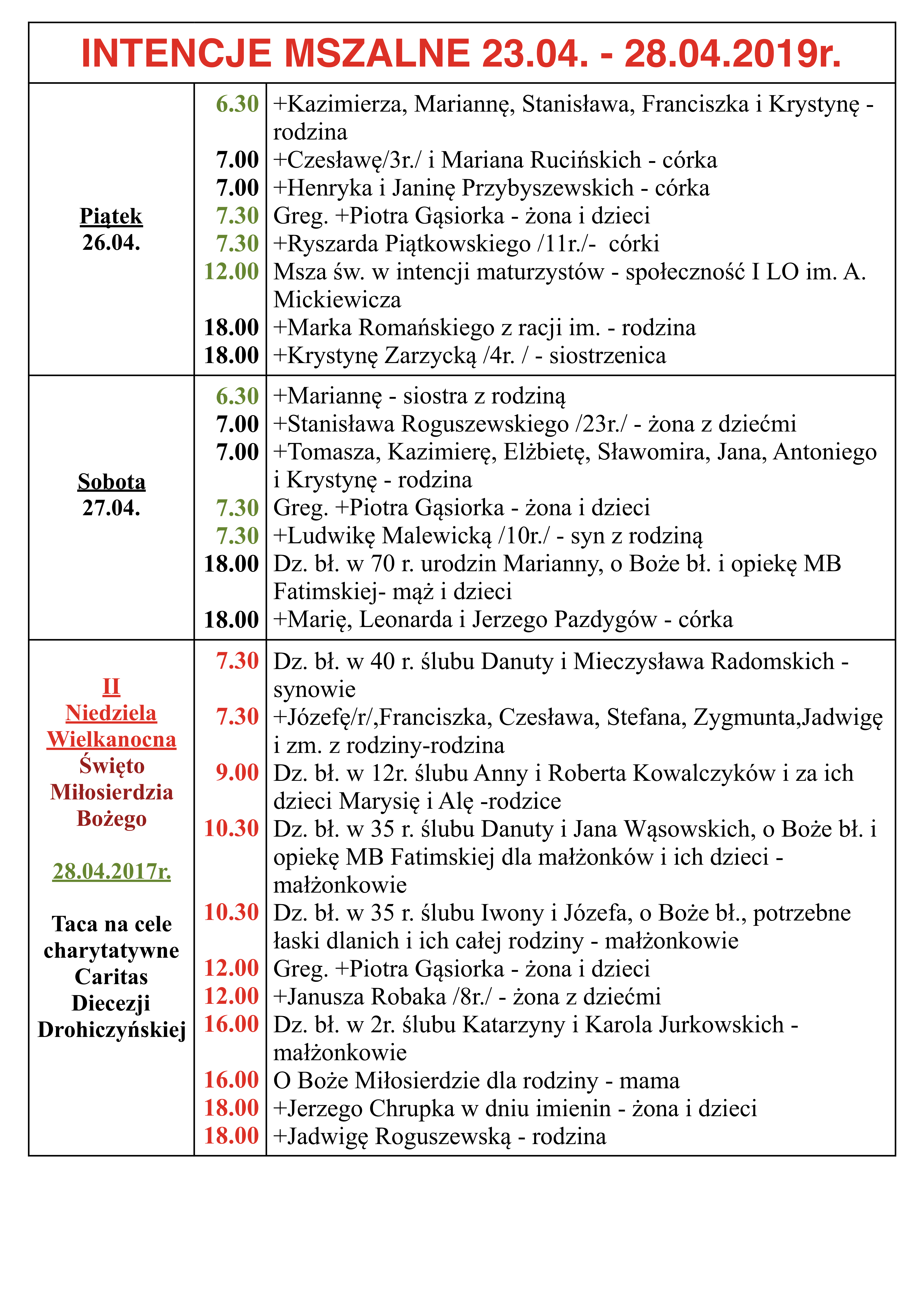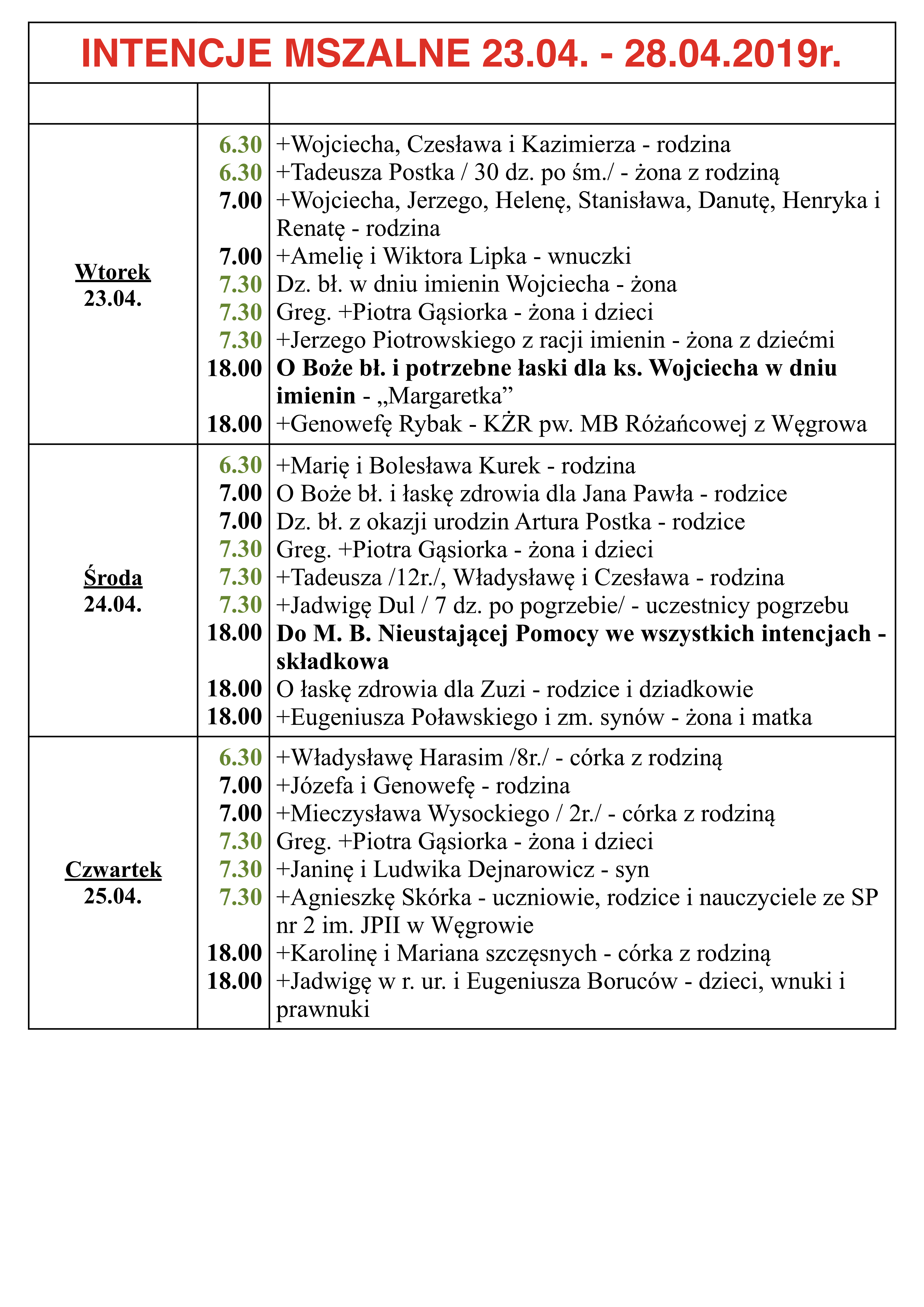 OGŁOSZENIA DUSZPASTERSKIE WIELKANOC – 21/22 kwietnia 2019 r.