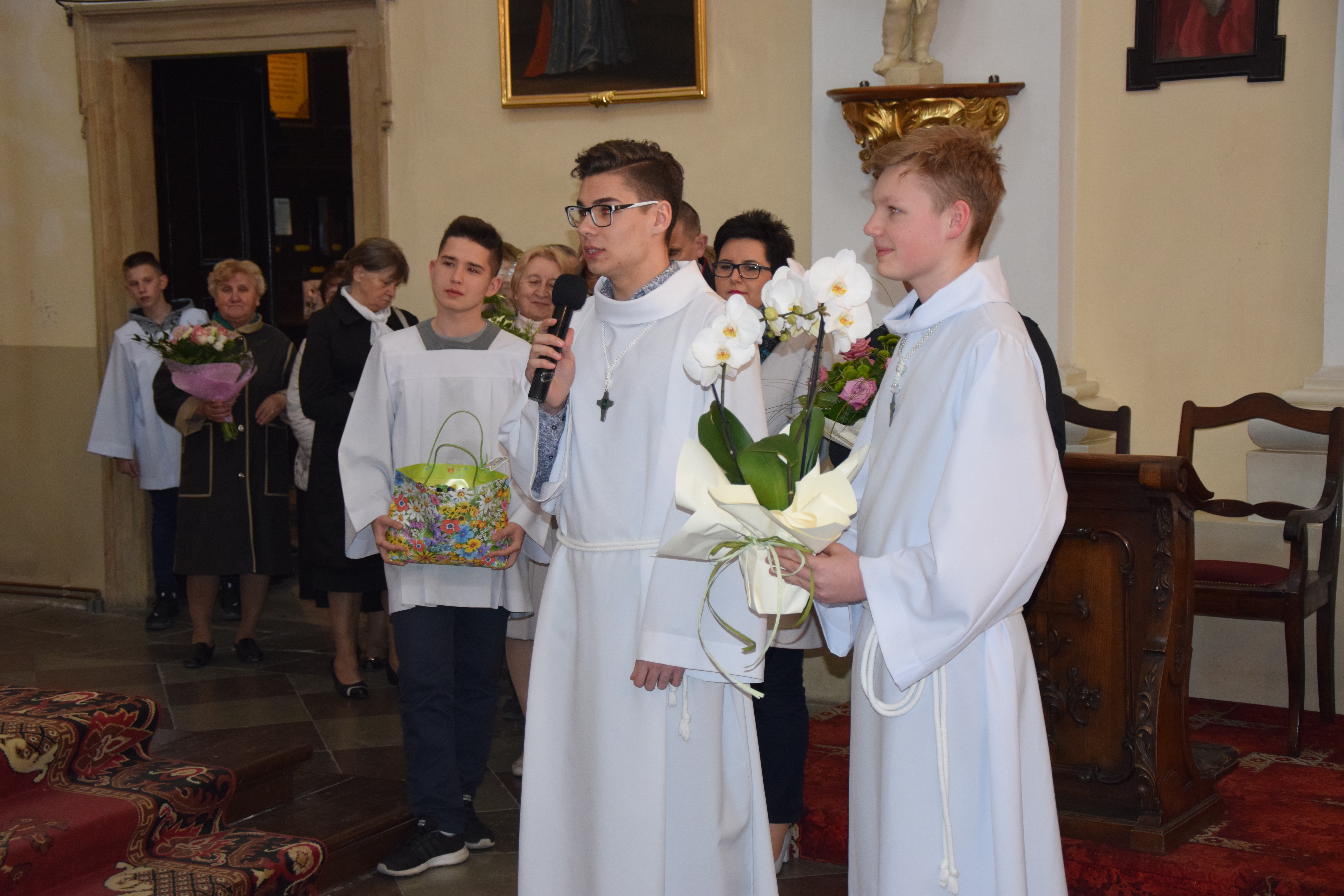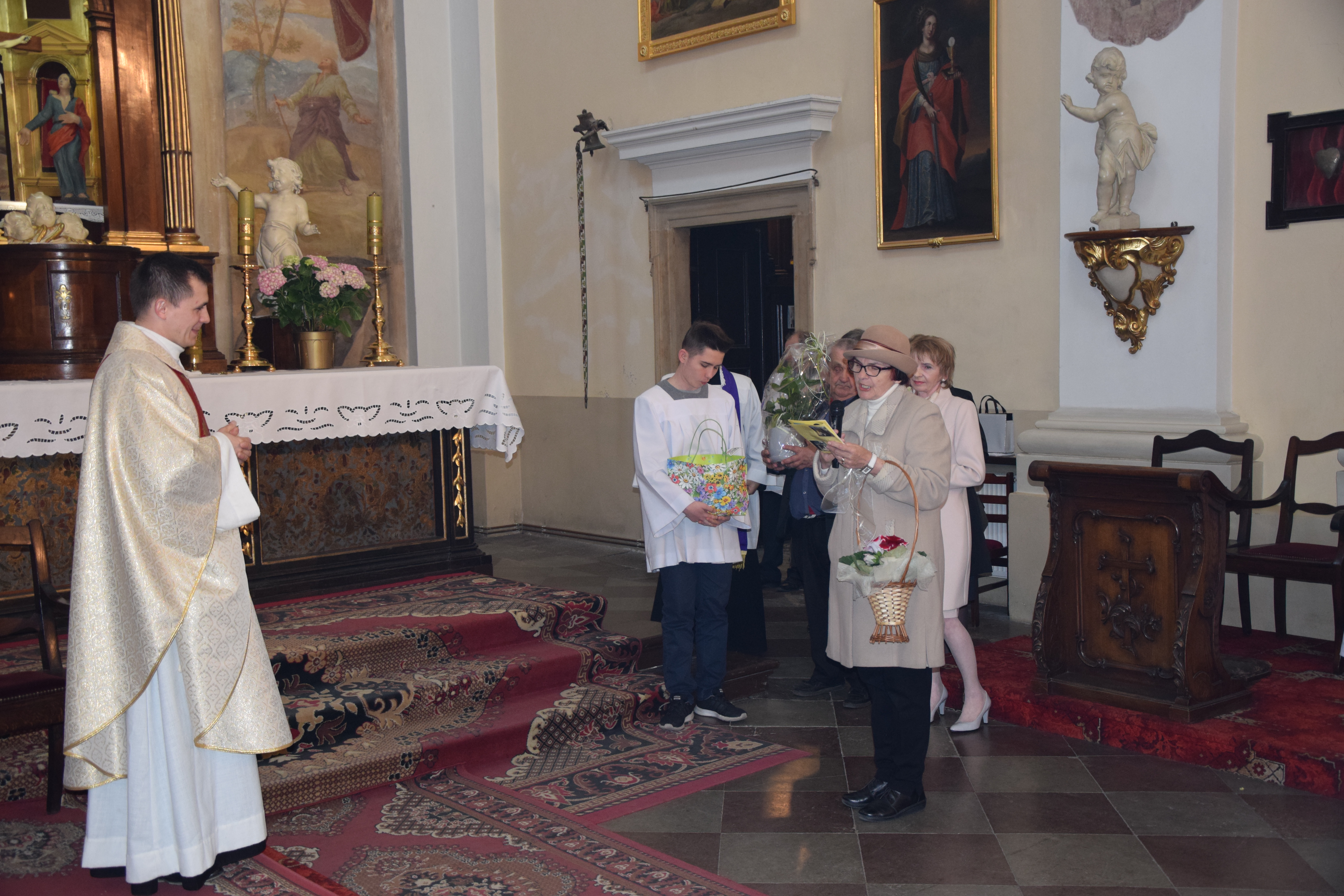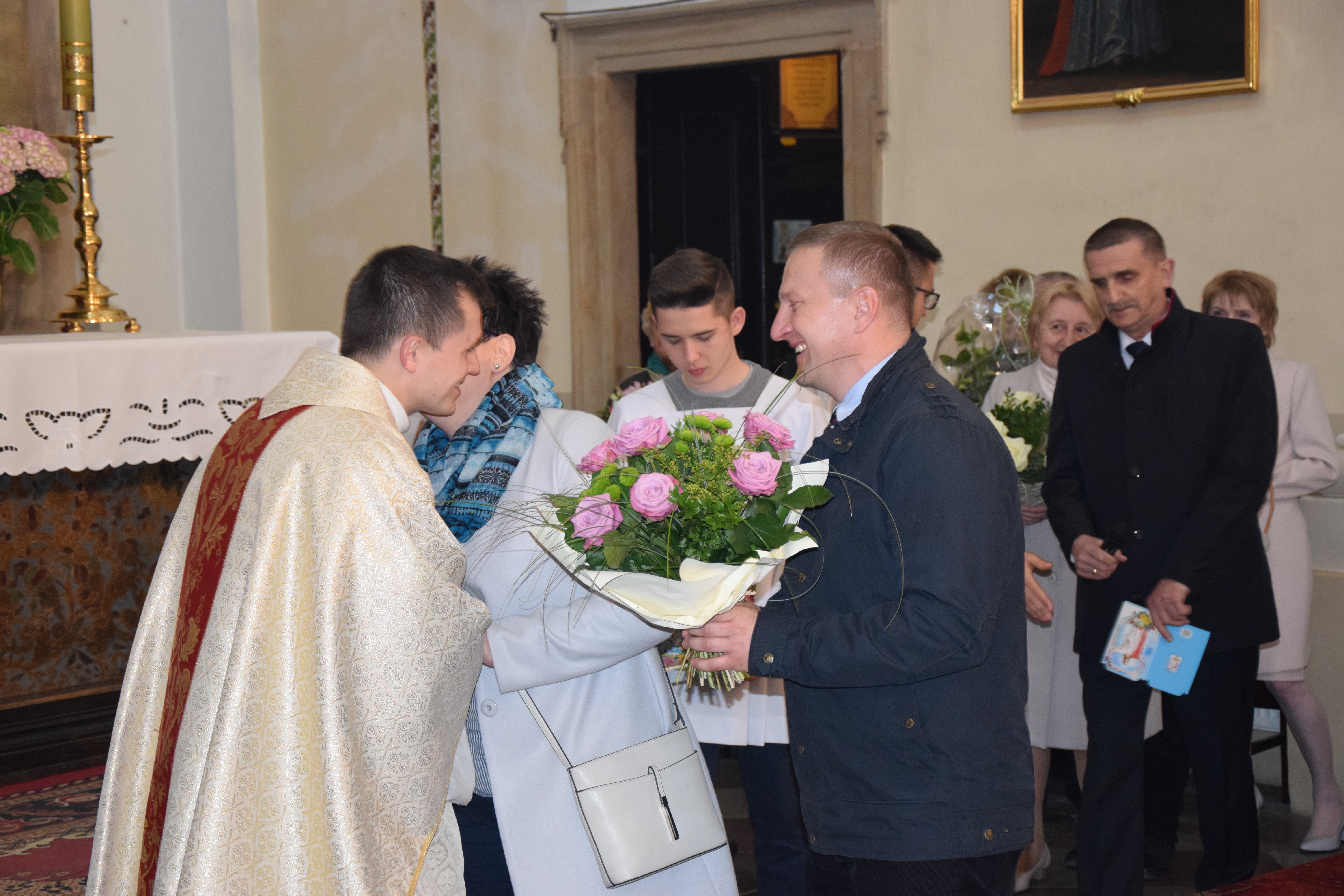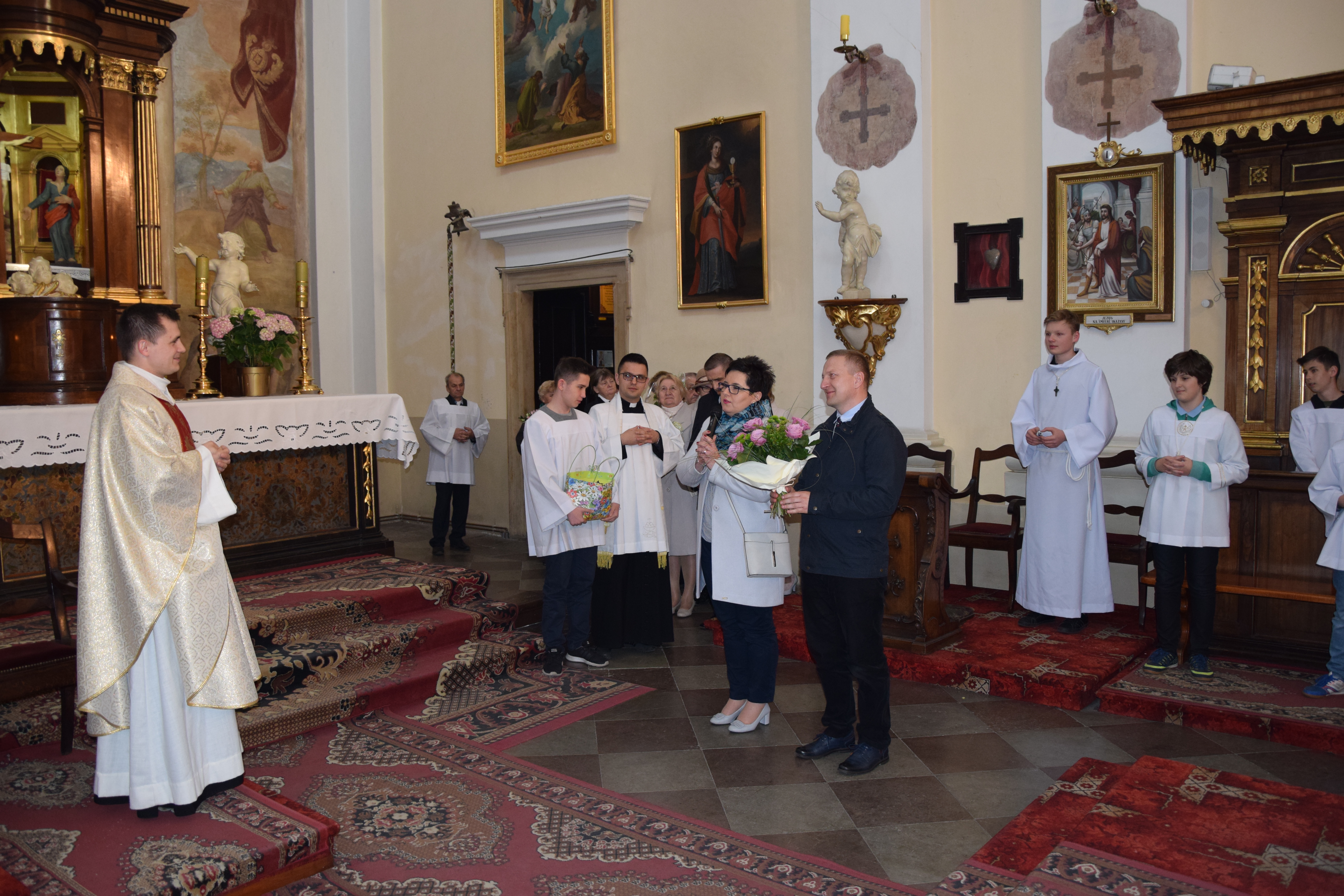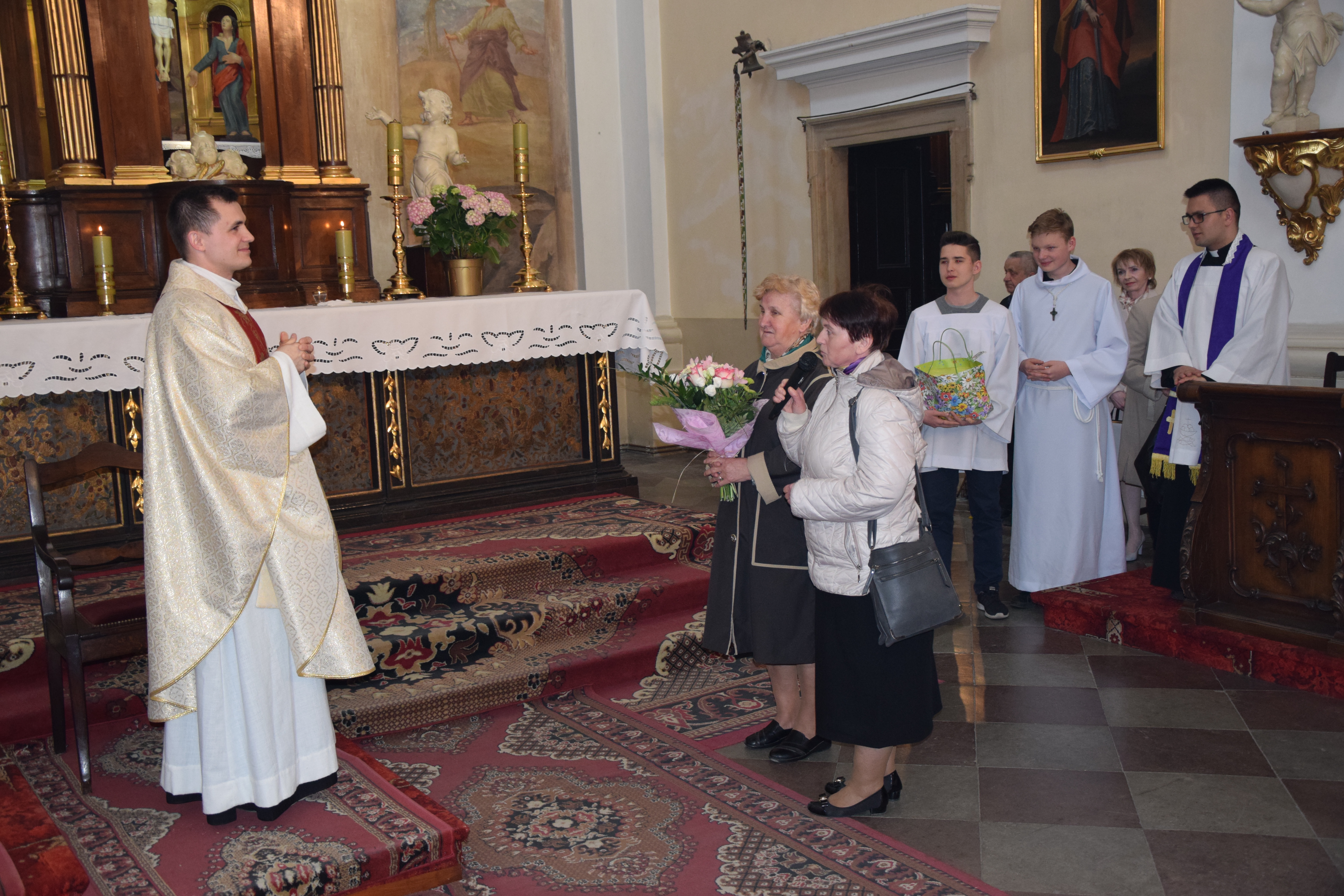W tym roku wspomnienie św. Wojciecha, biskupa i męczennika, patrona Polski, przypadło na wtorek w oktawie wielkanocnej. W tym to dniu swoje imieniny obchodził wikariusz miejscowy, ks. mgr Wojciech Wysocki. W Bazylice Mniejszej o godz. 18:00 została odprawiona uroczysta Msza św. o Boże błogosławieństwo, dary Ducha świętego i opiekę Matki Najświętszej na dalsze lata posługi kapłańskiej dla ks. Wojciecha, którą zamówiła parafialna grupa modlitewna „Margaretka”. Mszy św. przewodniczył i kazanie wygłosił ks. prał. Leszek Gardziński, proboszcz i dziekan węgrowski. Już na początku liturgii liczni przedstawiciele grup parafialnych złożyli solenizantowi moc gorących życzeń, płynących prosto z serca. Byli to przedstawiciele: parafialnego oddziału Caritas, Akcji Katolickiej, Domowego Kościoła, „Przyjaciół Oblubieńca”, kółek różańcowych, scholi młodzieżowej i ministrantów. Z racji tego, iż ks. Wojciech jest opiekunem służby liturgicznej ołtarza, dlatego też Mszy św. towarzyszyła pełna asysta liturgiczna.