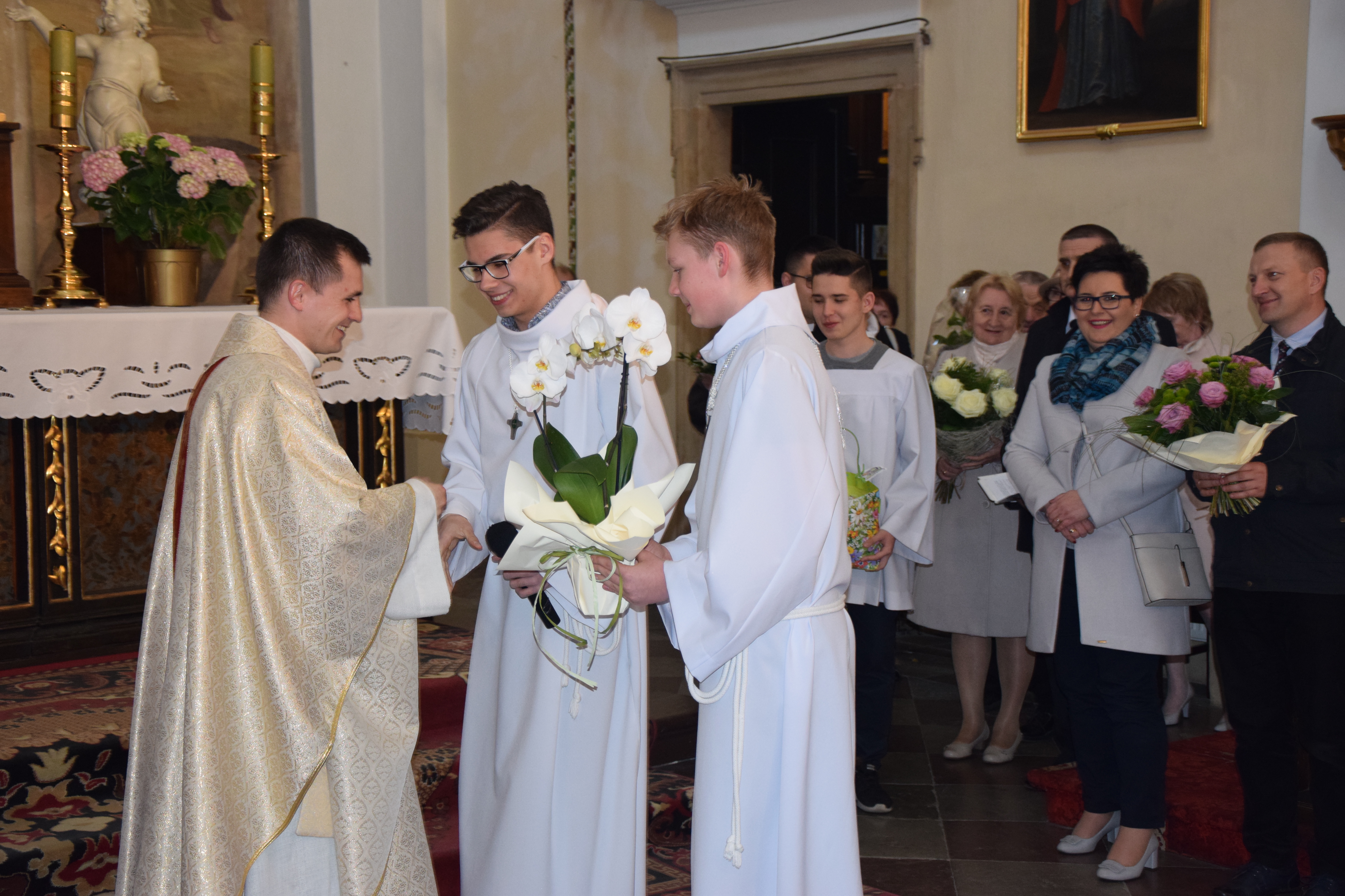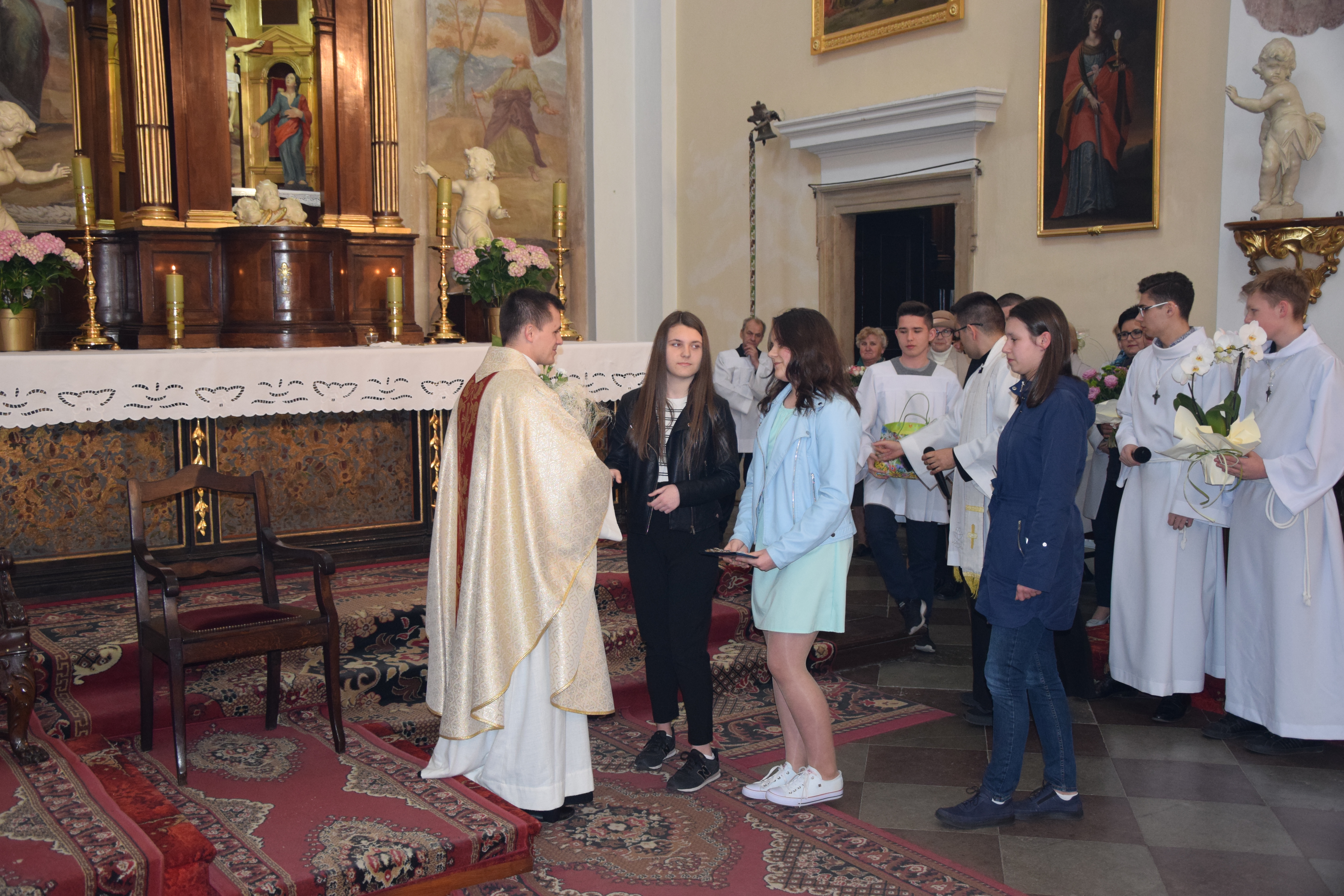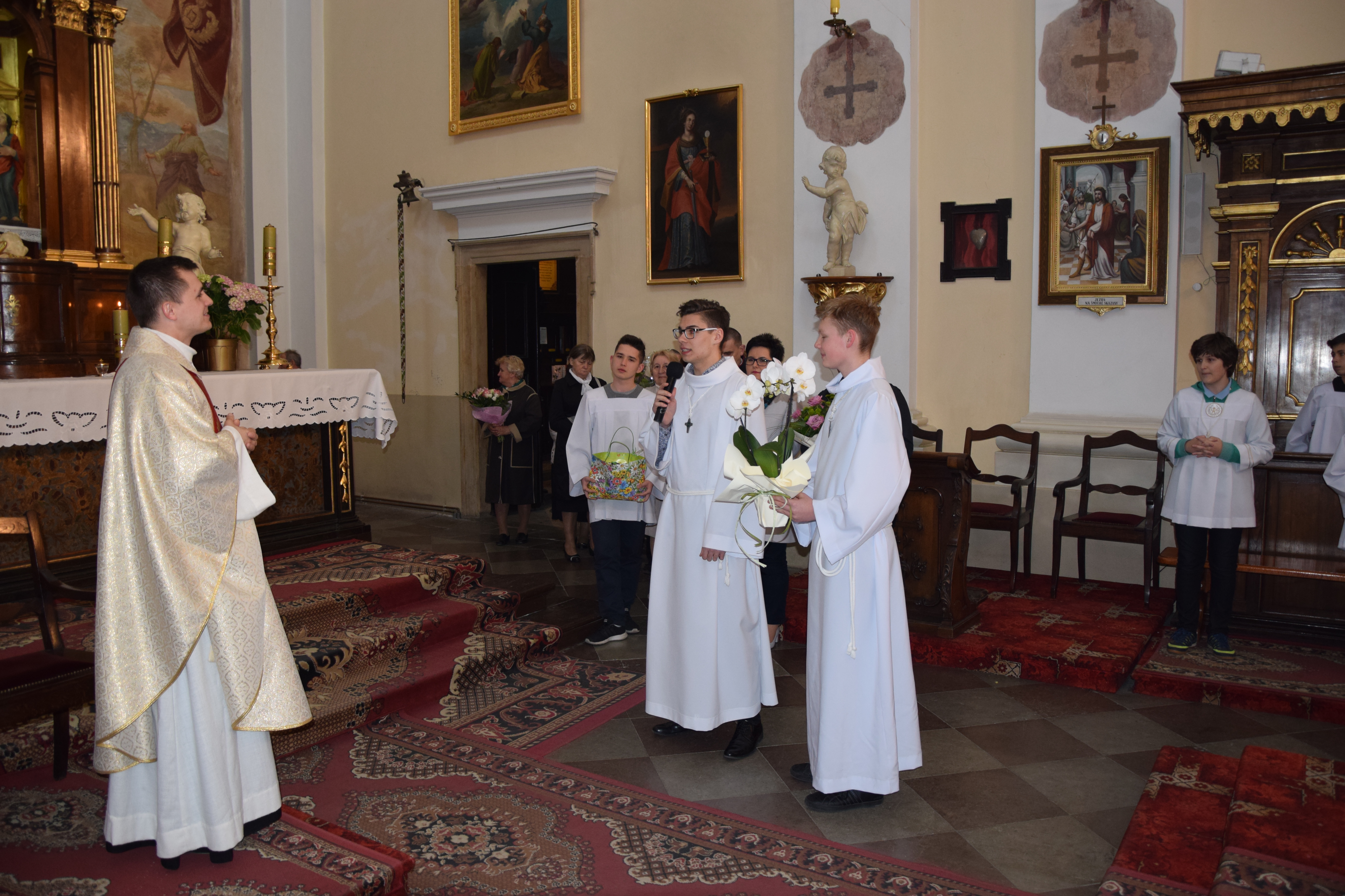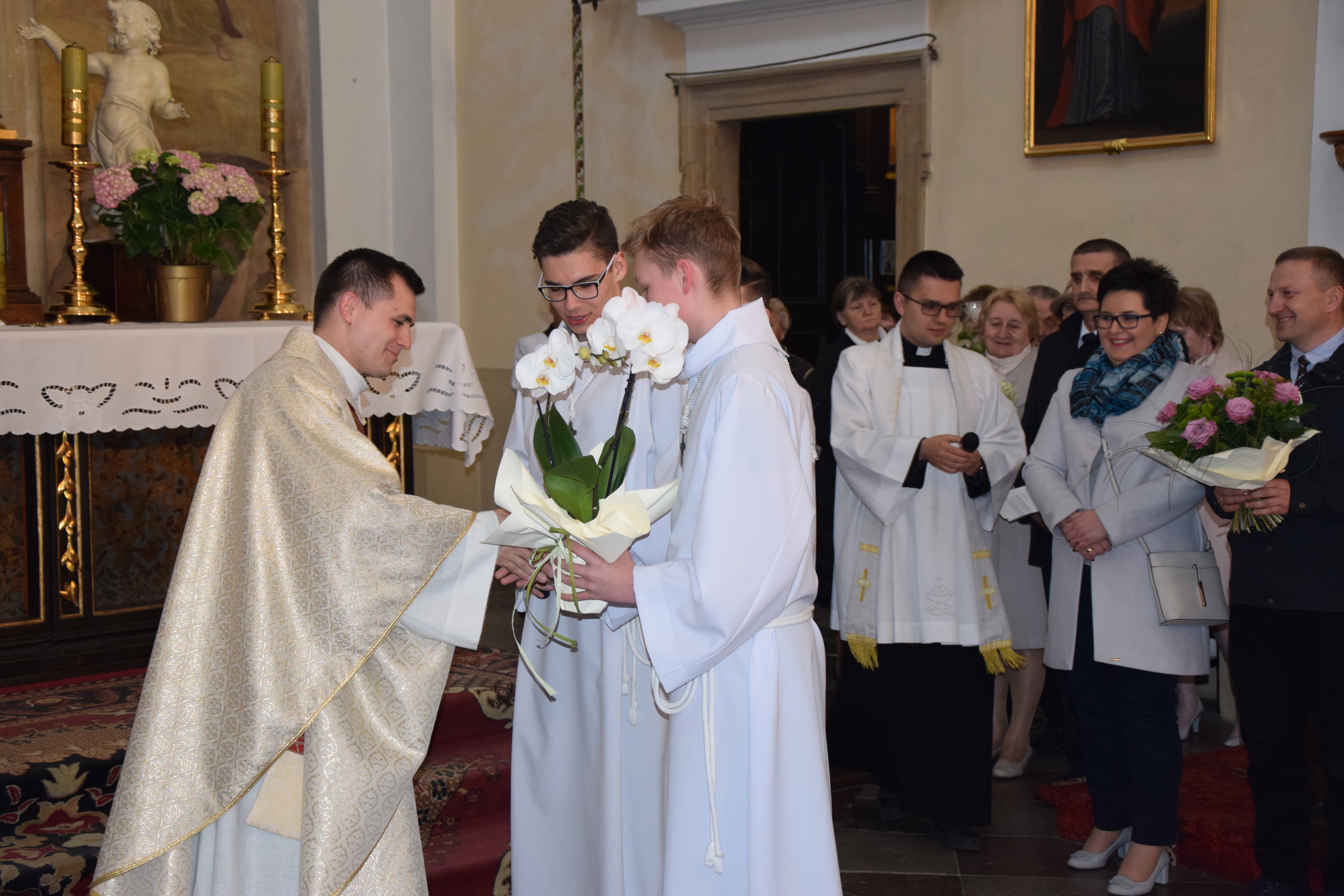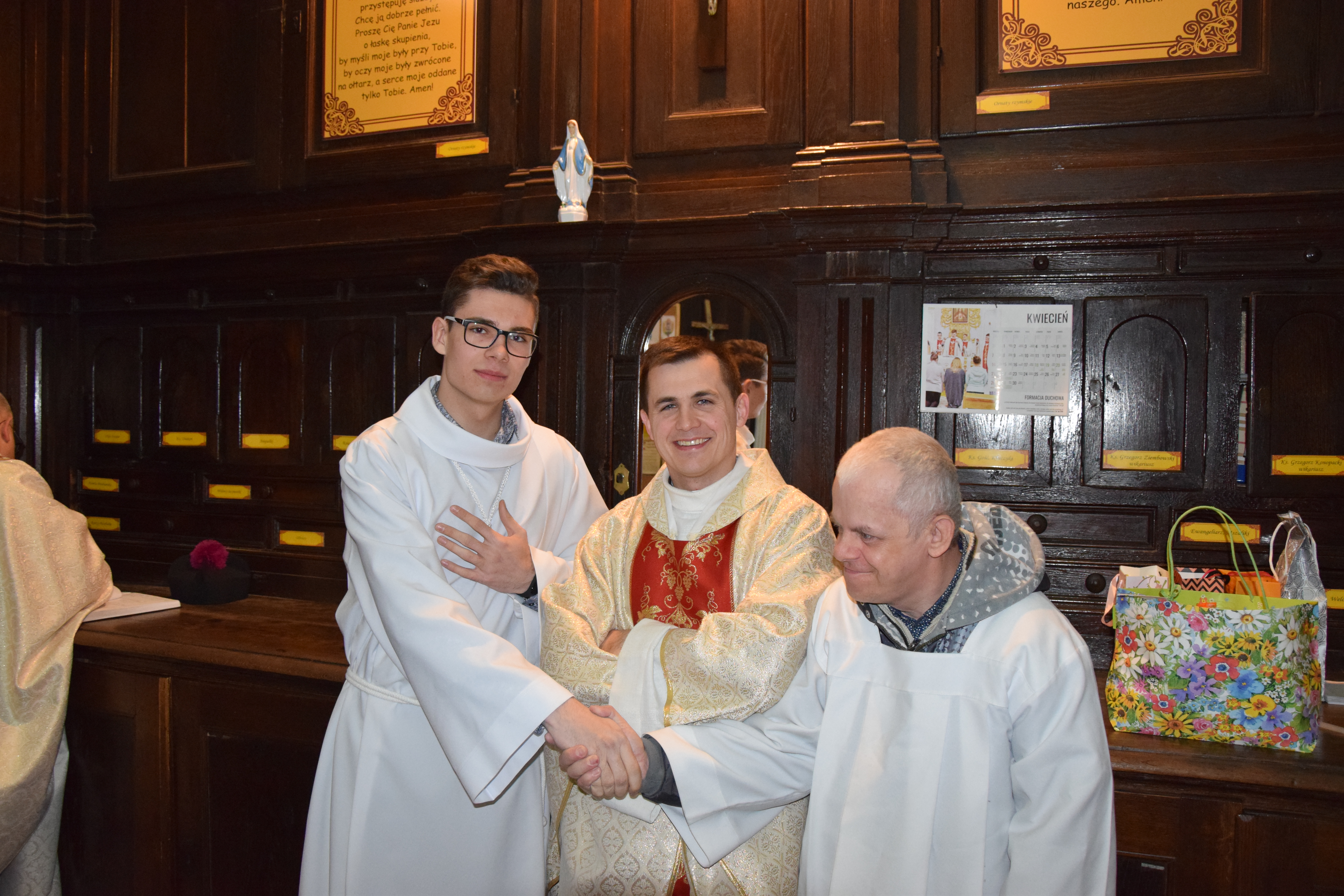 W tym roku wspomnienie św. Wojciecha, biskupa i męczennika, patrona Polski, przypadło na wtorek w oktawie wielkanocnej. W tym to dniu swoje imieniny obchodził wikariusz miejscowy, ks. mgr Wojciech Wysocki. W Bazylice Mniejszej o godz. 18:00 została odprawiona uroczysta Msza św. o Boże błogosławieństwo, dary Ducha świętego i opiekę Matki Najświętszej na dalsze lata posługi kapłańskiej dla ks. Wojciecha, którą zamówiła parafialna grupa modlitewna „Margaretka”. Mszy św. przewodniczył i kazanie wygłosił ks. prał. Leszek Gardziński, proboszcz i dziekan węgrowski. Już na początku liturgii liczni przedstawiciele grup parafialnych złożyli solenizantowi moc gorących życzeń, płynących prosto z serca. Byli to przedstawiciele: parafialnego oddziału Caritas, Akcji Katolickiej, Domowego Kościoła, „Przyjaciół Oblubieńca”, kółek różańcowych, scholi młodzieżowej i ministrantów. Z racji tego, iż ks. Wojciech jest opiekunem służby liturgicznej ołtarza, dlatego też Mszy św. towarzyszyła pełna asysta liturgiczna.