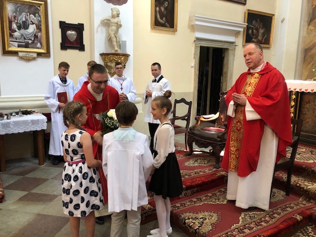 Neoprezbiter w okresie od lutego do kwietnia 2019 odbywał praktykę duszpastersko-katechetyczną w węgrowskiej parafii.