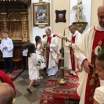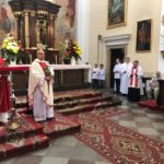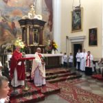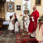W sobotę, 29 czerwca, nasza parafia obchodziła swój doroczny odpust, związany z przypadającą w tym dniu uroczystością Świętych Apostołów Piotra i Pawła. Radość wszystkich była tym większa, że uroczystości odpustowe zbiegły się z 30. rocznicą święceń kapłańskich ks. prał. Leszka Gardzińskiego, proboszcza i dziekana węgrowskiego. Z tej okazji główna Msza święta o godz. 12:00 zgromadziła wielu kapłanów z dekanatu węgrowskiego, kolegów kursowych ks. Proboszcza, którzy wraz z nim świętowali swój perłowy jubileusz kapłaństwa, a więc ks. kan. Marek Matusik – pomagający w Bazylice w niedziele, ks. kan. Henryk Sączek – proboszcz z Liwa i ks. Marek Sidoruk- proboszcz ze Starejwsi. Już na początku Mszy św. liczni przedstawiciele grup parafialnych działających przy Bazylice Mniejszej w Węgrowie złożyli księżom celebransom serdeczne i gorące życzenia oraz wyrazili wdzięczność za dar wieloletniej posługi duszpasterskiej w kościele. Byli to m.in. dzieci, ministranci, członkowie Akcji Katolickiej, Domowego Kościoła, kół żywego i nieustającego różańca. Pod koniec „sumy odpustowej”, której przewodniczył nasz ks.proboszcz prał. Leszek Gardziński, ruszyła procesja eucharystyczna wokół Bazyliki, którą poprowadził wicedziekan dekanatu węgrowskiego, ks. kan. Henryk Sączek z parafii Liw. Na koniec wszyscy wierni zgromadzeni w kościele odśpiewali dziękczynne „Te Deum laudamus” jako swoiste wyznanie wiary w jeden, święty, powszechny i apostolski Kościół.