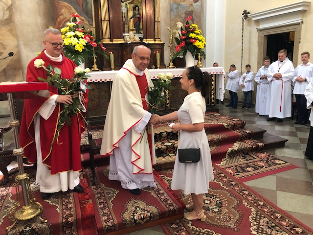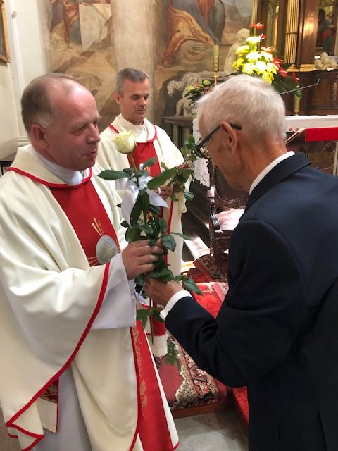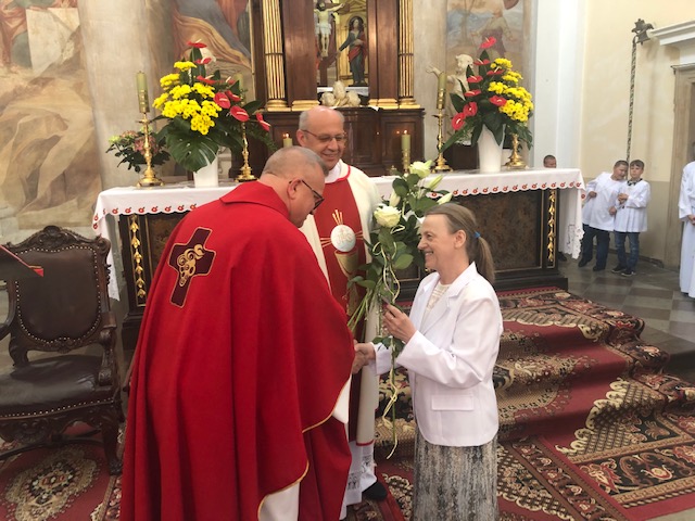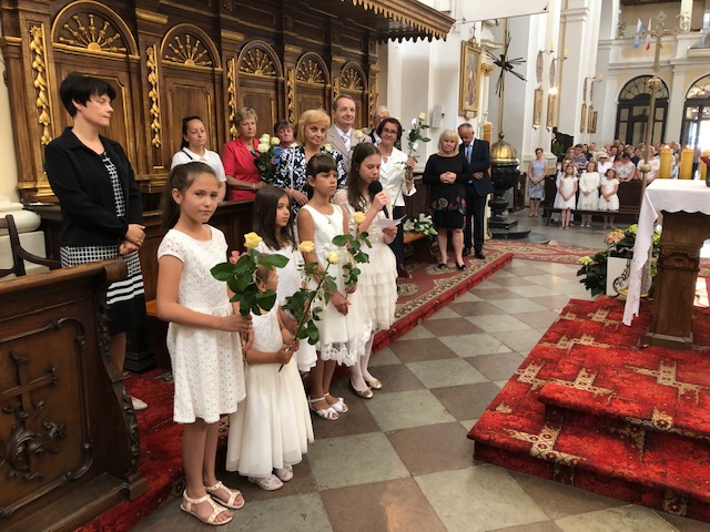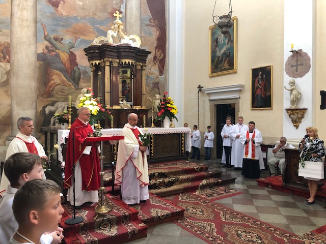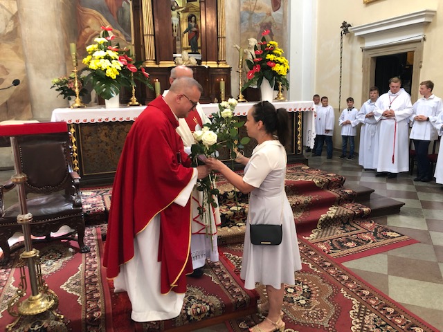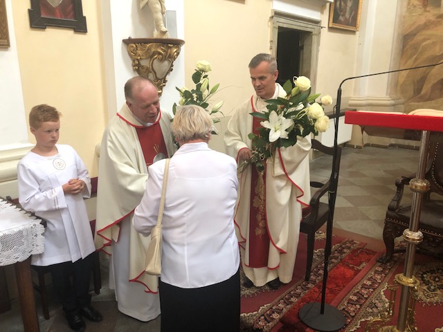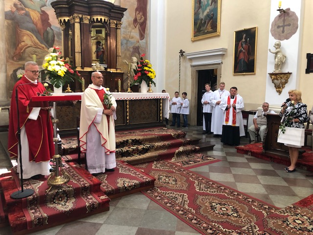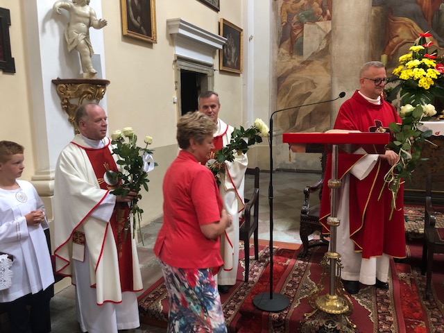 W sobotę, 29 czerwca, nasza parafia obchodziła swój doroczny odpust, związany z przypadającą w tym dniu uroczystością Świętych Apostołów Piotra i Pawła. Radość wszystkich była tym większa, że uroczystości odpustowe zbiegły się z 30. rocznicą święceń kapłańskich ks. prał. Leszka Gardzińskiego, proboszcza i dziekana węgrowskiego. Z tej okazji główna Msza święta o godz. 12:00 zgromadziła wielu kapłanów z dekanatu węgrowskiego, kolegów kursowych ks. Proboszcza, którzy wraz z nim świętowali swój perłowy jubileusz kapłaństwa, a więc ks. kan. Marek Matusik – pomagający w Bazylice w niedziele, ks. kan. Henryk Sączek – proboszcz z Liwa i ks. Marek Sidoruk- proboszcz ze Starejwsi. Już na początku Mszy św. liczni przedstawiciele grup parafialnych działających przy Bazylice Mniejszej w Węgrowie złożyli księżom celebransom serdeczne i gorące życzenia oraz wyrazili wdzięczność za dar wieloletniej posługi duszpasterskiej w kościele. Byli to m.in. dzieci, ministranci, członkowie Akcji Katolickiej, Domowego Kościoła, kół żywego i nieustającego różańca. Pod koniec „sumy odpustowej”, której przewodniczył nasz ks.proboszcz prał. Leszek Gardziński, ruszyła procesja eucharystyczna wokół Bazyliki, którą poprowadził wicedziekan dekanatu węgrowskiego, ks. kan. Henryk Sączek z parafii Liw. Na koniec wszyscy wierni zgromadzeni w kościele odśpiewali dziękczynne „Te Deum laudamus” jako swoiste wyznanie wiary w jeden, święty, powszechny i apostolski Kościół.