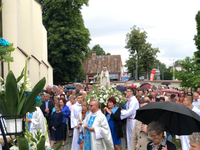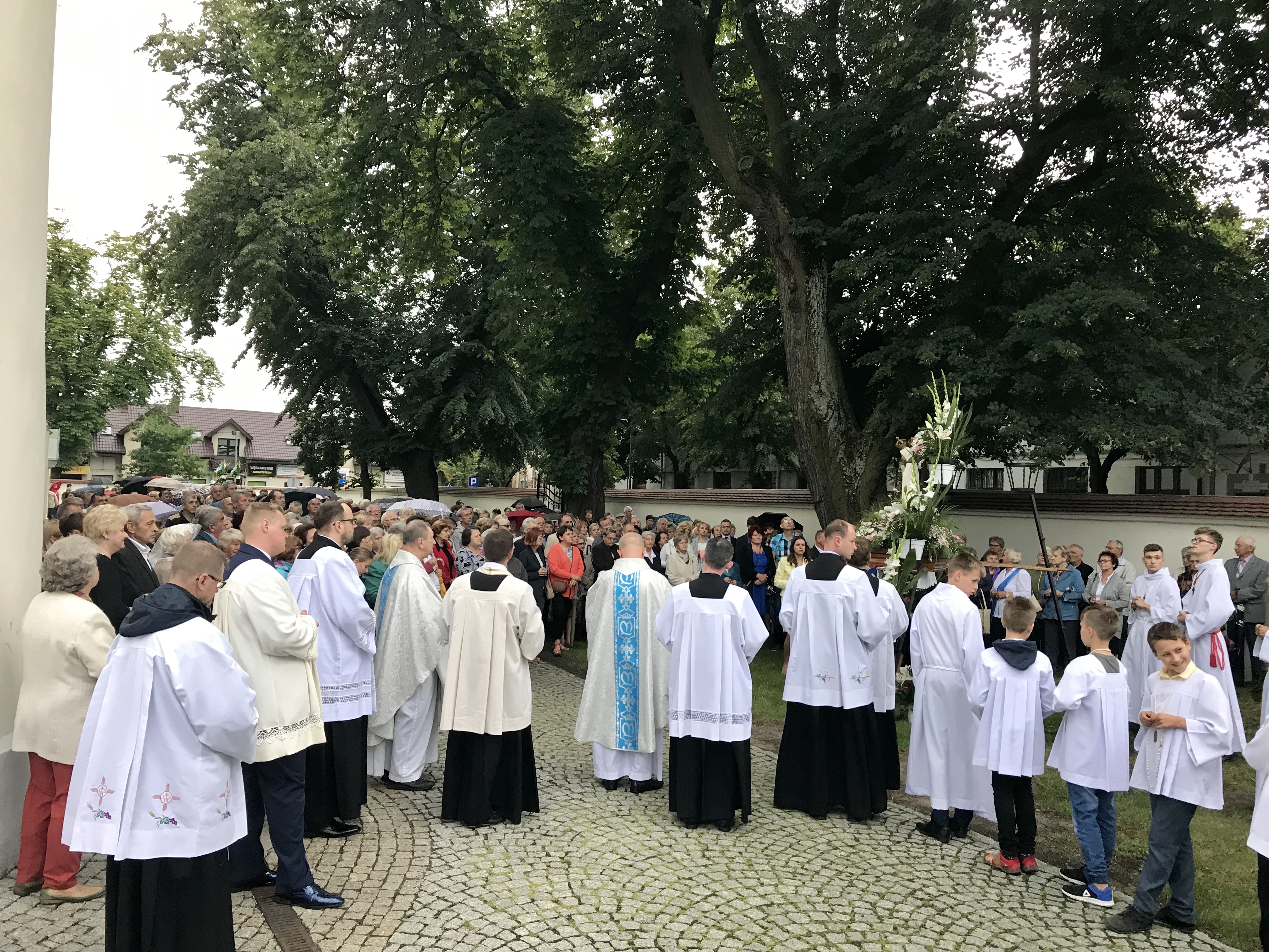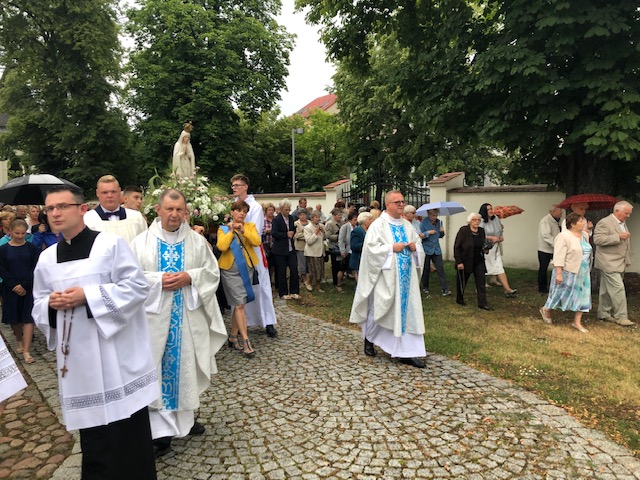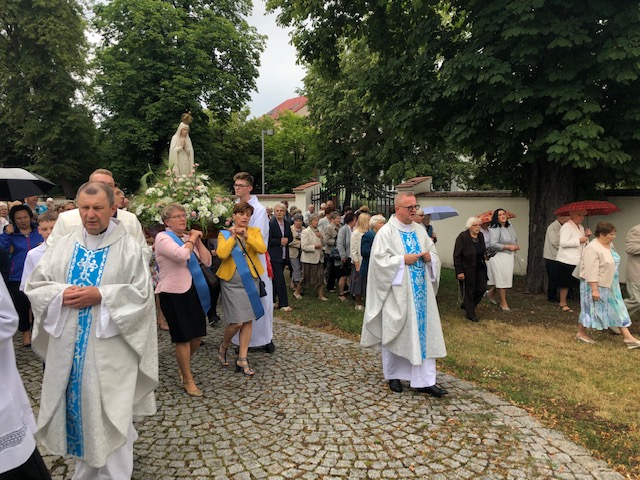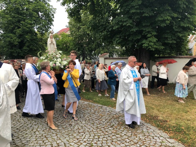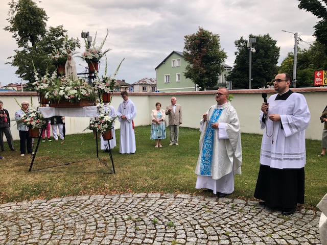 Ks. Bp Antoni Dydycz wygłosił okolicznościową homilię, w której przybliżył historię maryjnych objawień w Fatimie oraz podkreślił ich aspekt religijny. Po skończonej Eucharystii miała miejsce procesja do czterech ołtarzy wokół Bazyliki, podczas której uprzednio wyznaczeni przedstawiciele parafii nieśli figurę Matki Bożej Fatimskiej. Biskup Antoni ubogacił odmawiany przez wiernych różaniec poprzez wygłoszone płomiennie rozważania kolejnych tajemnic radosnych. Lipcowe nabożeństwo fatimskie zakończyło się błogosławieństwem pasterskim, odśpiewaniem Apelu Jasnogórskiego oraz piosenki „Panience na dobranoc”.
