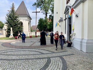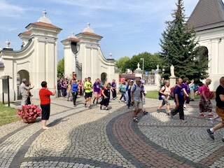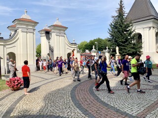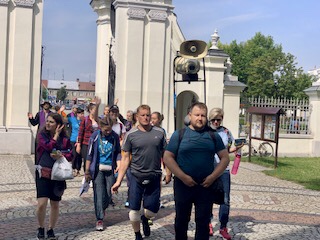 Po krótkim postoju przy Bazylice w Węgrowie, białostocka pielgrzymka ruszyła na dalszy szlak do tronu Matki Boskiej Częstochowskiej, wyśpiewując radosne piosenki religijne i żegnając się z parafianami węgrowskimi.