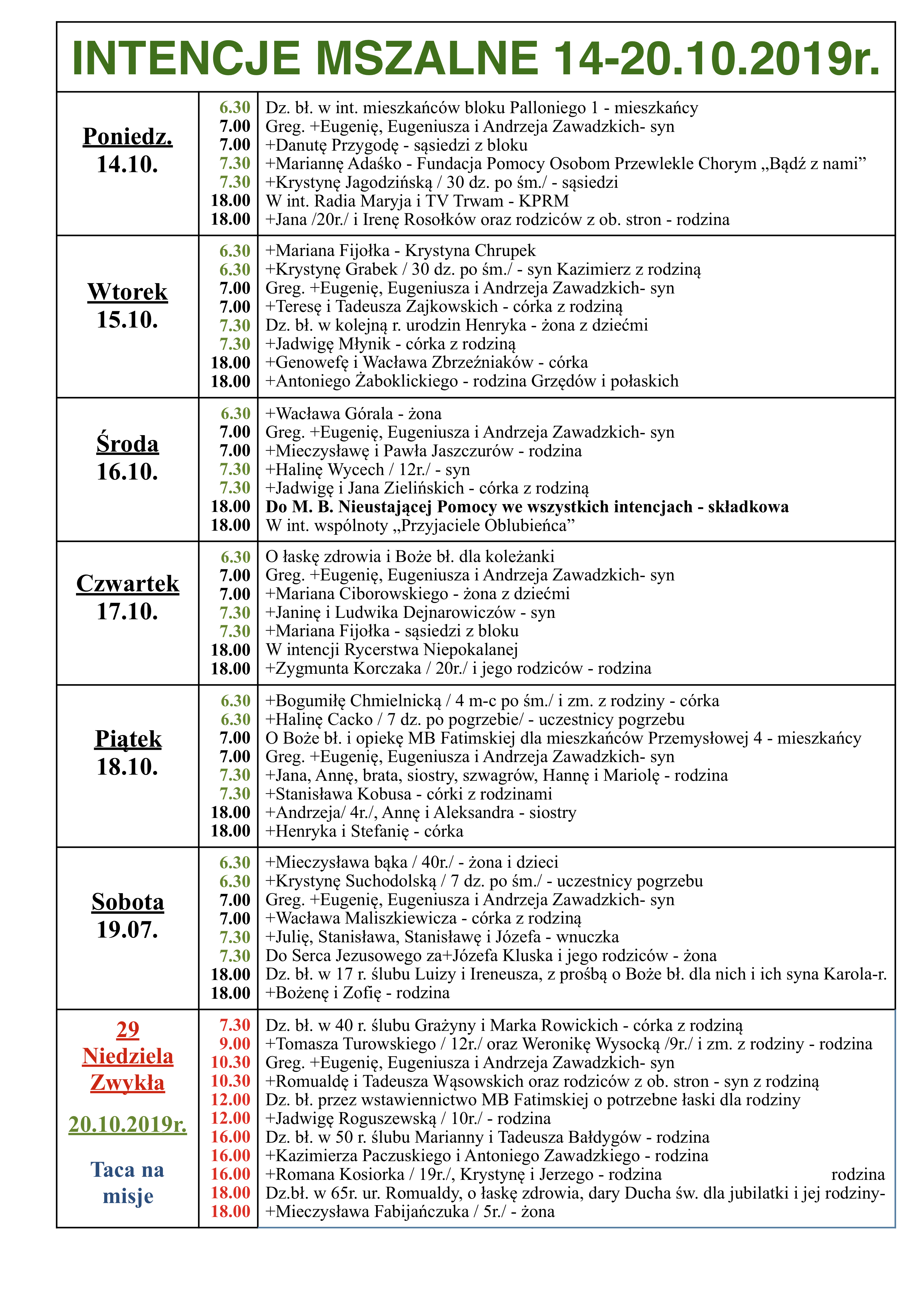 Ogłoszenia duszpasterskie – 13 października 2019r.