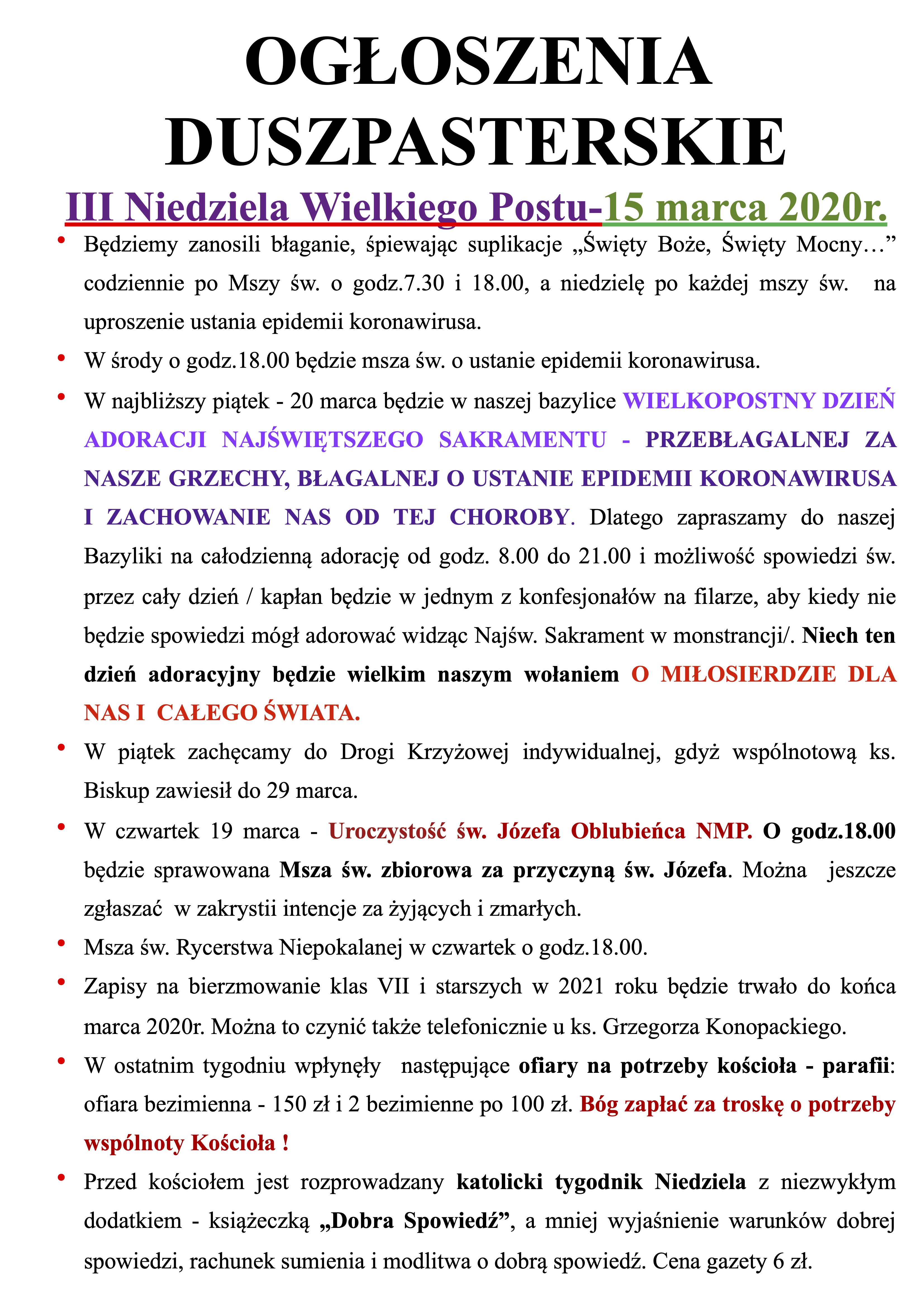 III Niedziela Wielkiego Postu-15 marca 2020r.