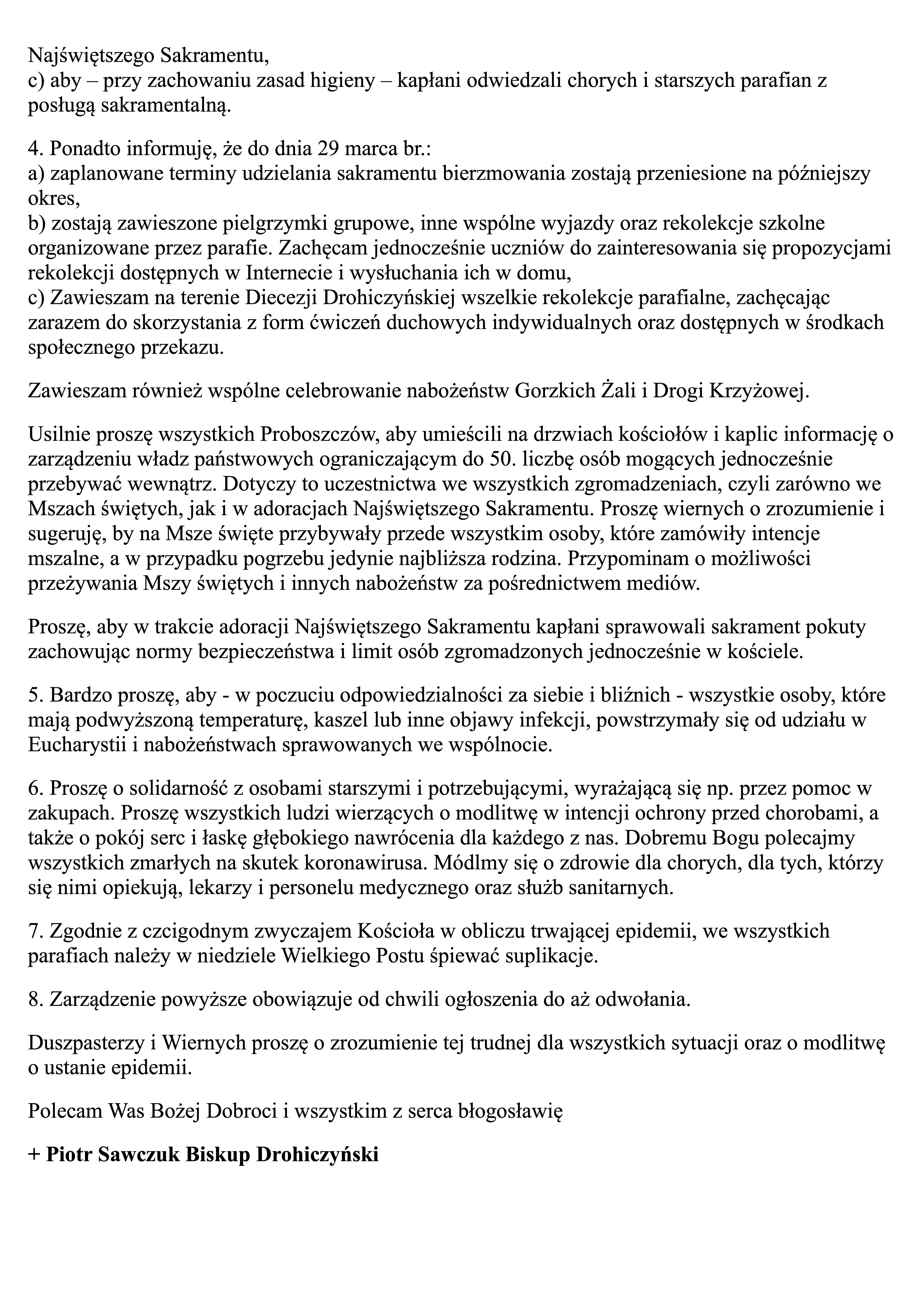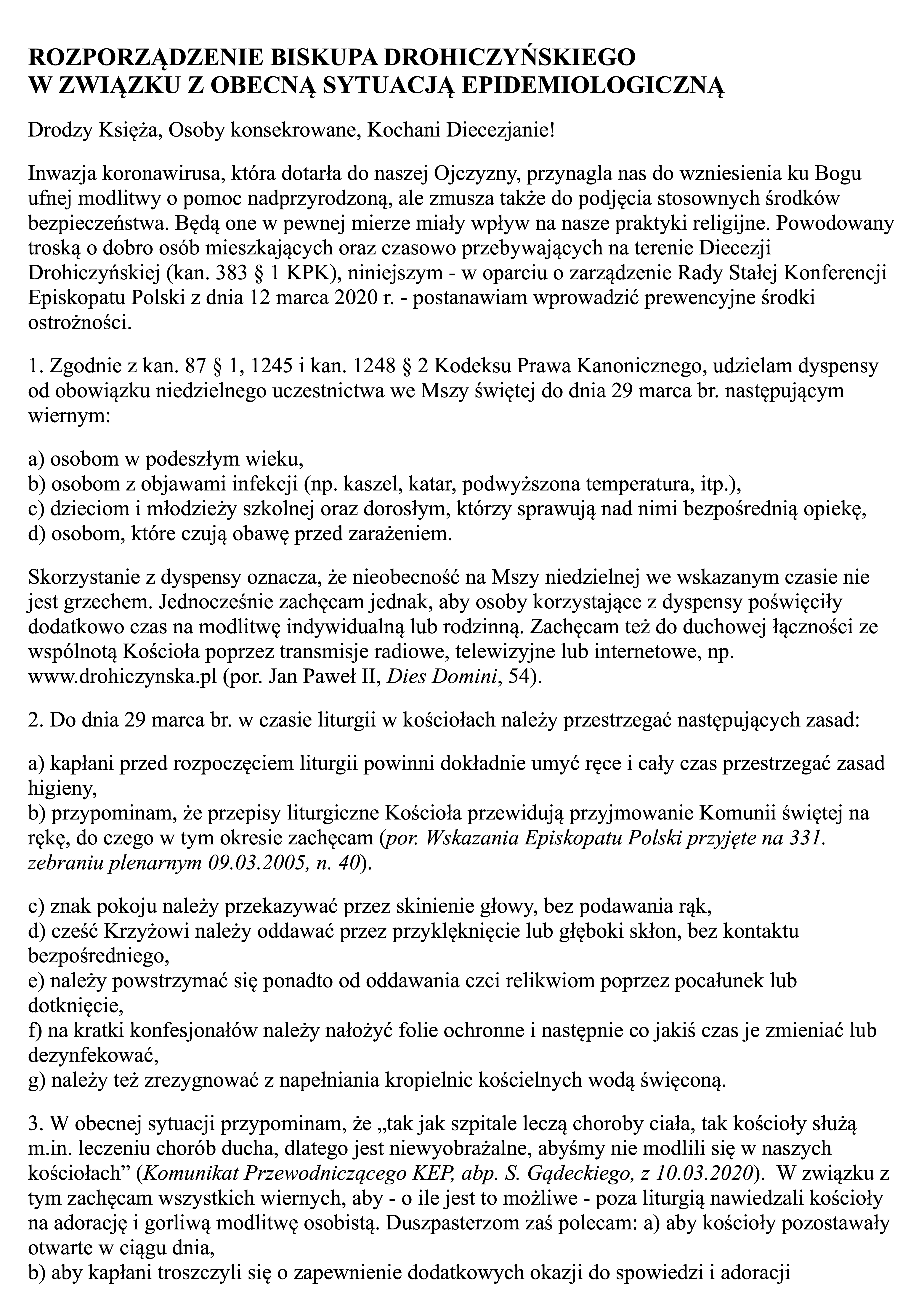 Rozporządzenie Biskupa Drohiczyńskiego w związku z obecna sytuacją epidemiologiczną przez Ks. Proboszcz / 6 lat temu