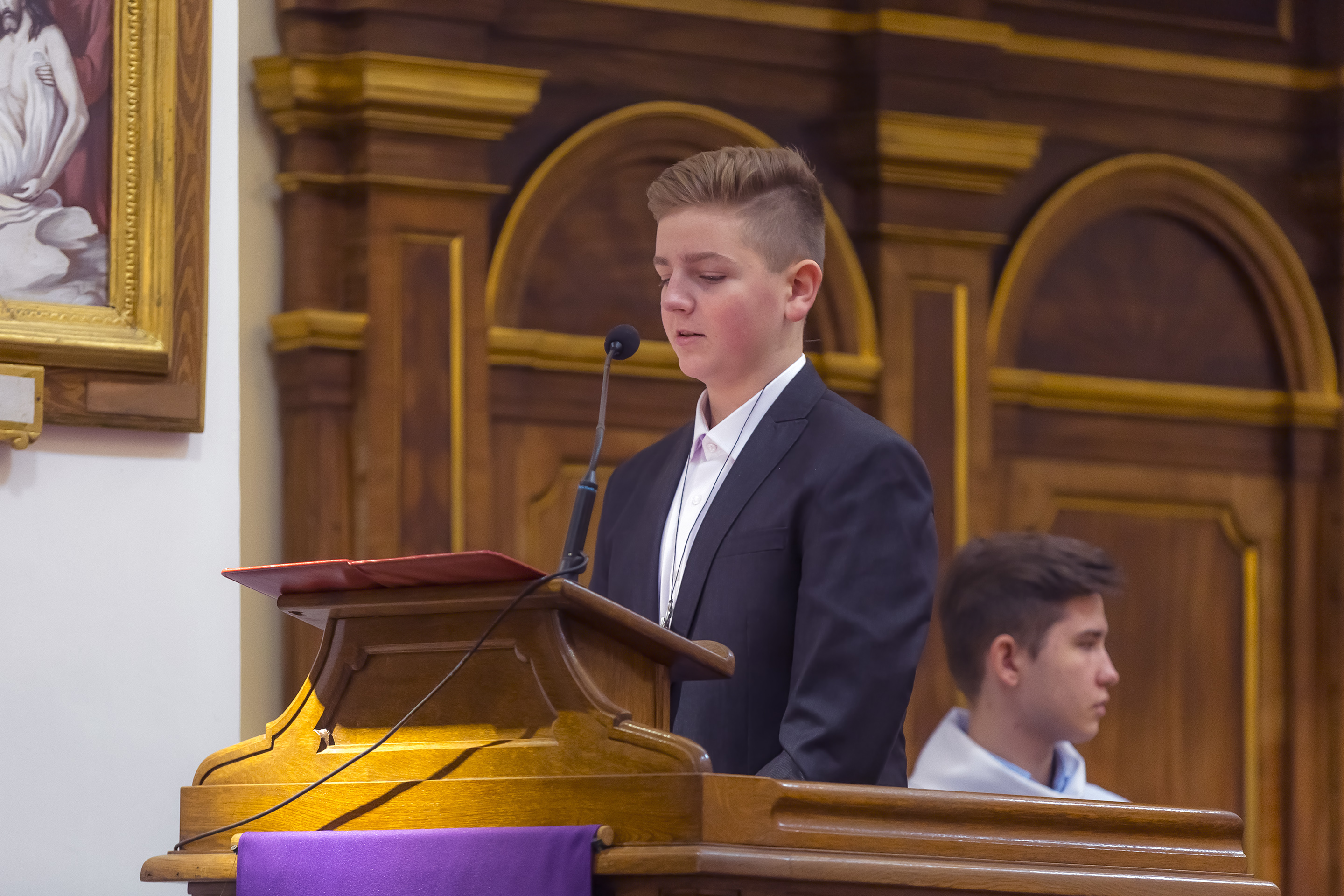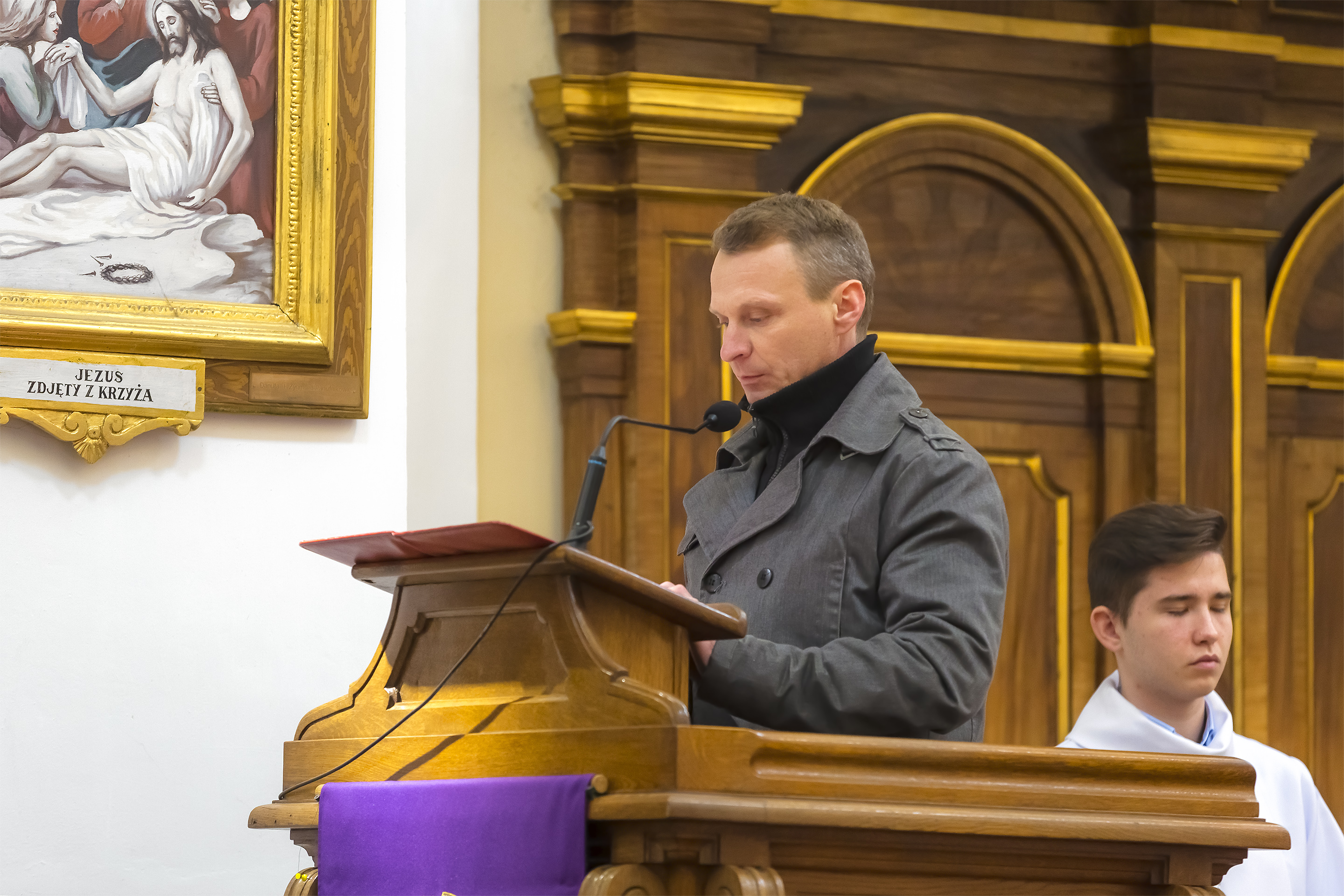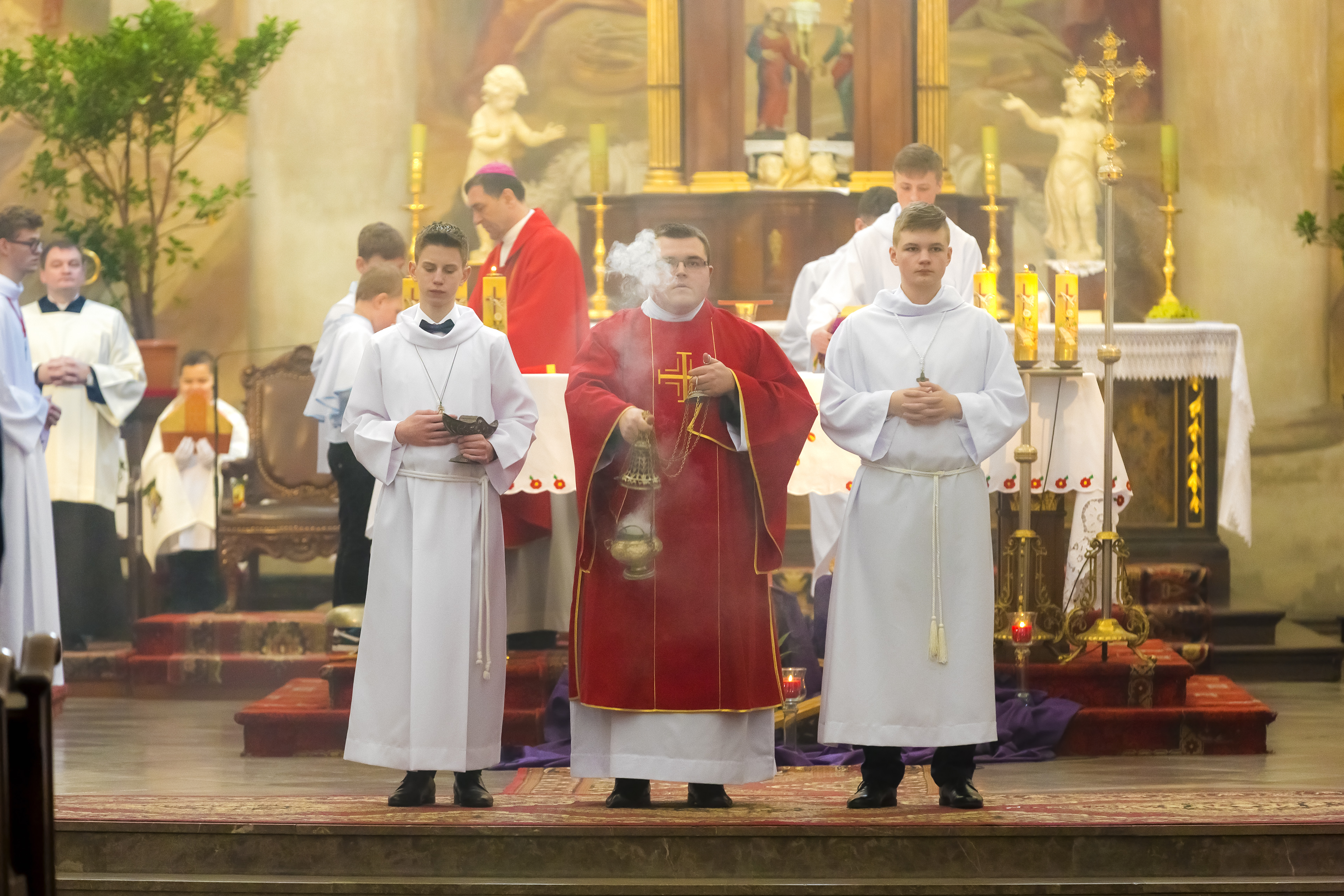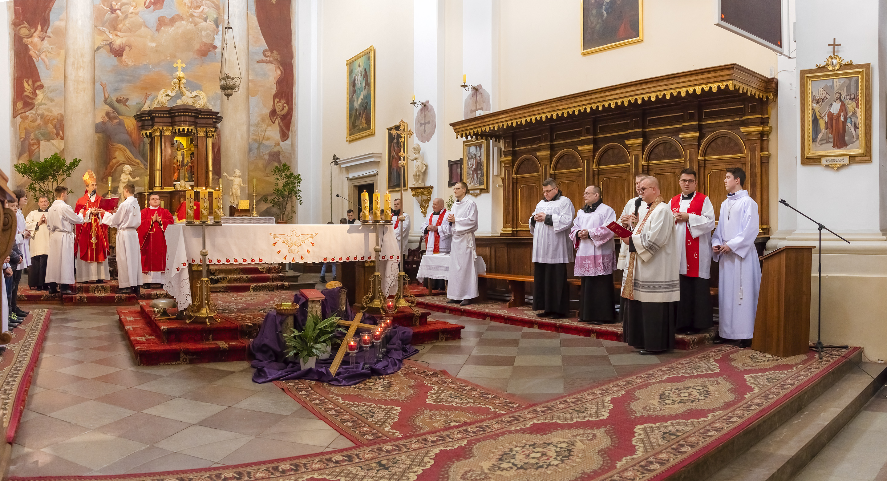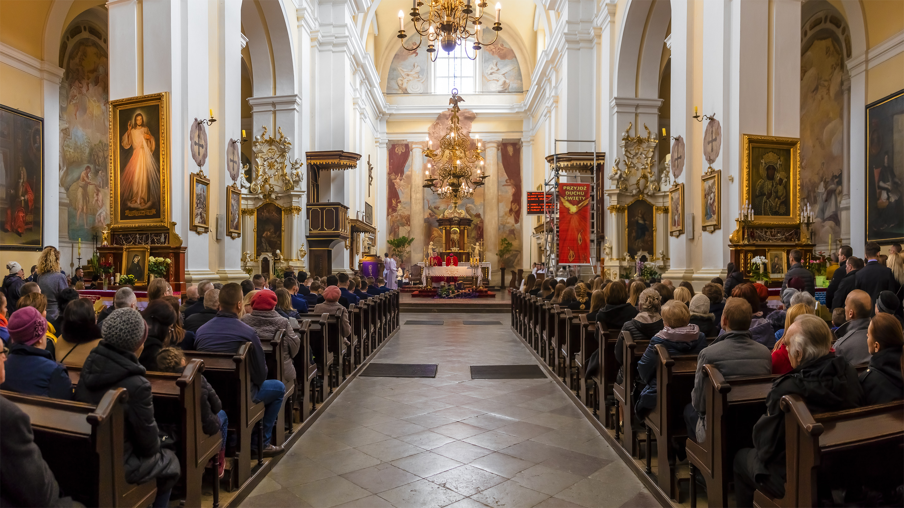 Podczas homilii skierowanej do kandydatów i towarzyszących im rodziców, rodziców chrzestnych oraz świadków, Ksiądz Biskup podkreślił, że mimo rozpoczynającego się okresu Wielkiego Postu, w którym rozważamy sprawy bolesne – Mękę Chrystusa, to jednak sam fakt przyjęcia znamion Ducha Świętego przez młodych ludzi, napawa wielką radością zarówno wspólnotę parafialną, jak i cały Kościół. Pasterz zwrócił uwagę na dwa istotne momenty: Kościół zrodził się na Golgocie, a objawił się światu w dniu Pięćdziesiątnicy. Od Golgoty do Pięćdziesiątnicy jest zatem bardzo blisko. Zesłanie Ducha Świętego nastąpiło jako owoc Męki i Śmierci Pana Jezusa. W opisie zesłania Ducha Świętego użyte są słowa twarde, nie sielankowe – te same, co w starotestamentalnym opisie przekazania Mojżeszowi Dekalogu na Synaju. Ksiądz Biskup przypomniał, że w dniu Pięćdziesiątnicy Żydzi obchodzili Święto Tygodni, czyli Święto odnowienia Prawa. Stroili synagogi na zielono, podobnie ja dziś chrześcijanie stoją swoje kościoły na Zielone Świątki. I to właśnie w tym dniu, kiedy Żydzi wspominali wydarzenia z Synaju, narodził się Kościół. Duch Święty dokonał przemiany w sercach Apostołów, którzy otrzymali nadprzyrodzone dary, o których istnieniu nie mieli nawet pojęcia i o których nawet nie marzyli: odwagę, męstwo – od tego momentu zaczęli głosić Dobrą Nowinę o zbawieniu, które przyszło w Chrystusie. Czynili to z wielkim zapałem, z wielką radością. Duch Święty pomógł im przezwyciężyć dotychczasowy lęk i duchowe zagubienie. Biskup Piotr zauważył, że Bóg bardzo często przychodzi w taką szczelinę, jaka tworzy się między naszym ludzkim lękiem, a zaufaniem, na które się zdobędziemy, na które się wzniesiemy. Jezus zapowiedział uczniom prześladowania, ale to jest mimo wszystko Dobra Nowina, choć mówi o trudnościach, o cierpieniu, o czekającym krzyżu. W Krzyżu jest ratunek, jest zbawienie, a Duch Święty pomaga w to uwierzyć, i właśnie bez lęku, a z zaufaniem to przyjąć. Sakrament Bierzmowania pomaga odnaleźć się w Kościele w czasach, gdy wielu ludzi odwraca się od Niego. Zamknięcie się na Ducha Świętego prowadzi do utraty wiary oraz spojrzenia przez jej pryzmat na Kościół. Dlatego też to Duch Święty daje mądrość nadprzyrodzoną, oświeca umysły, wyprowadza z różnorakich lęków i obaw. Wszystko to ku dojrzałości, świadomości i radości bycia uczniem Jezusa Chrystusa.