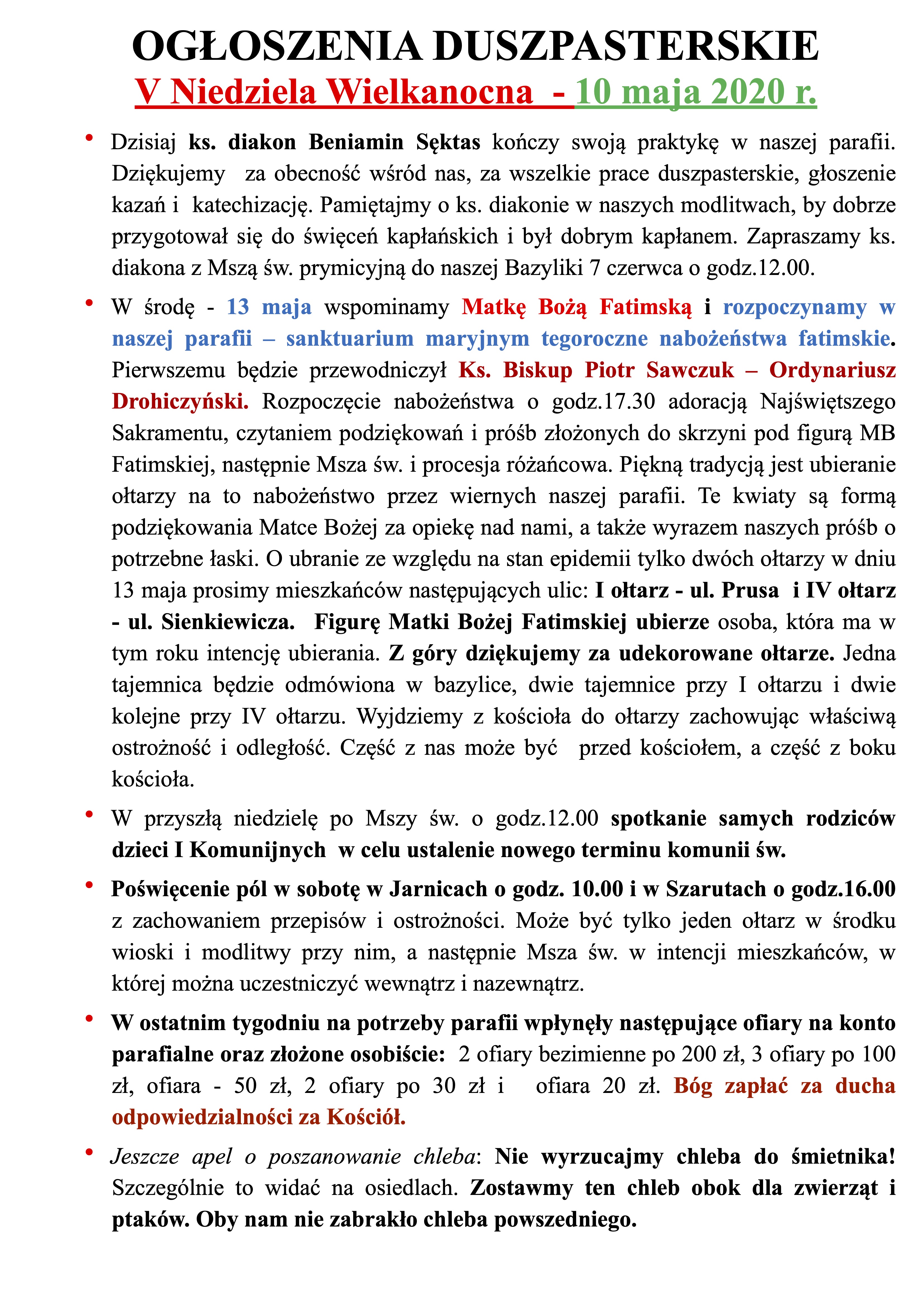 V Niedziela Wielkanocna – 10 maja 2020 r.