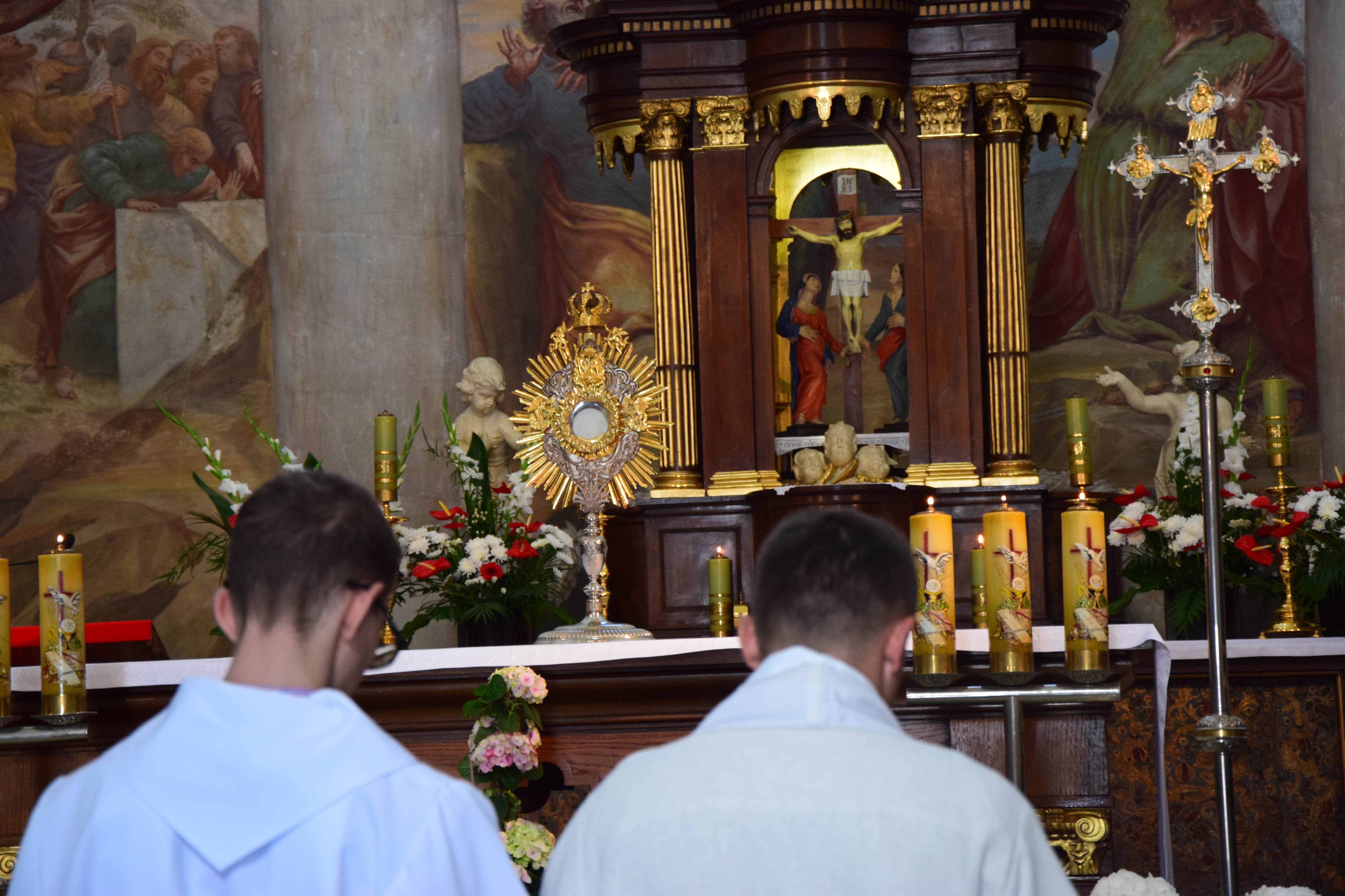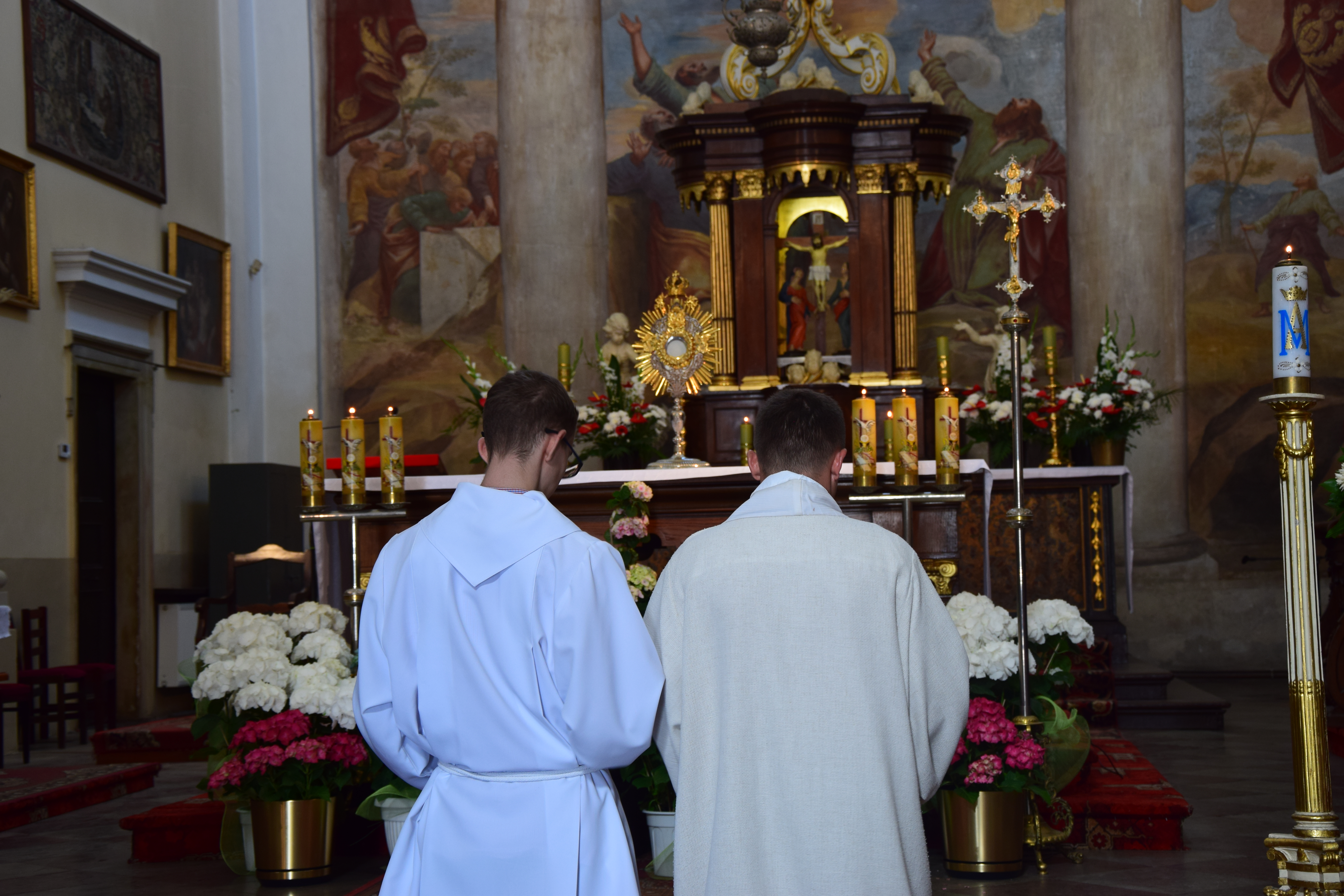Tradycyjnie już o 17:30 w Bazylice Węgrowskiej rozpoczęła się Adoracja Najświętszego Sakramentu, którą poprowadził ks. Wojciech Wysocki, wikariusz miejscowy. Podczas modlitw czytano kartki z prośbami i podziękowaniami przez wstawiennictwo Najświętszej Maryi Panny Fatimskiej, złożone przez parafian do specjalnej skrzyni z intencjami, znajdującej się w cokole pod figurą. Tuż przed błogosławieństwem monstrancją, ks. Wojciech odczytał Litanię do Serca Pana Jezusa, jako przebłaganie za grzechy ludzi i całego świata.