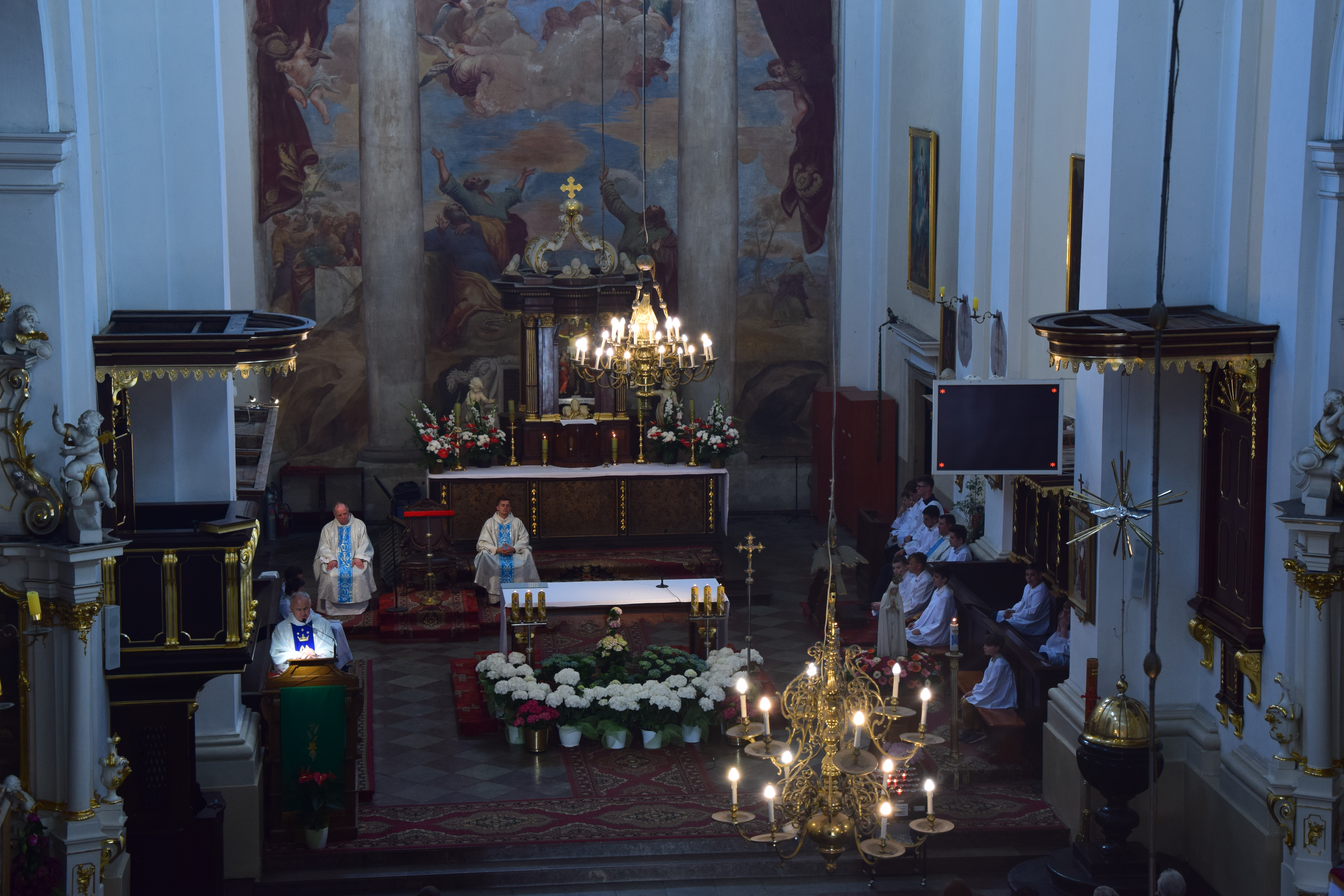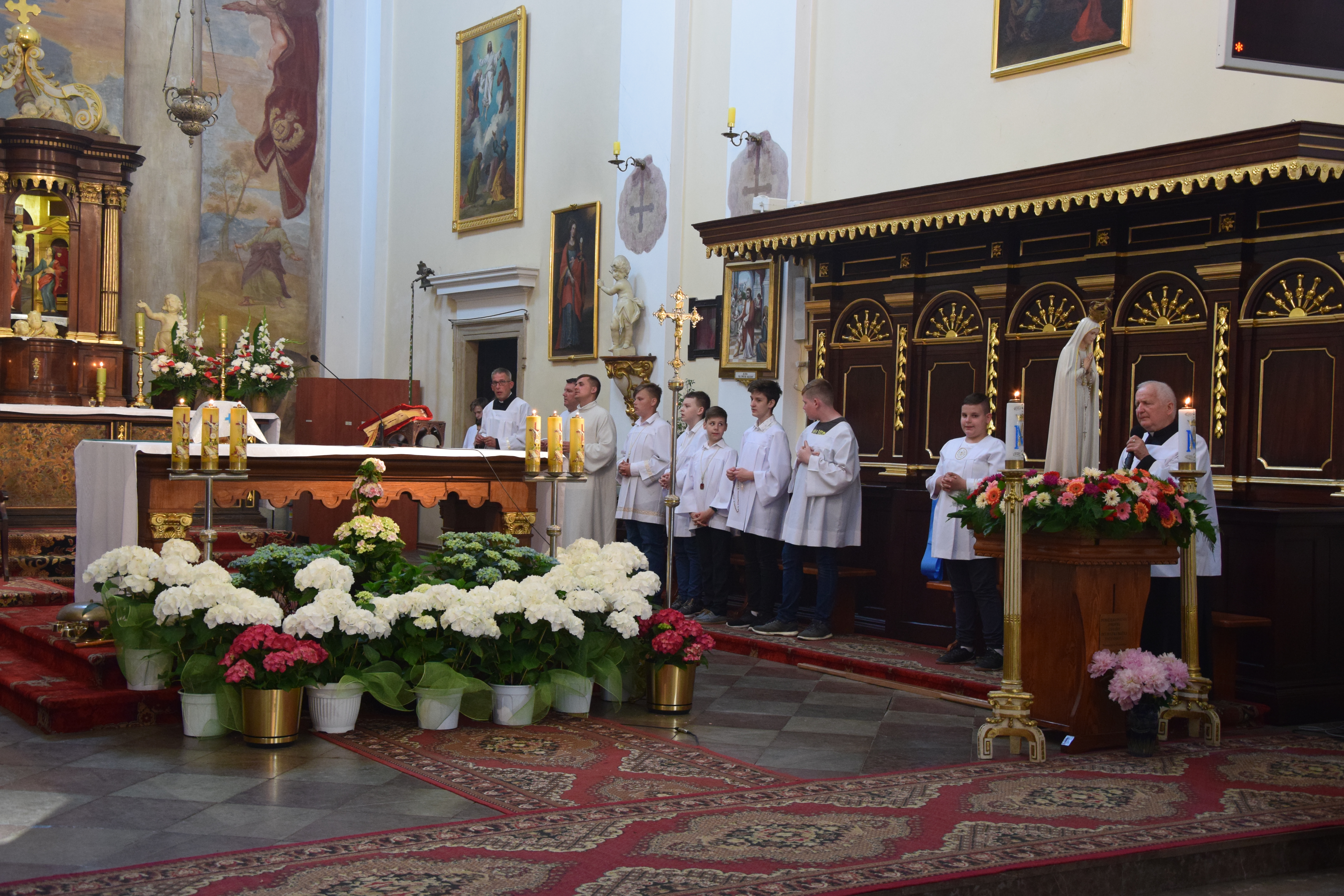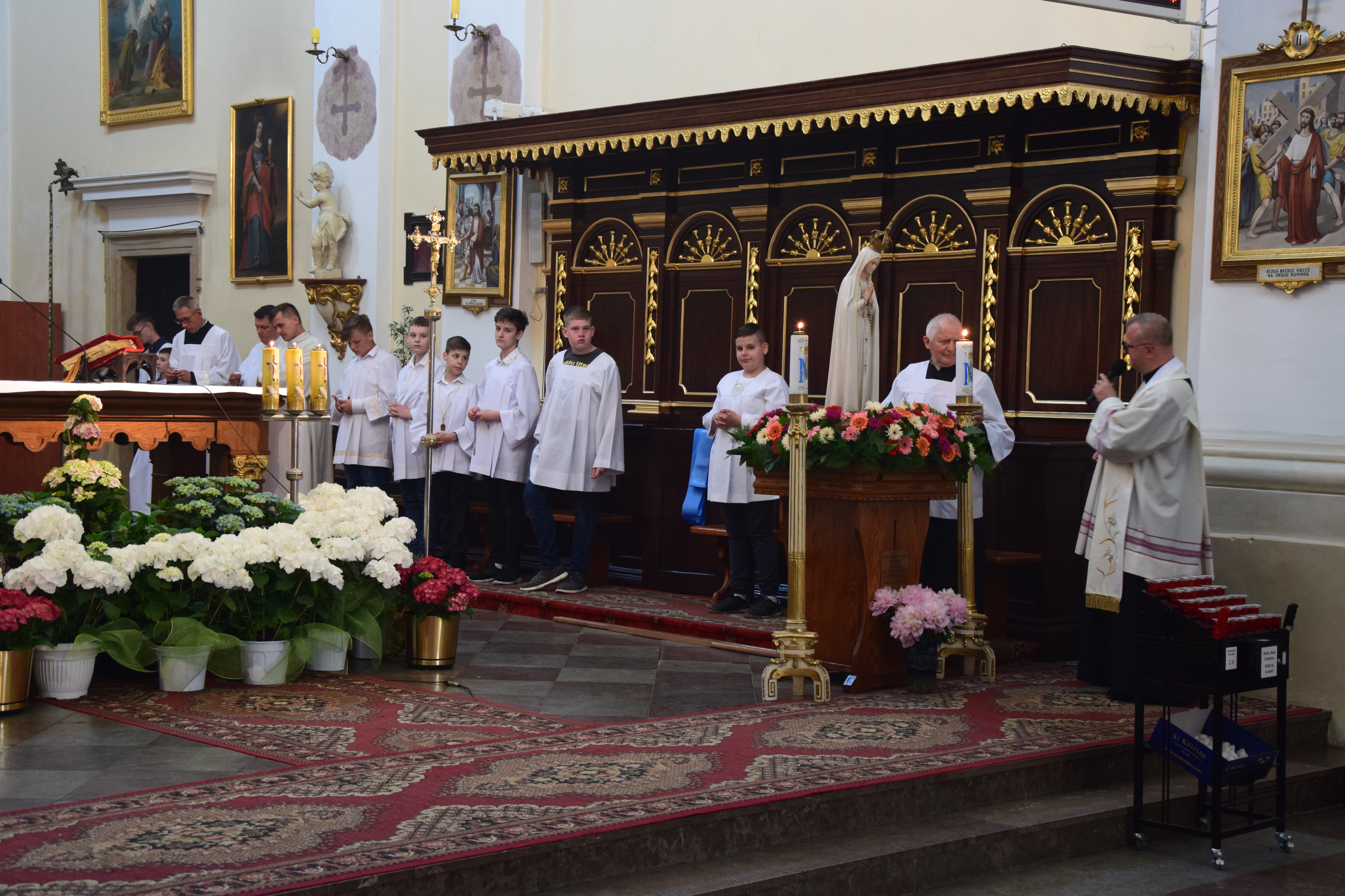 Punktualnie o godz. 18:00 rozpoczęła się Eucharystia w pełnej asyście liturgicznej. Oprawę muzyczną Mszy św. przygotował chór parafialny. Podczas homilii, ks. prał. Jerzy Zając, główny celebrans, przybliżył wiele historii, mówiących o Objawieniach Maryjnych nie tylko w Fatimie czy Lourdes, ale i na całym świecie. Bogate w treści kazanie poparł licznymi dokumentami, zatwierdzonymi przez Stolicę Apostolską, które dowiodły autentyczności bliskich spotkań Matki Bożej z pobożnymi świadkami, zanurzonymi w modlitwie różańcowej.