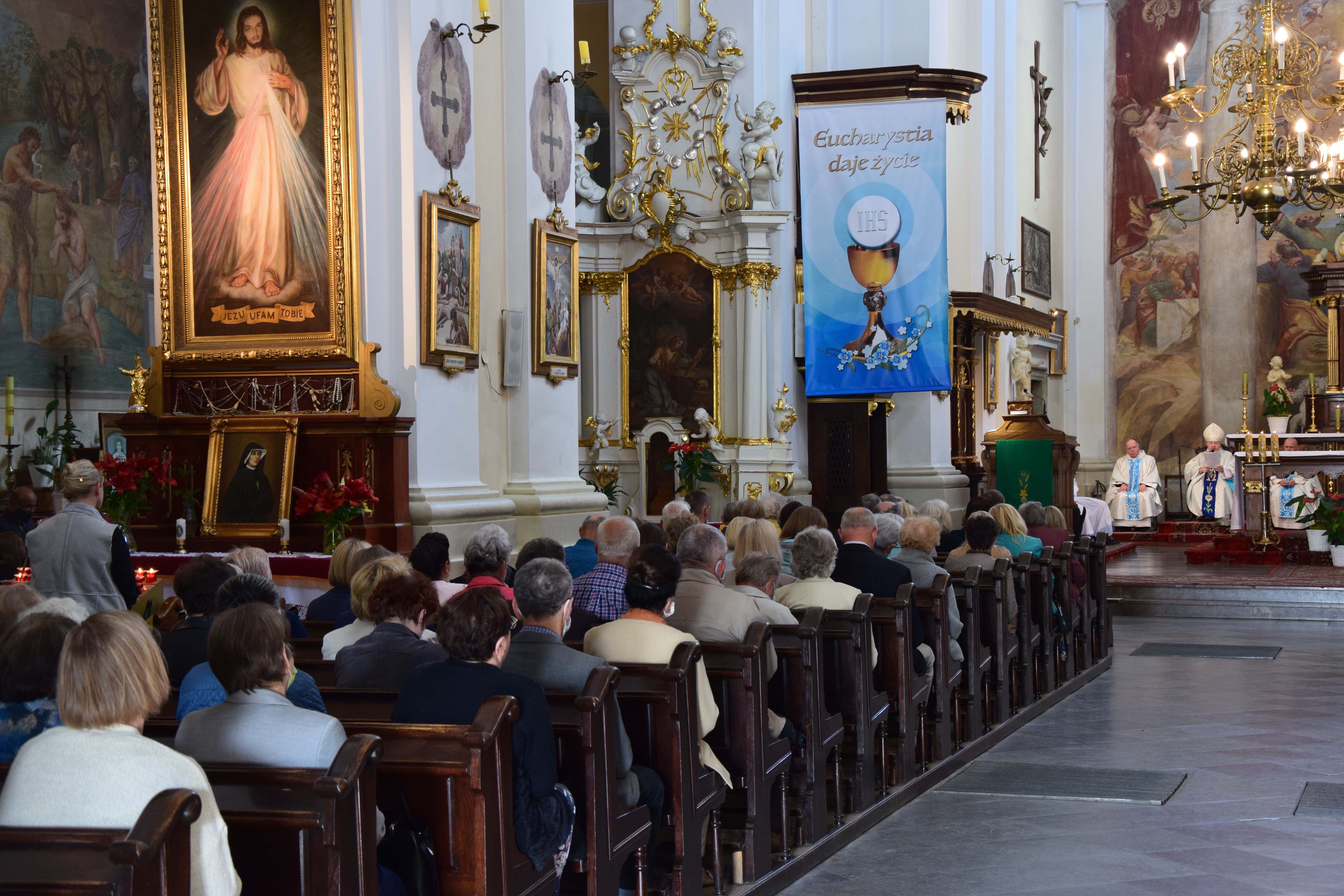 Tradycyjnie już od godz. 17:30 trwała adoracja Najświętszego Sakramentu, podczas której czytano prośby i podziękowania spisane na kartkach złożonych w skrzyni z intencjami. Te wszystkie ważne sprawy, bliskie sercu każdego z przybyłych do Bazyliki węgrowskiej złożono u stóp Jezusa Eucharystycznego przez orędownictwo Matki Bożej.