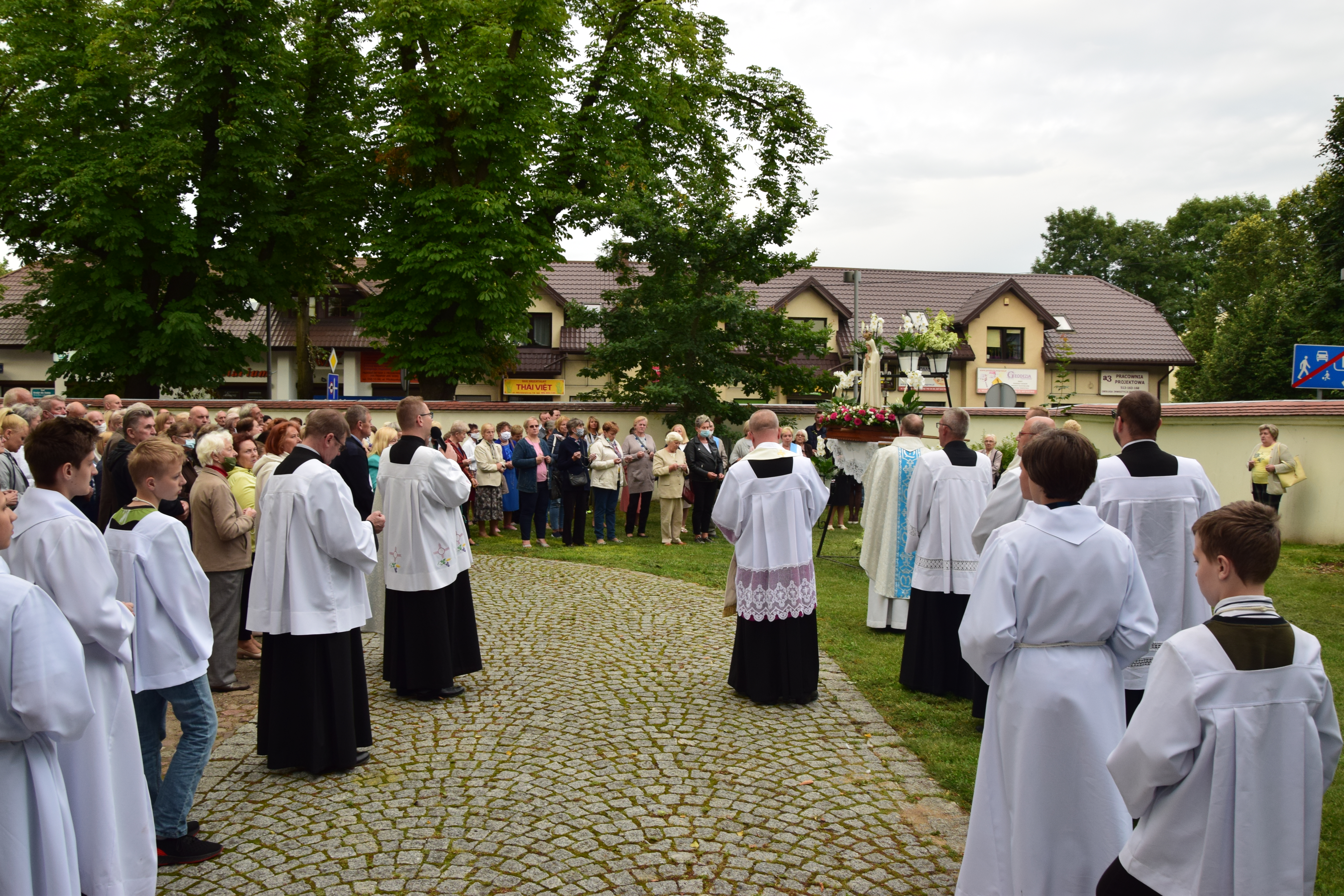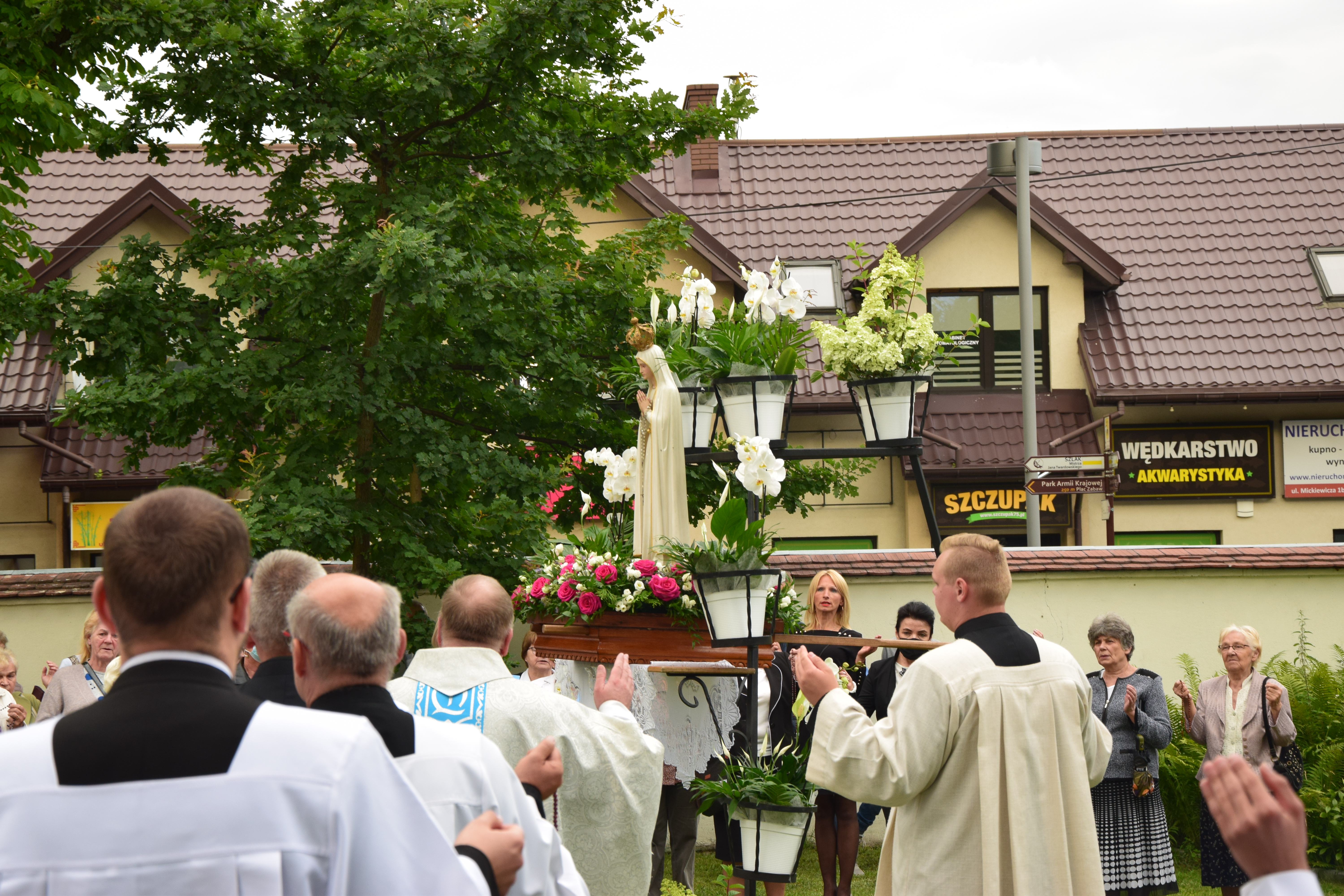 Po skończonej Eucharystii miała miejsce procesja różańcowa do czterech ołtarzy, ustawionych na placu wokół świątyni. Figurę Matki Bożej Fatimskiej nieśli mieszkańcy ulic: