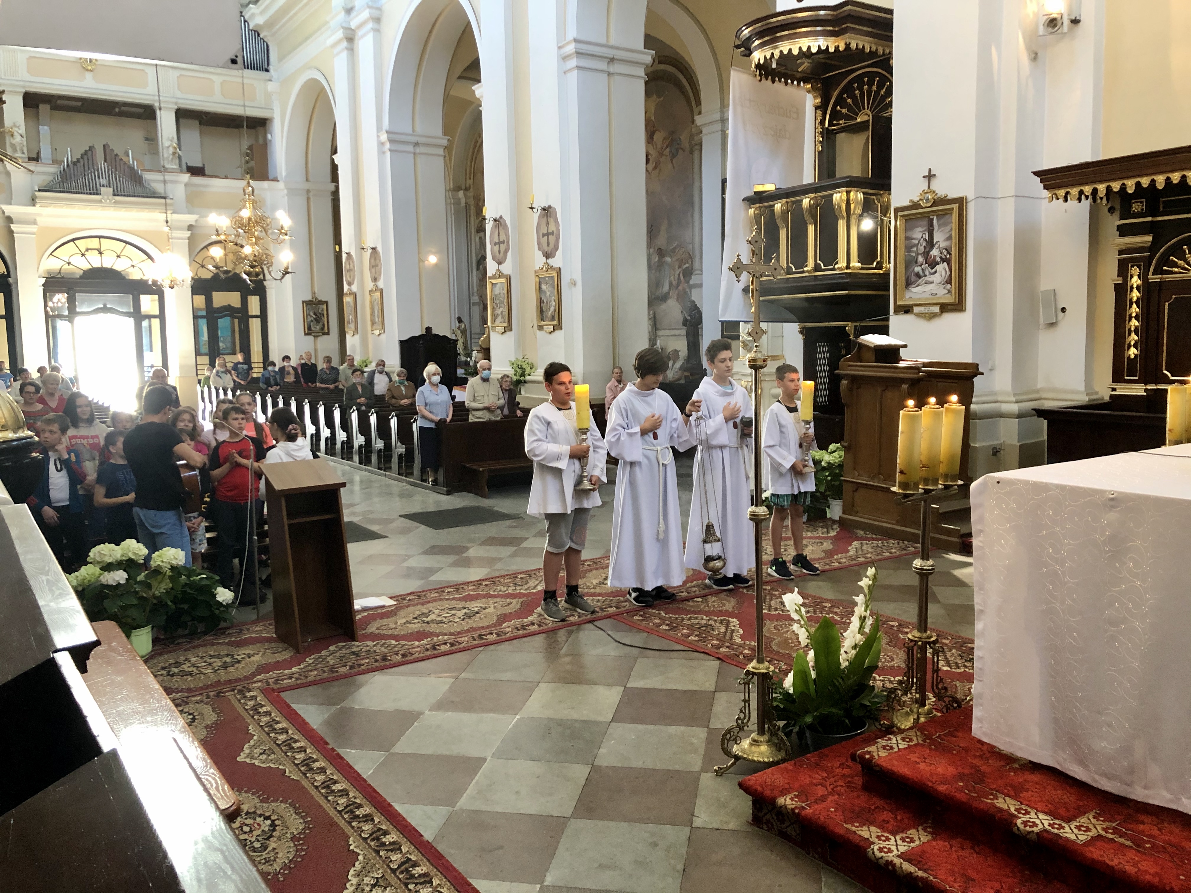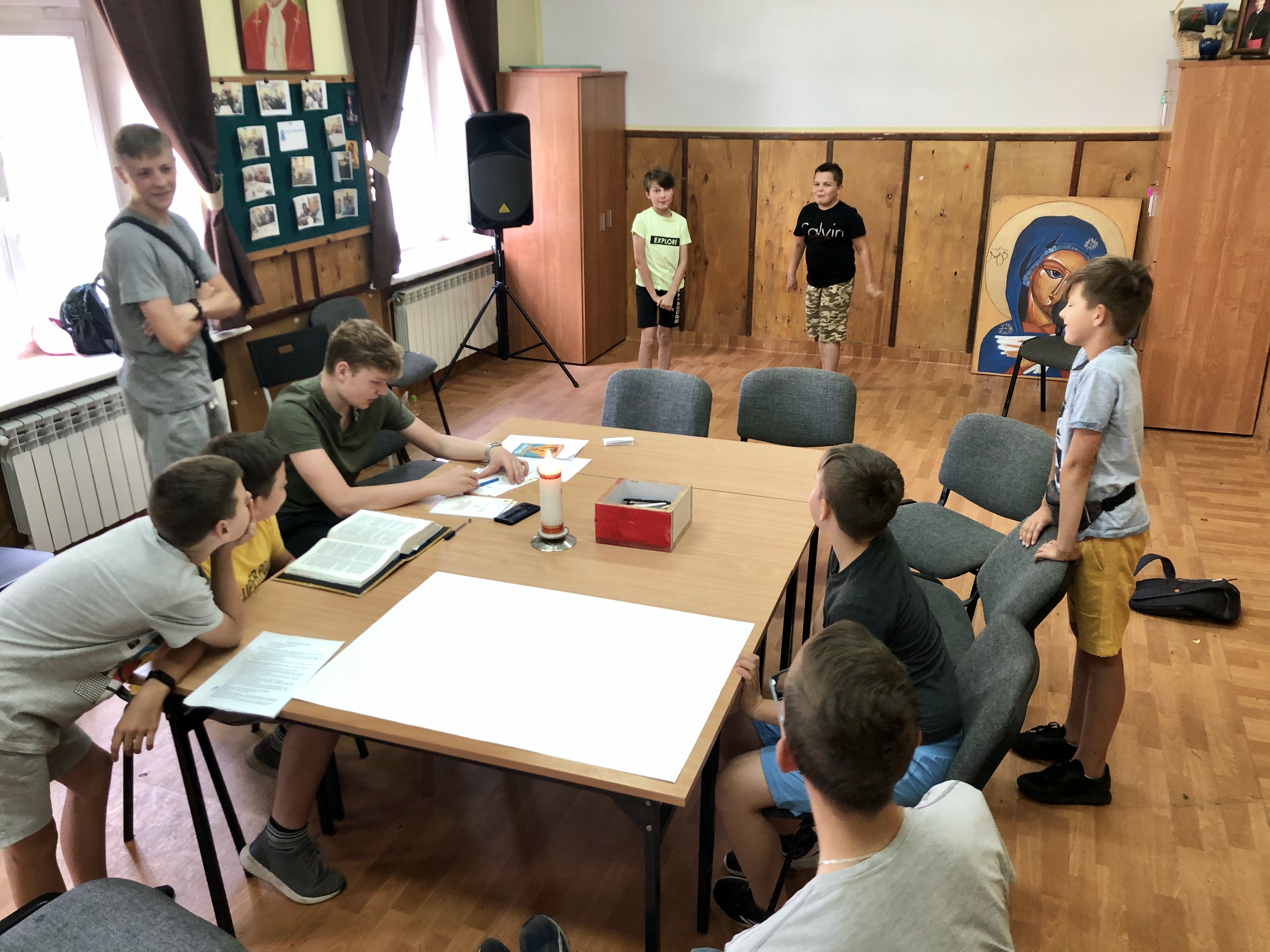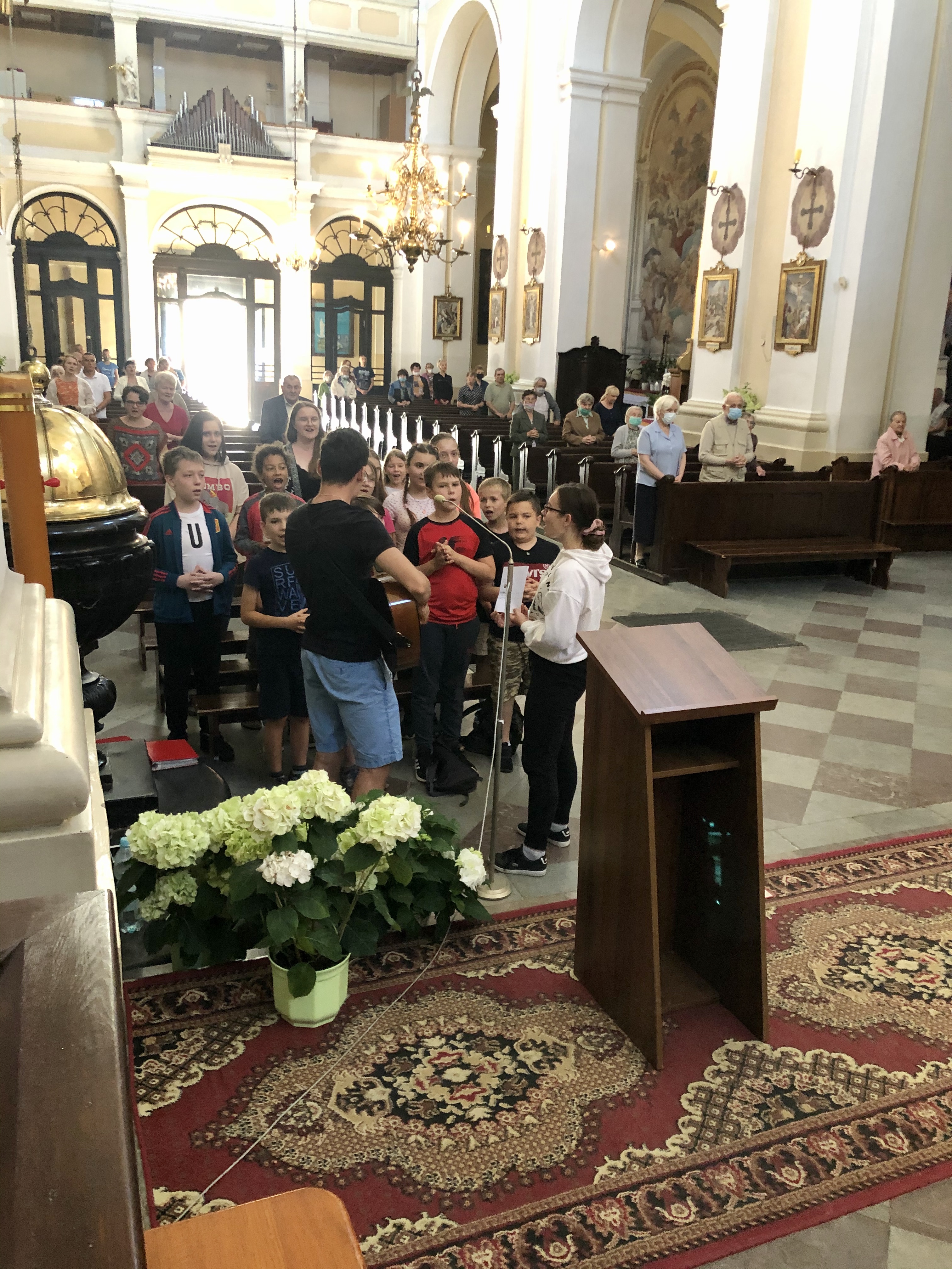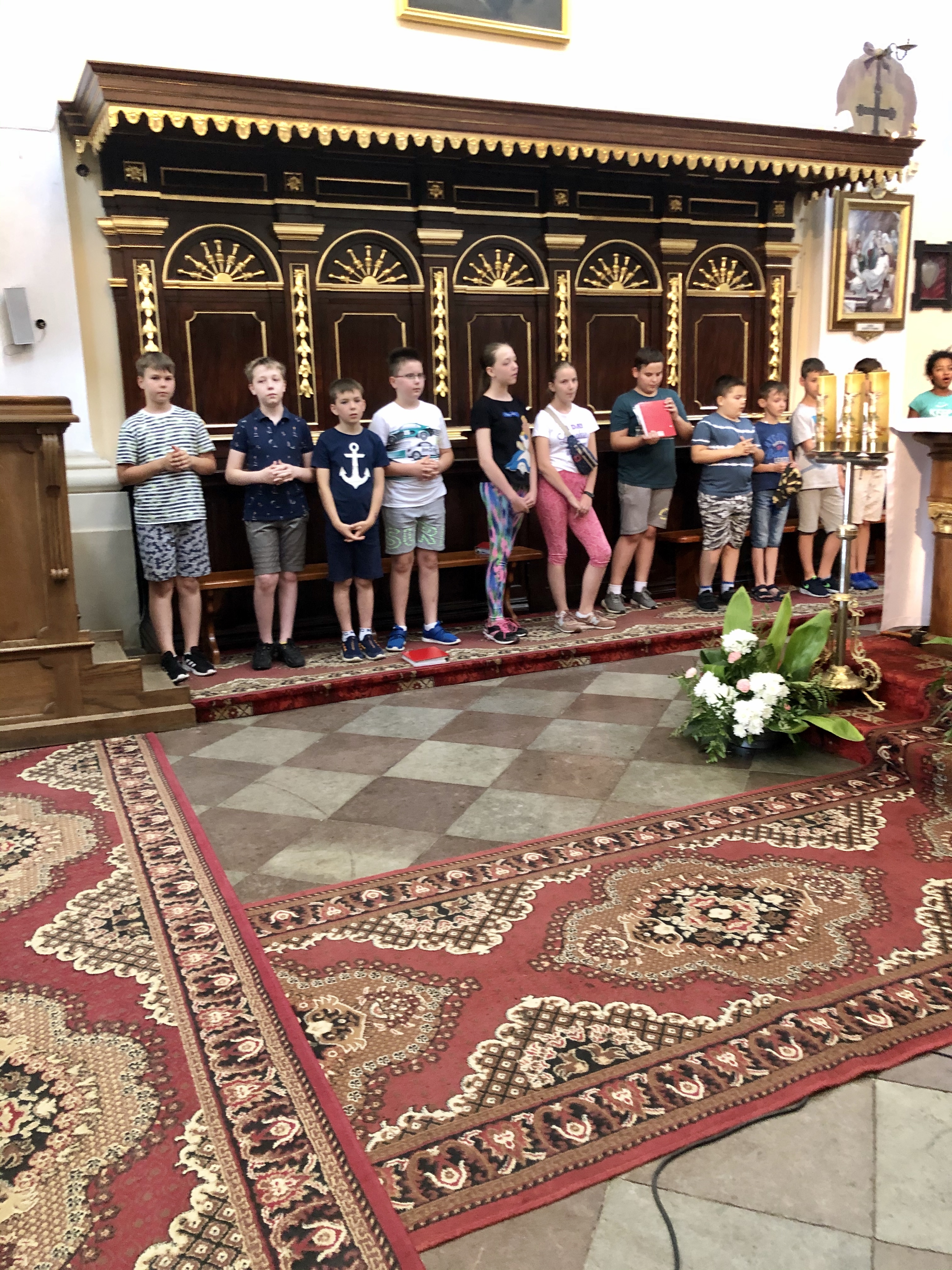 W dniach od 20-ego do 25-go lipca 2020 r. (poniedziałek-sobota) w naszej parafii miały miejsce rekolekcje oazowe, zorganizowane w ramach tzw. półkolonii ‚z Bogiem’. Blisko 30 osób wraz z opiekunami i animatorami wzięło udział w codziennych zajęciach edukacyjno-rekreacyjnych. W ramach kilkugodzinnych spotkań dzieci i młodzież miały okazję rozwijać swą sprawność intelektualną oraz fizyczną, poprzez czynne uczestnictwo w różnego rodzaju grach zręcznościowo-pamięciowych i zabawach szkolno-wychowawczych. Nie zabrakło również formacji duchowej w formie specjalnie przygotowanych katechez. Każdy dzień przyparafialnych rekolekcji oazowych kończyła Msza św. o godz 18:00. Podczas Eucharystii sprawowanej w Bazylice Węgrowskiej, dzieci i młodzież ochoczo włączały się w liturgię poprzez odpowiednie przygotowanie śpiewów oraz asysty przy ołtarzu. Jak to zwykle bywa na tego typu półkoloniach, znalazło się i co nieco dla ciała; pizza i słodkie napoje niejednemu dodawały sił i energii do rywalizacji w prowadzonych przez animatorów zawodach i konkursach.
