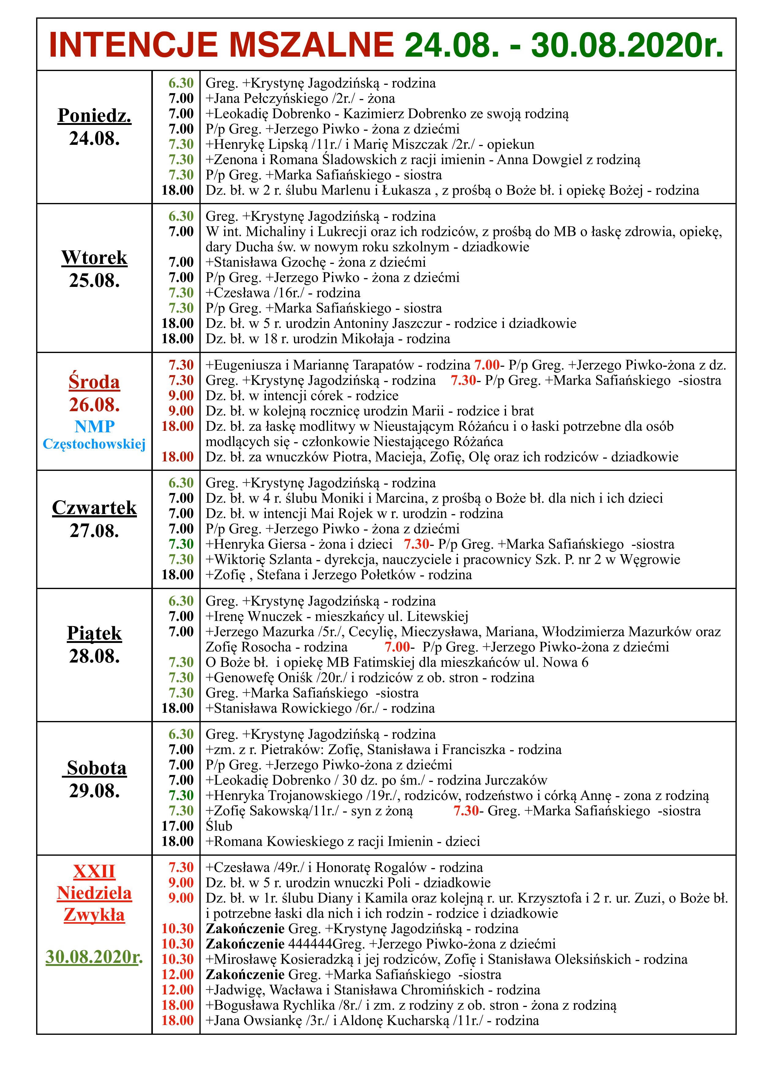 XXII NIEDZIELA ZWYKŁA – 30 sierpnia 2020 r.