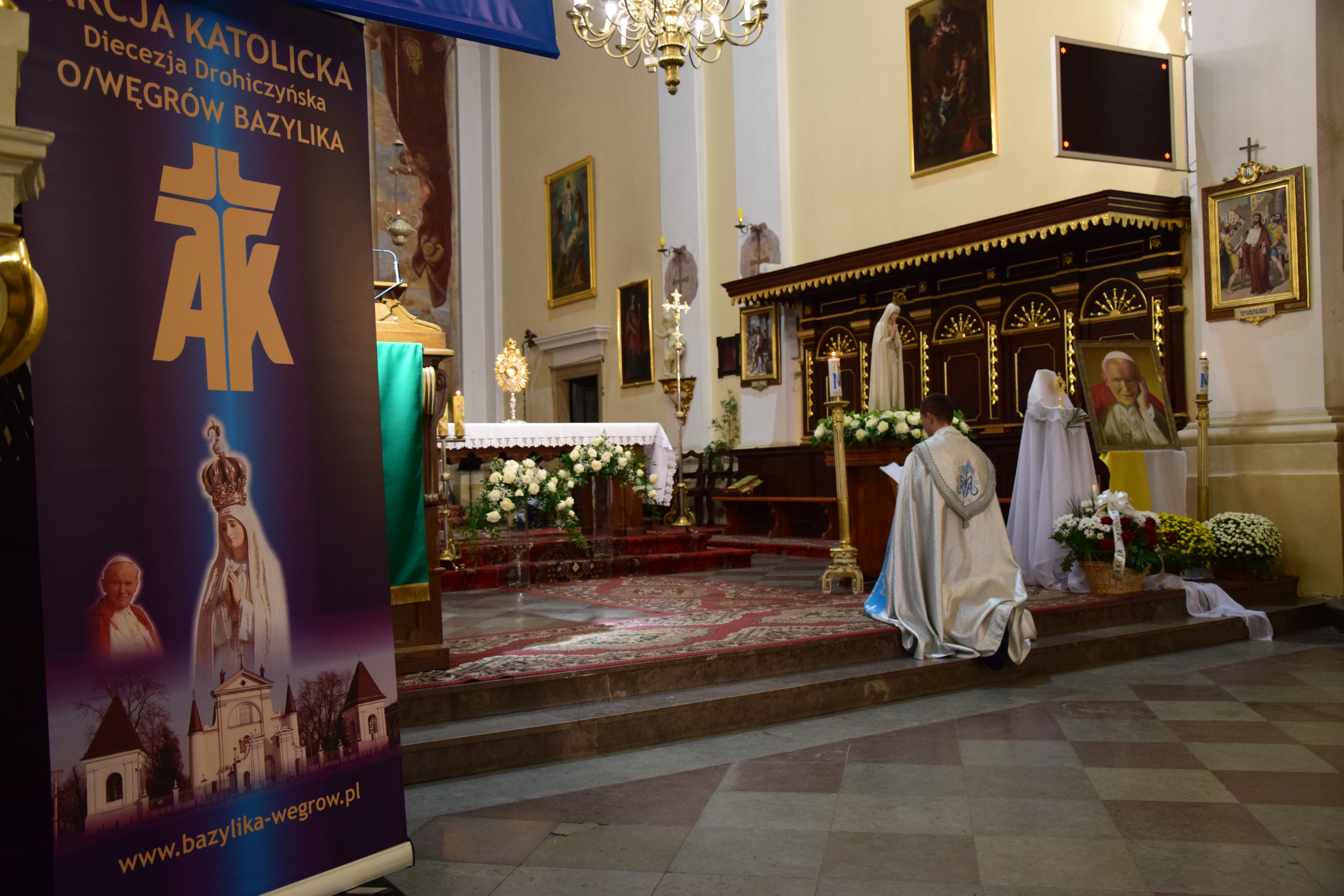 Na zakończenie ostatniego w tym roku nabożeństwa fatimskiego słowa wdzięczności i uznania wygłosił ks. prał. Leszek Gardziński, proboszcz miejscowy. Podziękował głównemu celebransowi, a więc J.E. ks. biskupowi dr hab. Tadeuszowi Pikusowi, biskupowi seniorowi diecezji drohiczyńskiej, za to, że każdorazowo z wielką ochotą przyjmuje zaproszenie do Węgrowa i niezwykle ciepło wypowiada się o węgrowskich parafianach.
