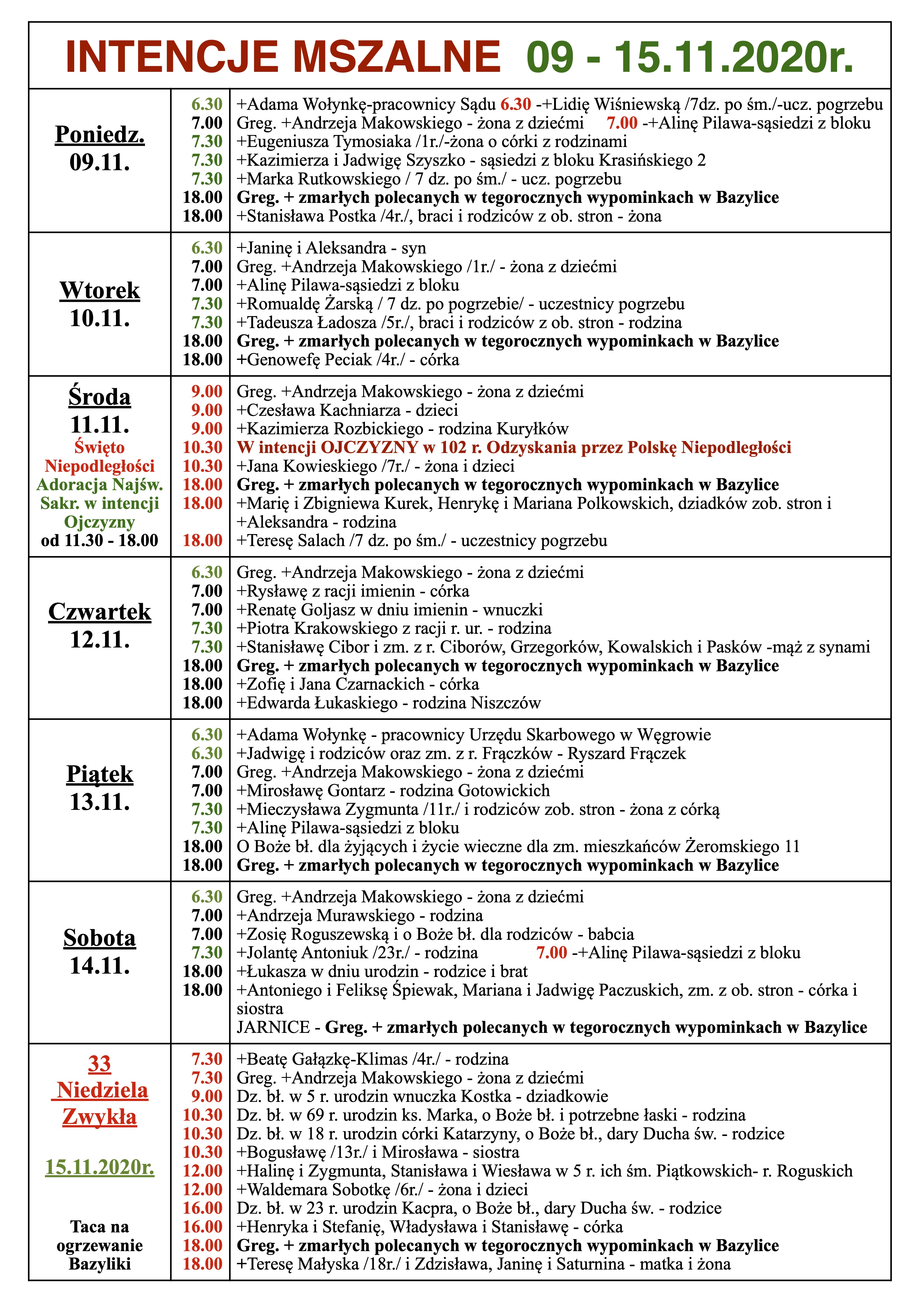 INTENCJE MSZALNE 09 – 15.11.2020r.