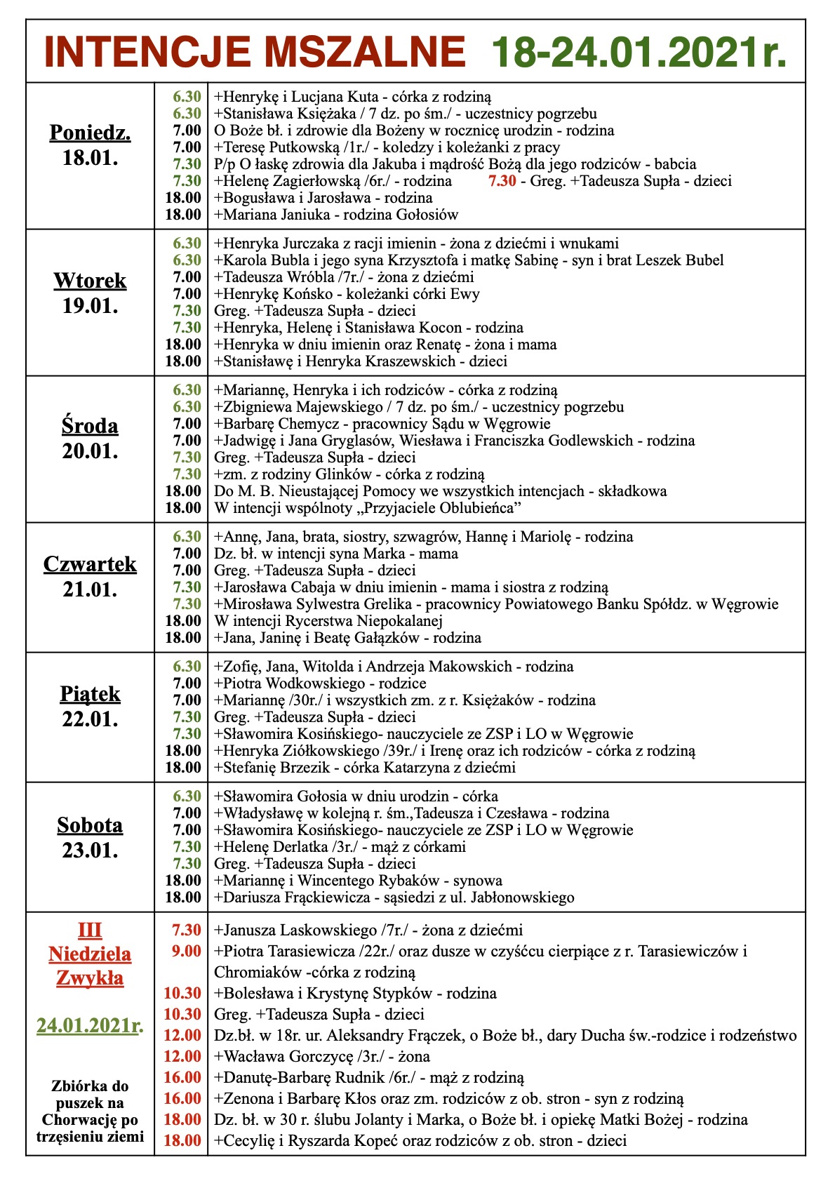 INTENCJE MSZALNE 18-24.01.2021r.