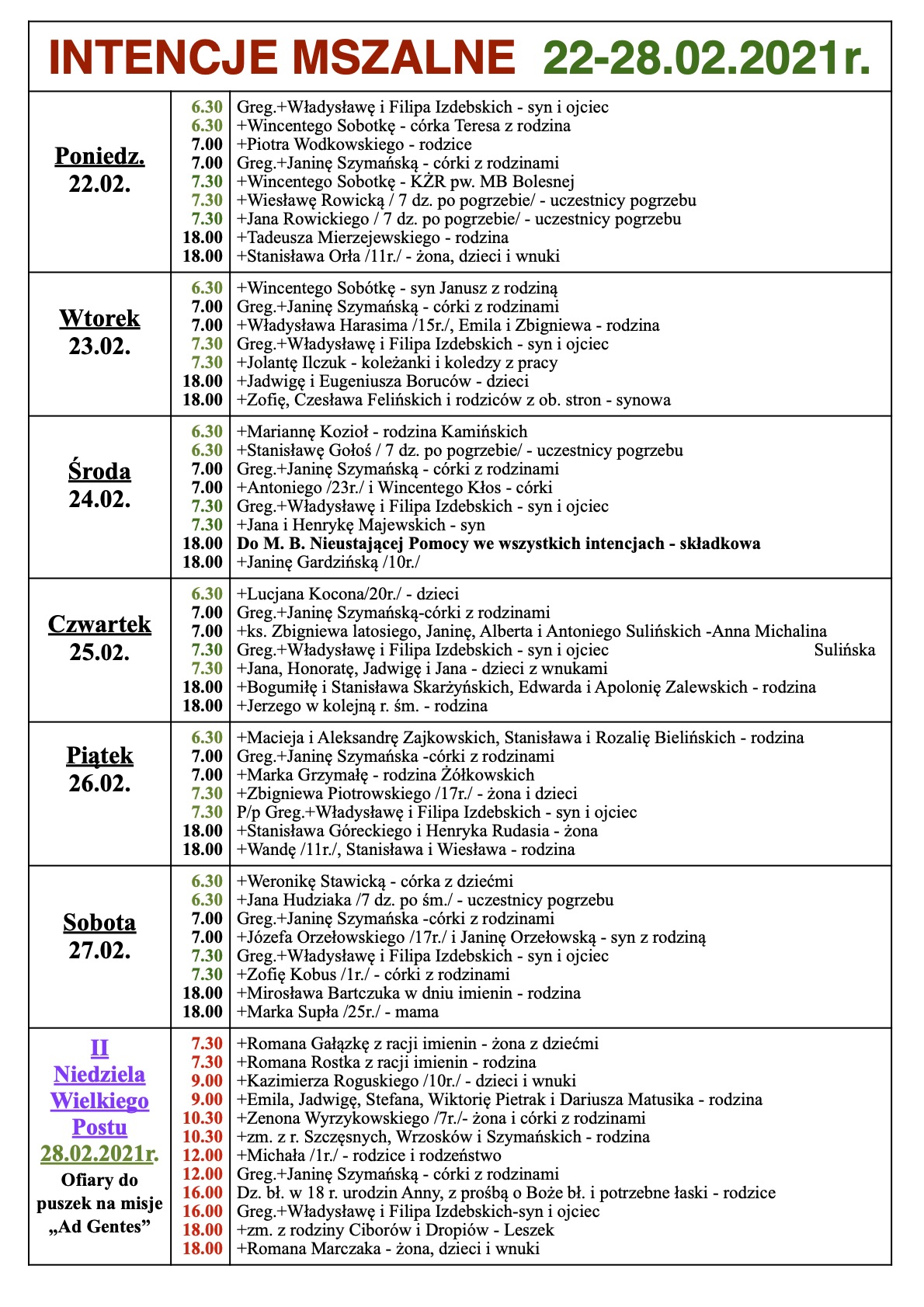 Ogłoszenia duszpasterskie – I Niedziela Wielkiego Postu – 21 lutego 2021 r.