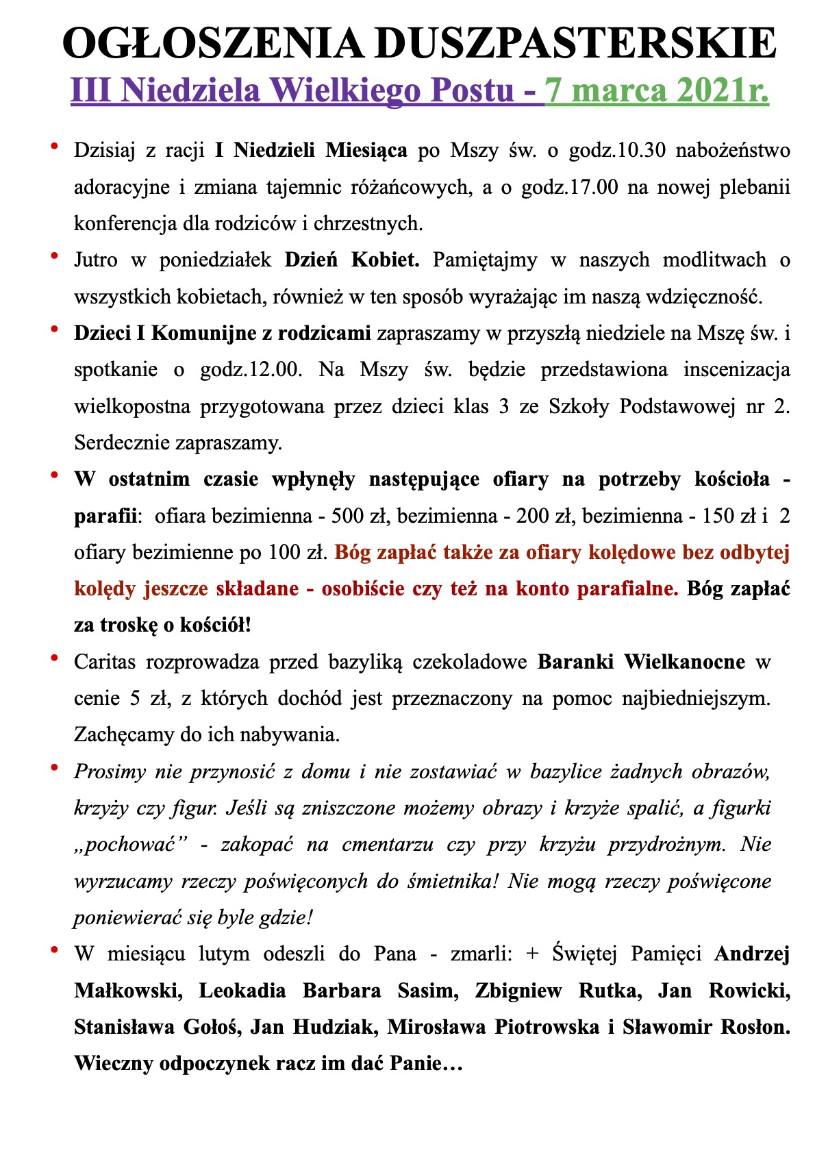 INTENCJE MSZALNE 08-14.03.2021r.