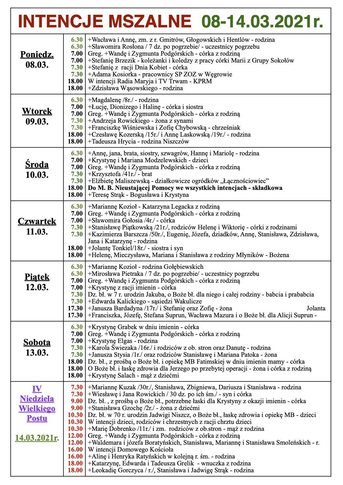 INTENCJE MSZALNE 08-14.03.2021r.