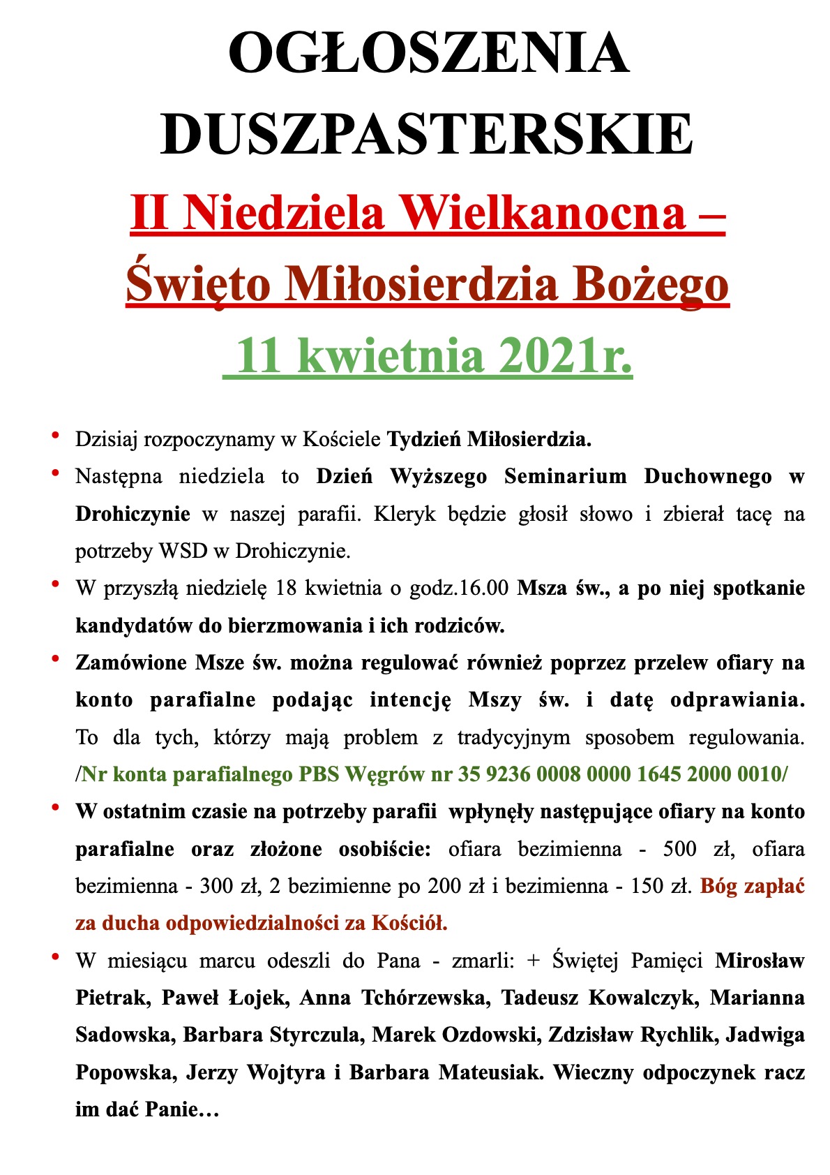 II Niedziela Wielkanocna – Święto Miłosierdzia Bożego 11 kwietnia 2021r. przez Ks. Proboszcz / 5 lat temu