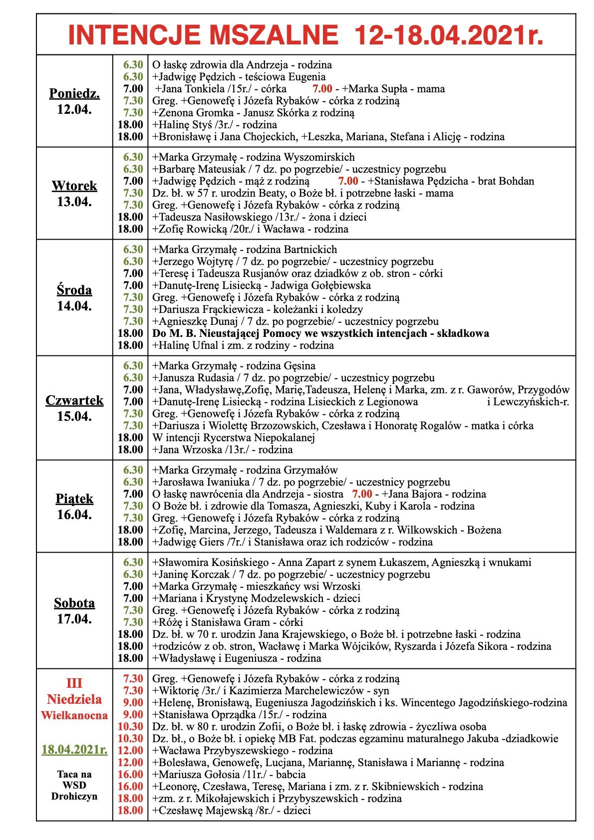 II Niedziela Wielkanocna – Święto Miłosierdzia Bożego 11 kwietnia 2021r.