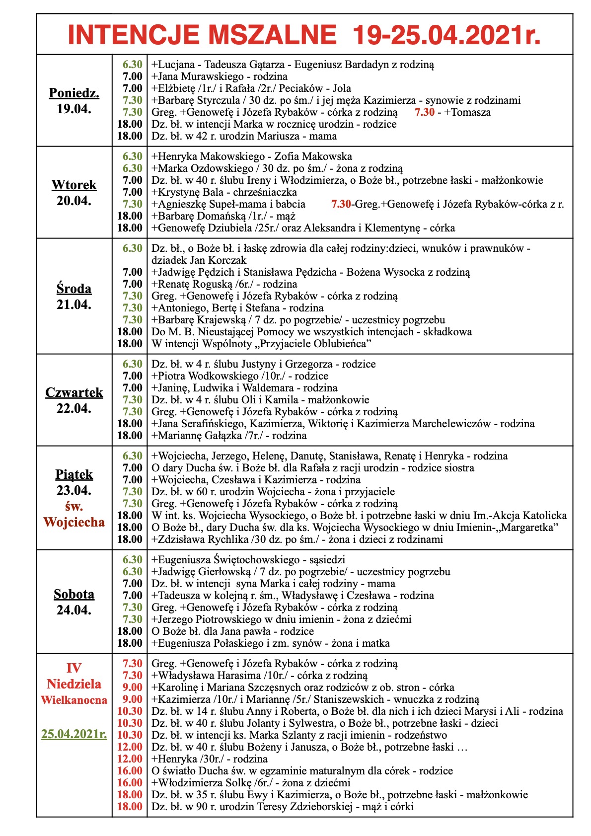 II Niedziela Wielkanocna – Święto Miłosierdzia Bożego 11 kwietnia 2021r.