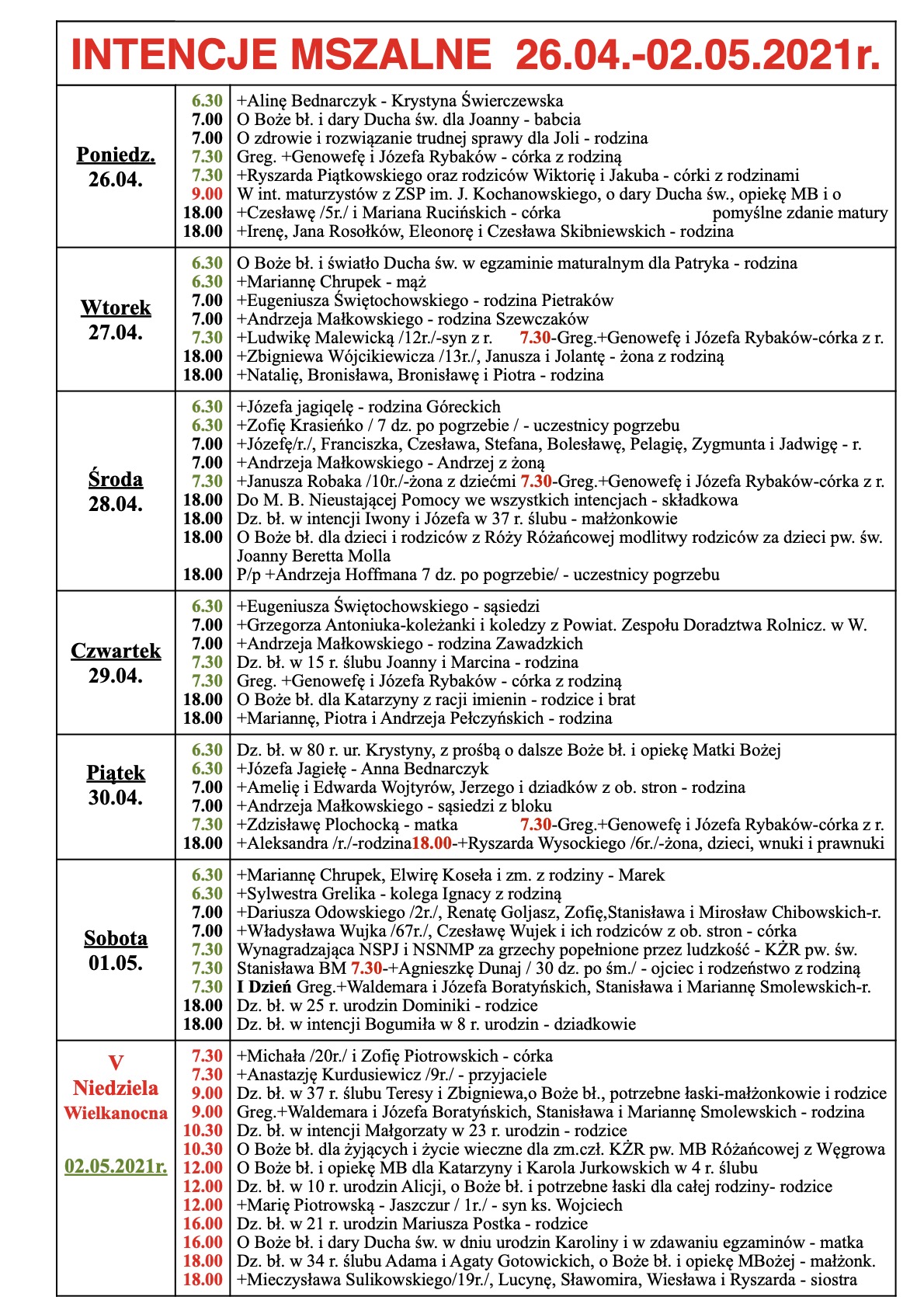 INTENCJE MSZALNE 26.04.-02.05.2021r.