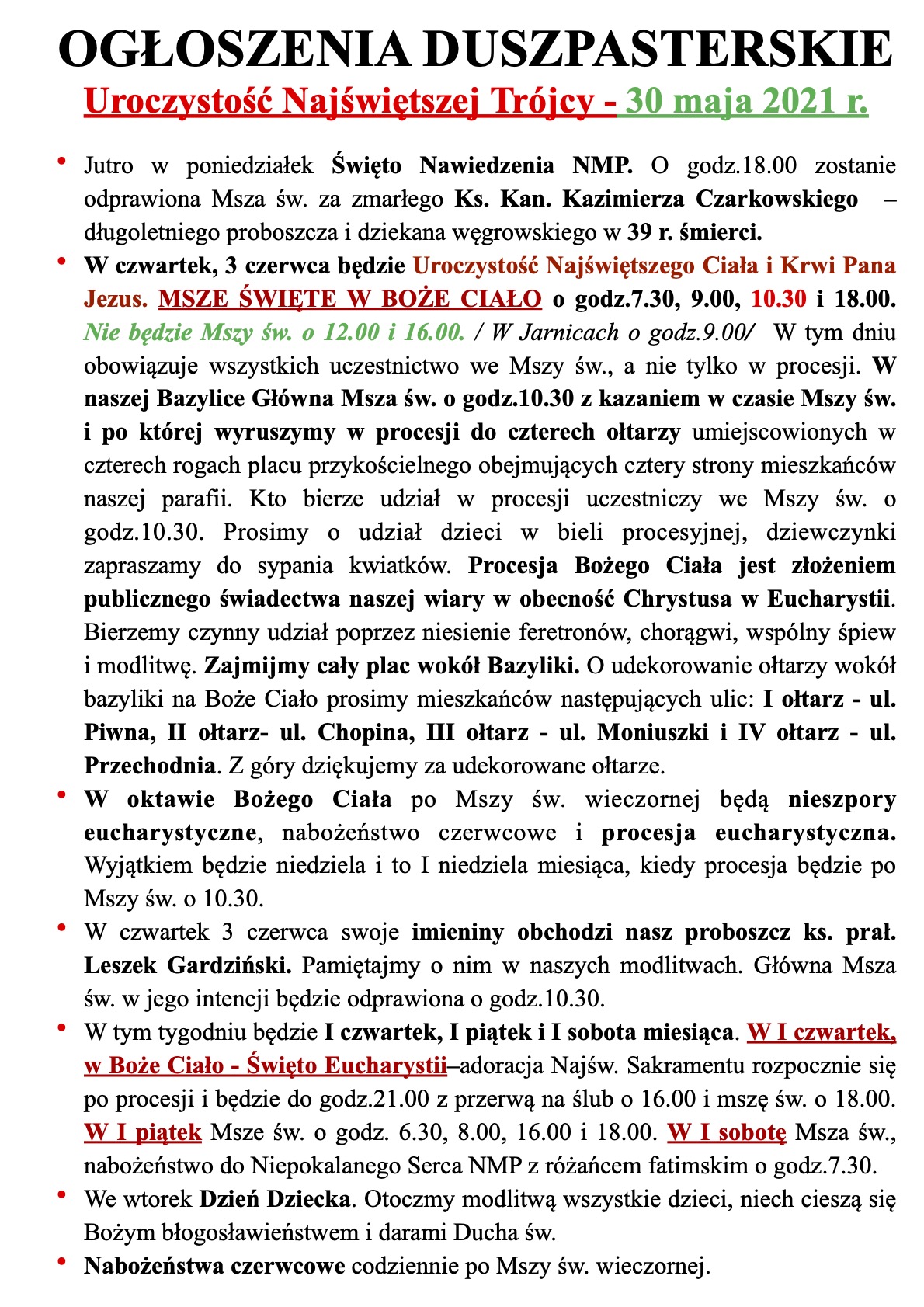 INTENCJE MSZALNE 31.05.-06.06.2021r.