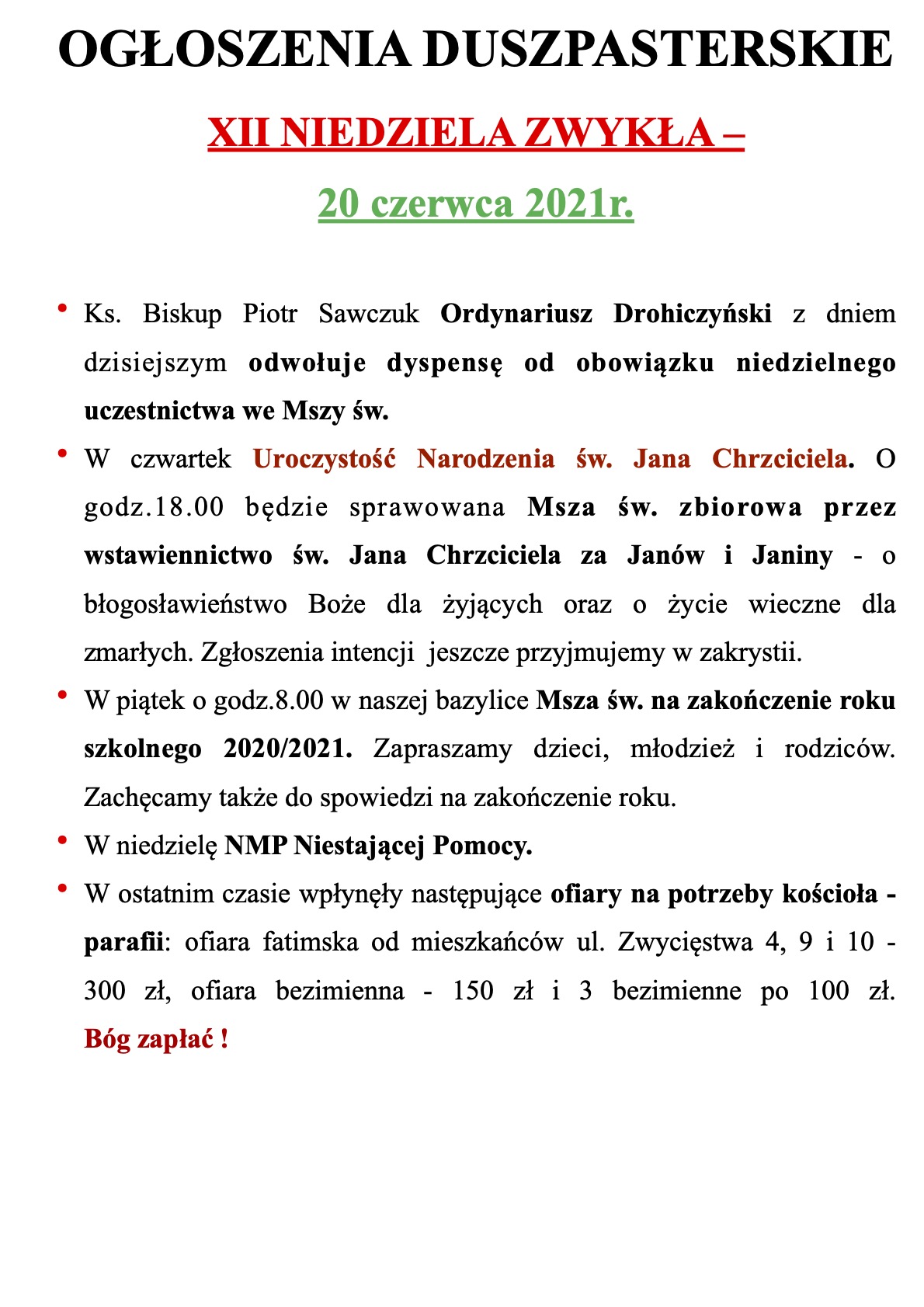 • Ogłoszenia parafialne