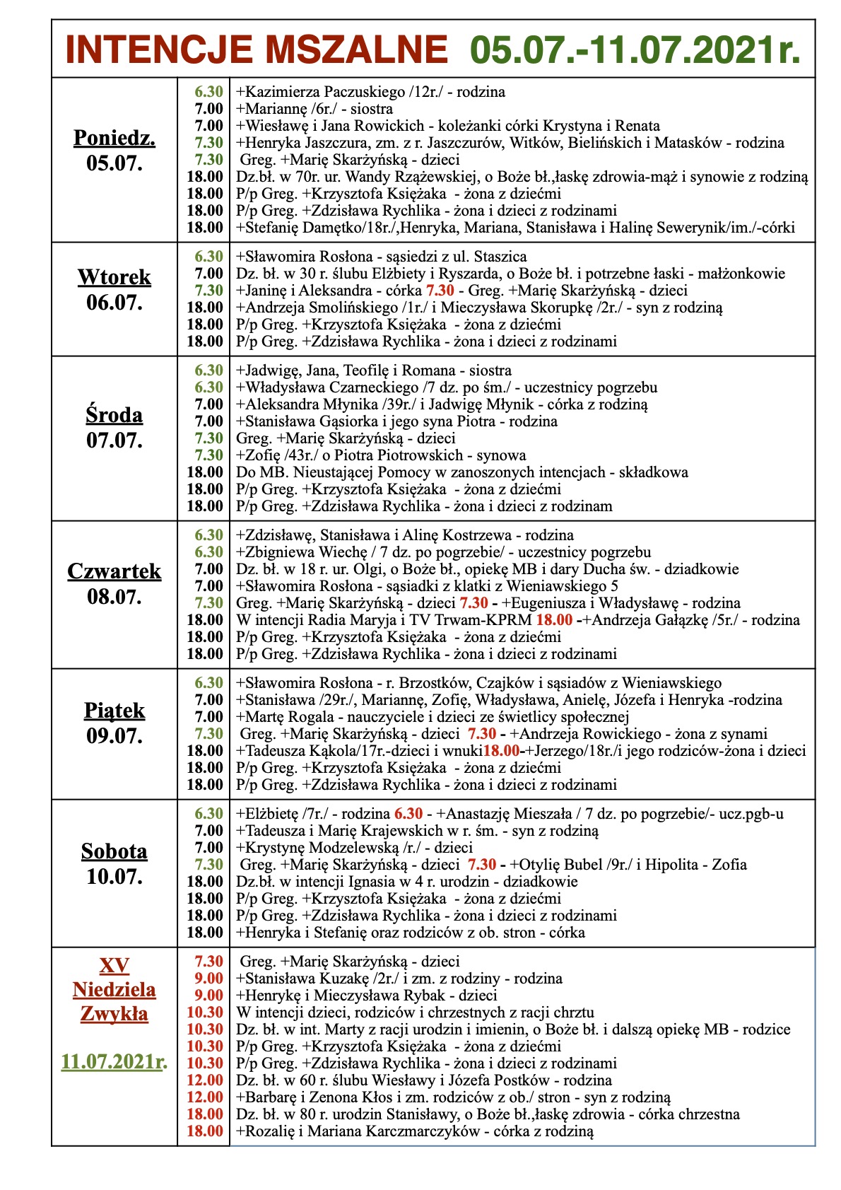 INTENCJE MSZALNE 05.07.-11.07.2021r.