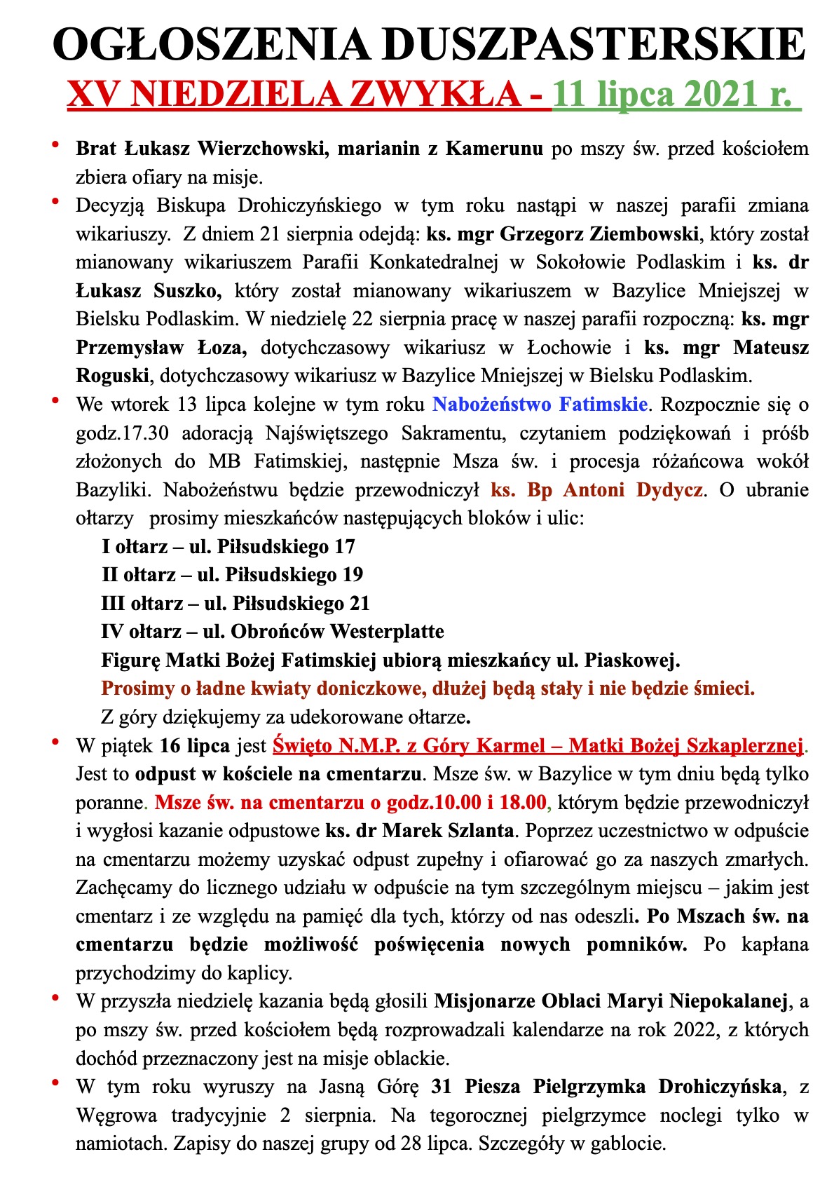 INTENCJE MSZALNE 12.07.-18.07.2021r.