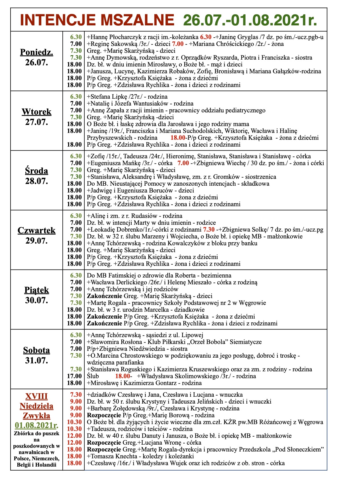 INTENCJE MSZALNE 26.07.-01.08.2021r.
