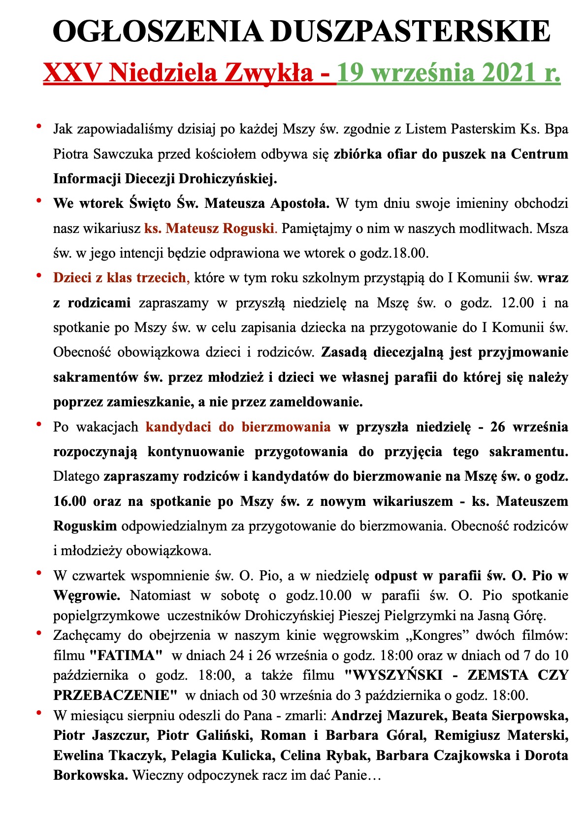 • Ogłoszenia parafialne