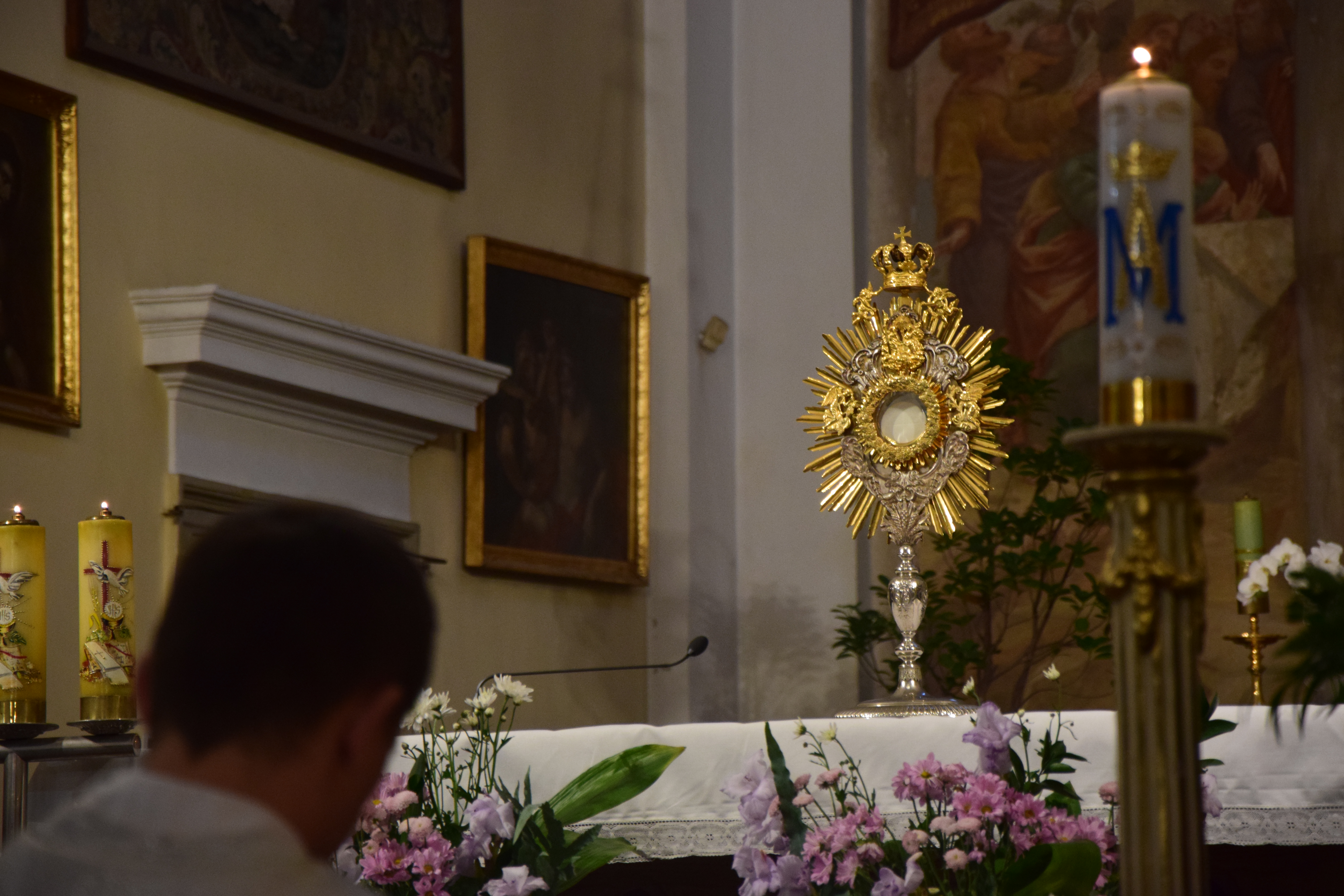 Podczas Adoracji Najświętszego Sakramentu, któremu przewodniczył ks. Wojciech Wysocki, wikariusz miejscowy, odczytywano kartki z prośbami i podziękowaniami za wstawiennictwem Matki Bożej. Ów błagania kierowane do Boga Ojca i Jego Syna, Jezusa Chrystusa, to swoiste listy do nieba, sporządzane przez każdego, kto chce poprzez modlitwę wyjednać potrzebne łaski oraz obfite błogosławieństwo dla siebie i swoich bliskich. Adoracja Najświętszego Sakramentu rozpoczęła również nowennę do Świętego Jana Pawła II, papieża, patrona Akcji Katolickiej, toteż pod koniec nabożeństwa została odczytana Litania ku czci Świętego Jana Pawła II oraz modlitwa okolicznościowa.