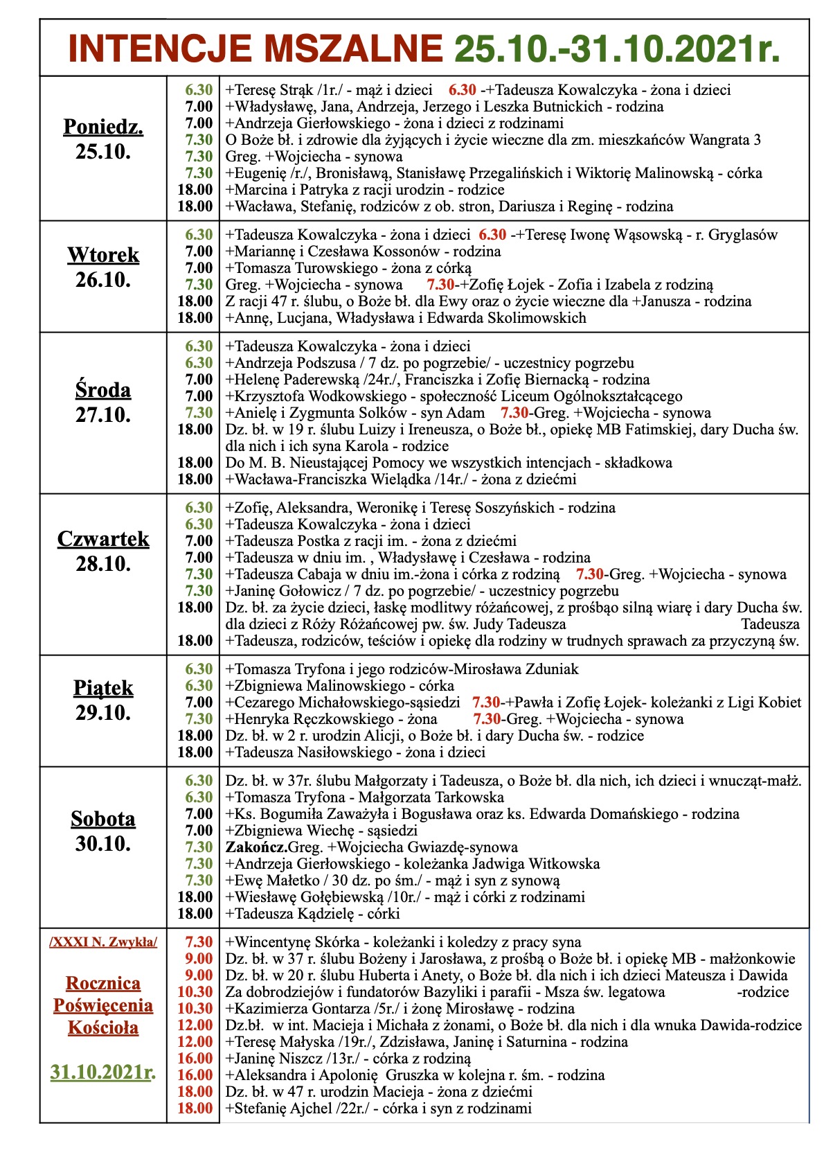 INTENCJE MSZALNE 25.10.-31.10.2021r.