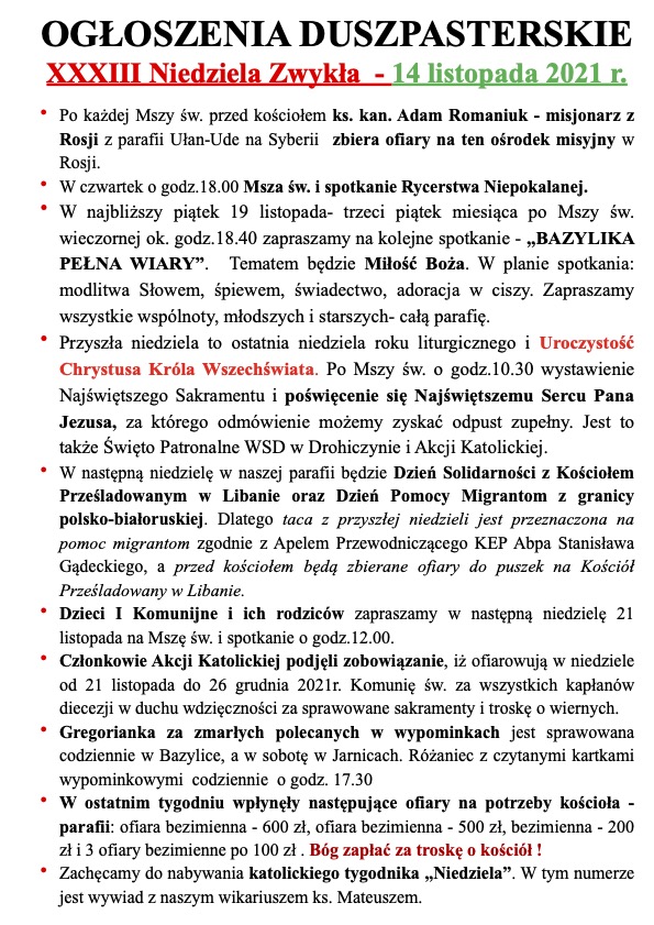 XXXIII Niedziela Zwykła – 14 listopada 2021 r.