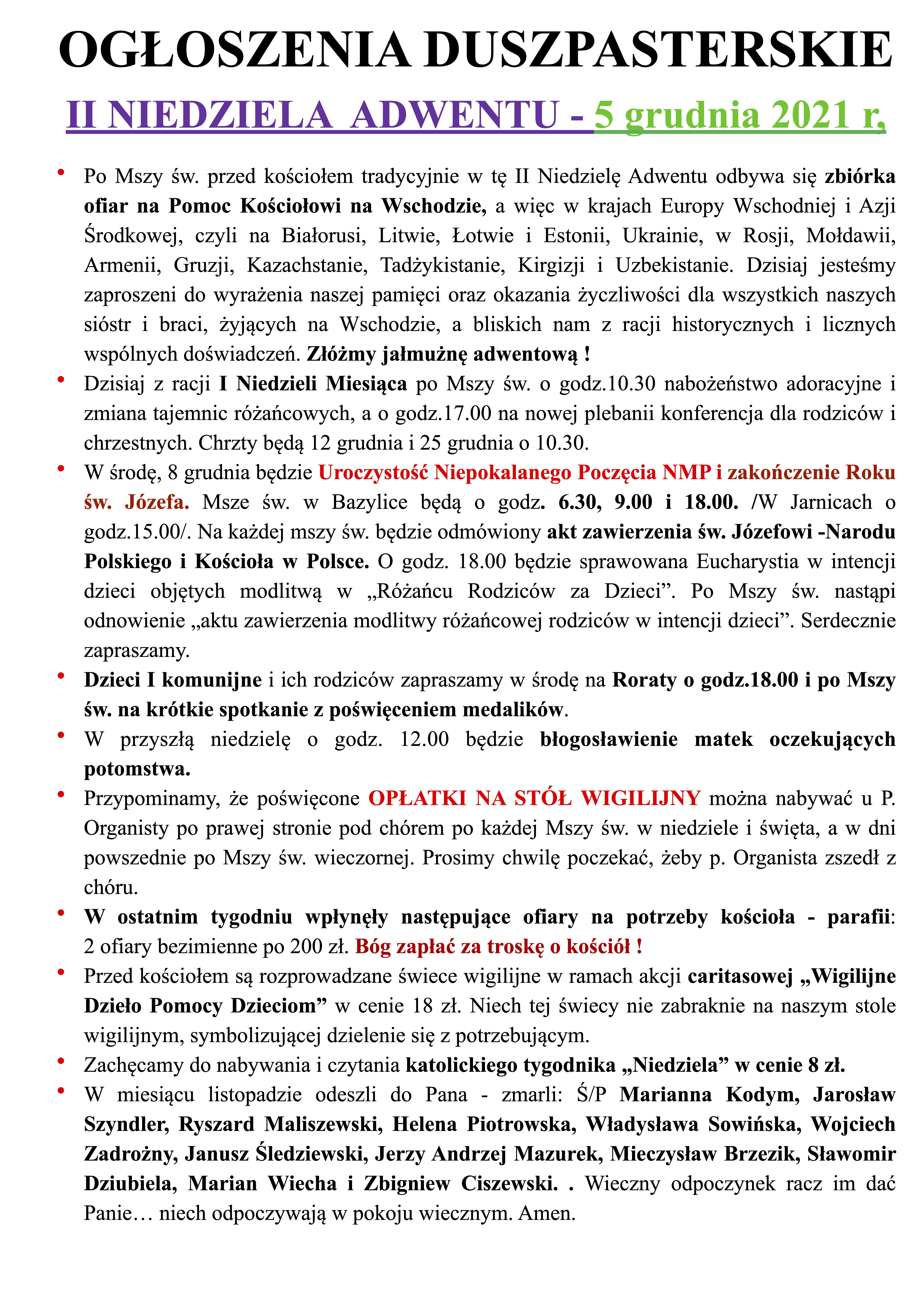 II NIEDZIELA ADWENTU – 5 grudnia 2021 r.