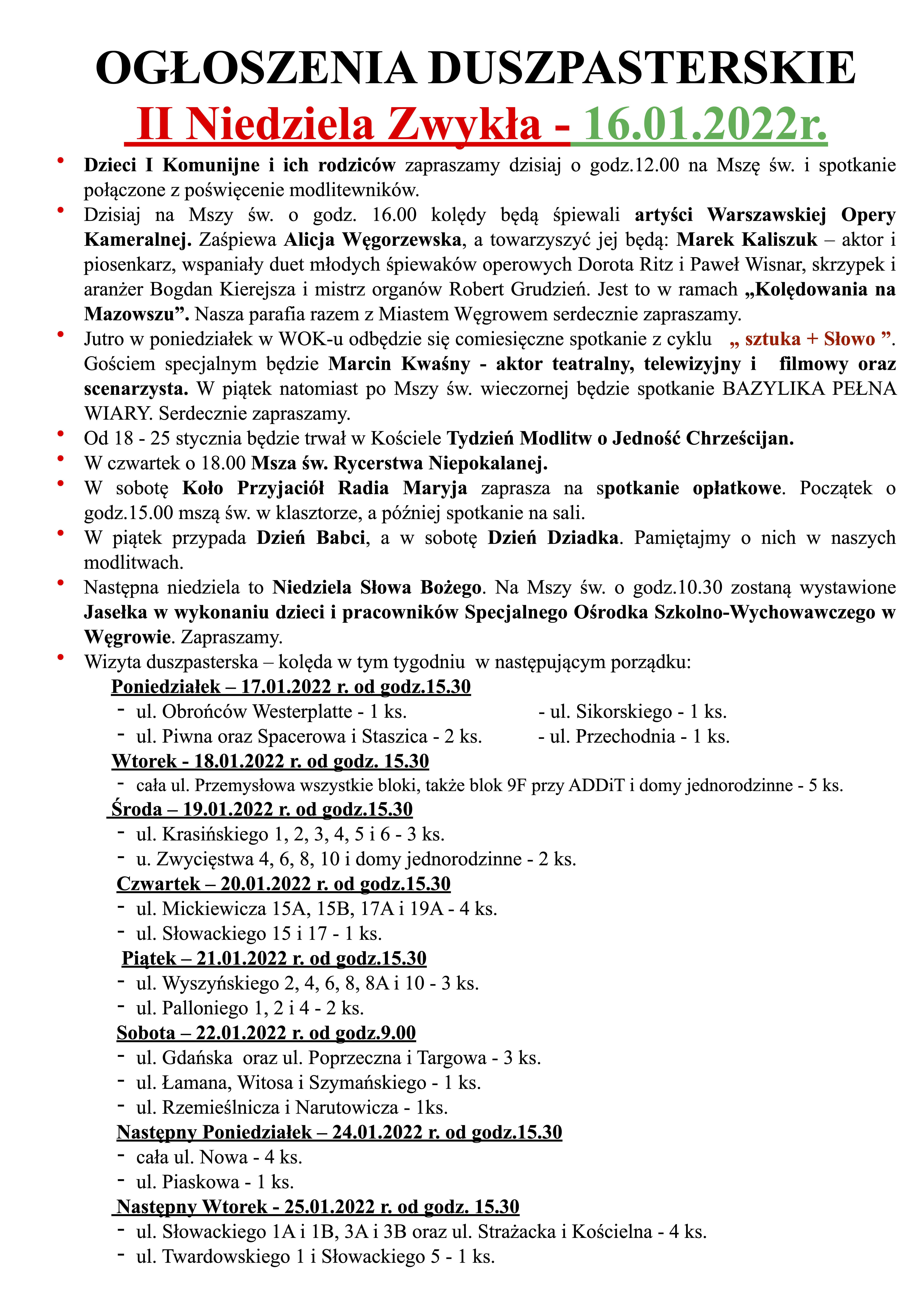 II Niedziela Zwykła – 16.01.2022r.